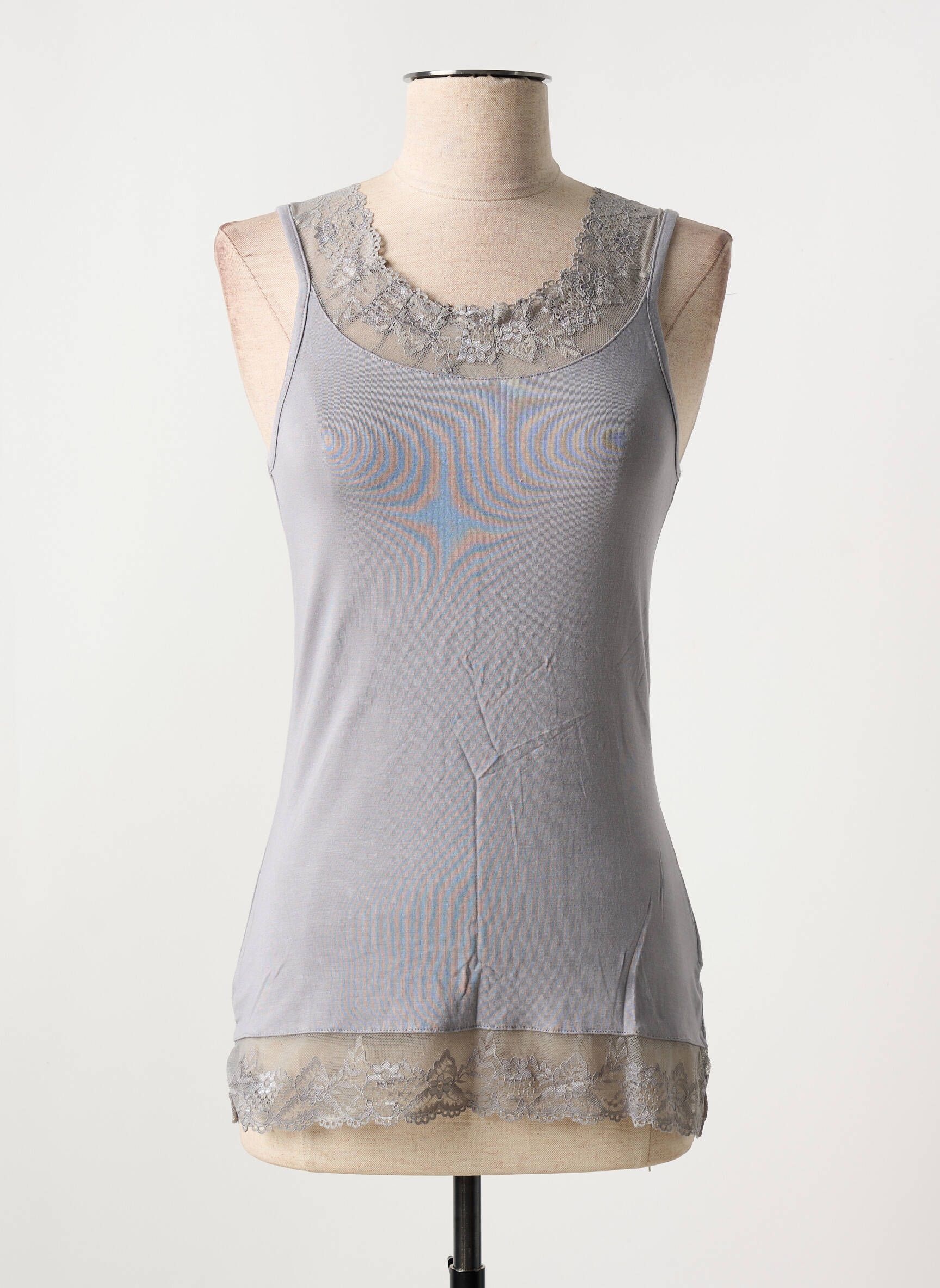 Top Cream Gris Sans Manche