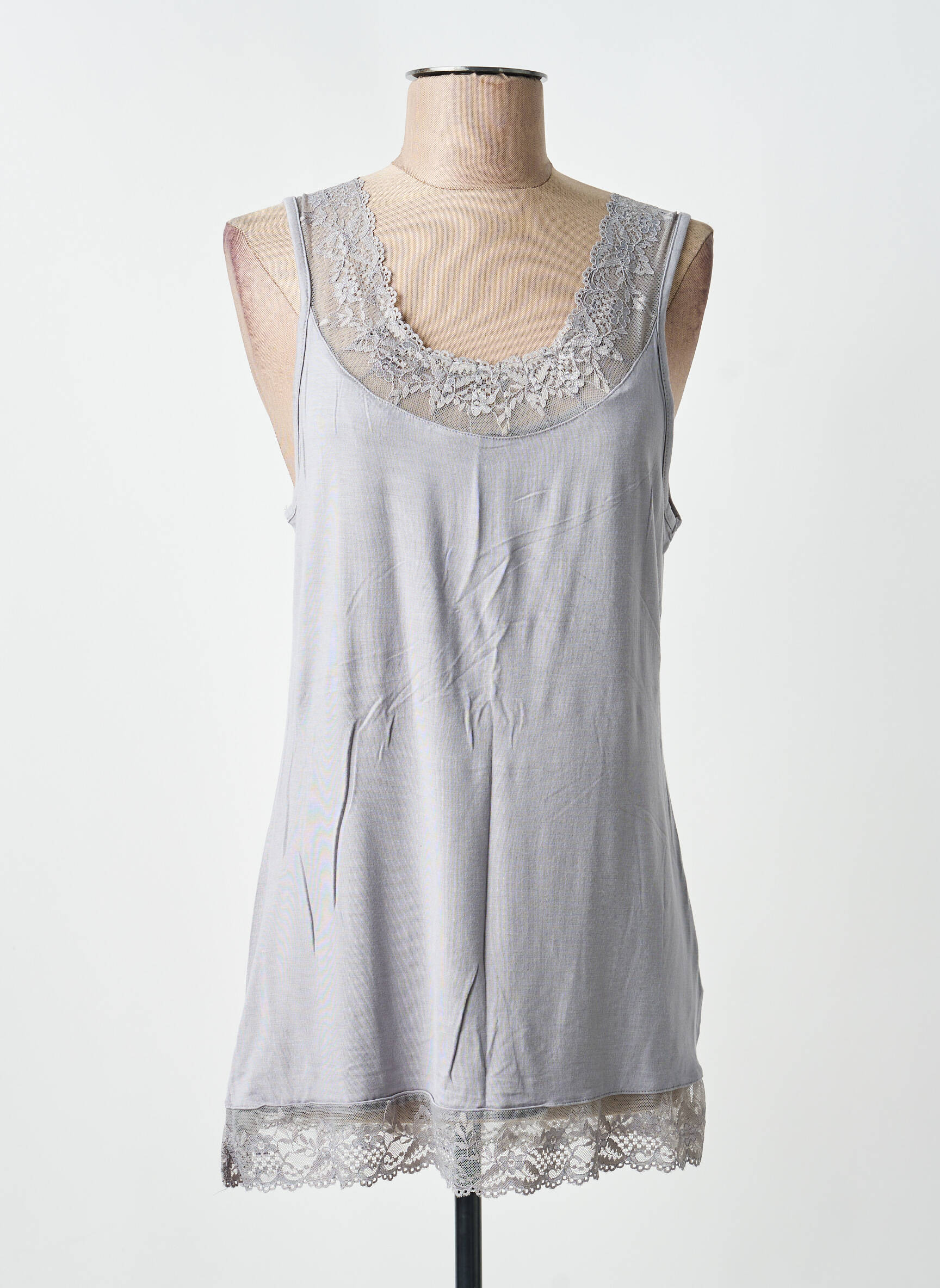 Top Cream Gris Sans Manche