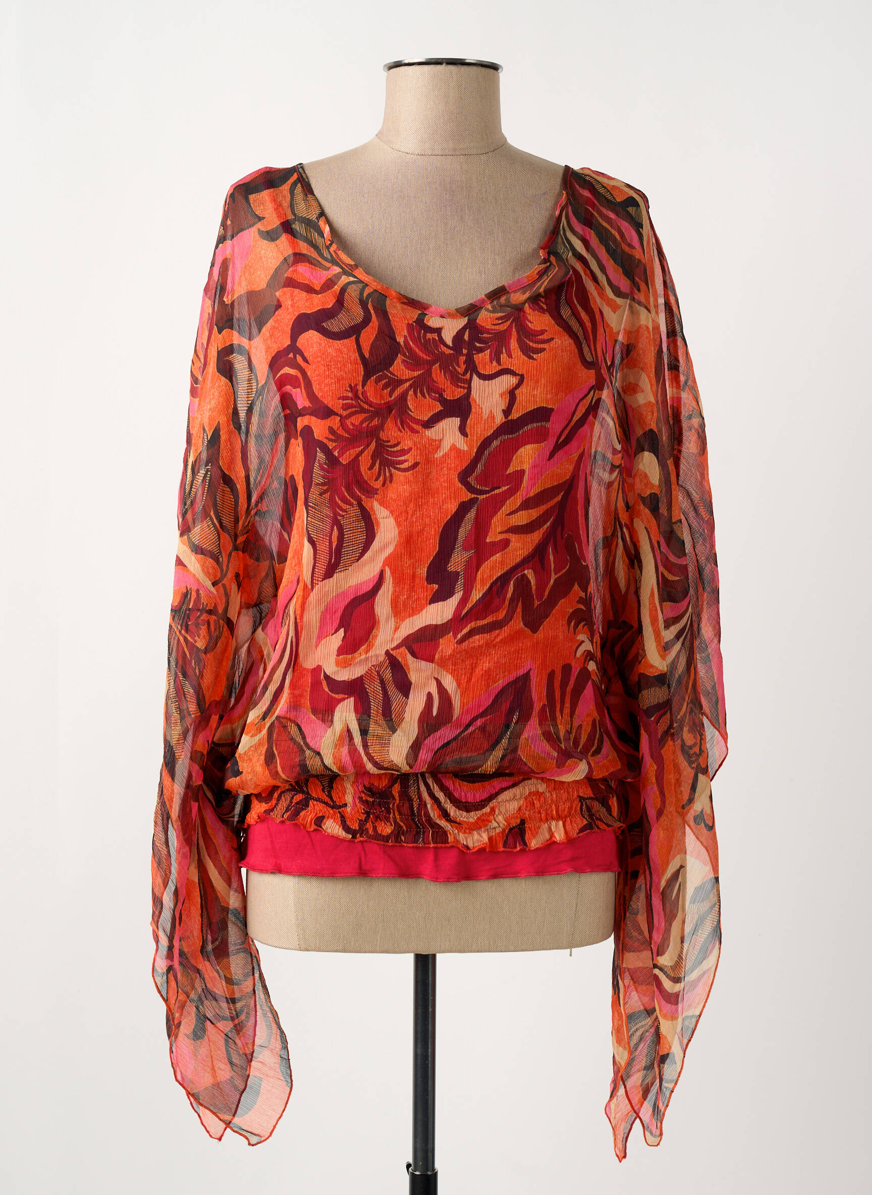 Craquez pour ce top signé CRISTINA GAVIOLI, une pièce originale à prix mini, idéale pour apporter une touche de couleur à votre dressing sans vous ruiner. Son imprimé flamboyant mêle des tons rouges, orangés et violines dans un jeu de transparence léger et fluide, tandis que sa coupe ample à manches longues effet papillon offre un tombé élégant et aérien, parfait pour toutes les occasions. Ne laissez pas passer cette belle affaire pour une allure tendance à petit prix !