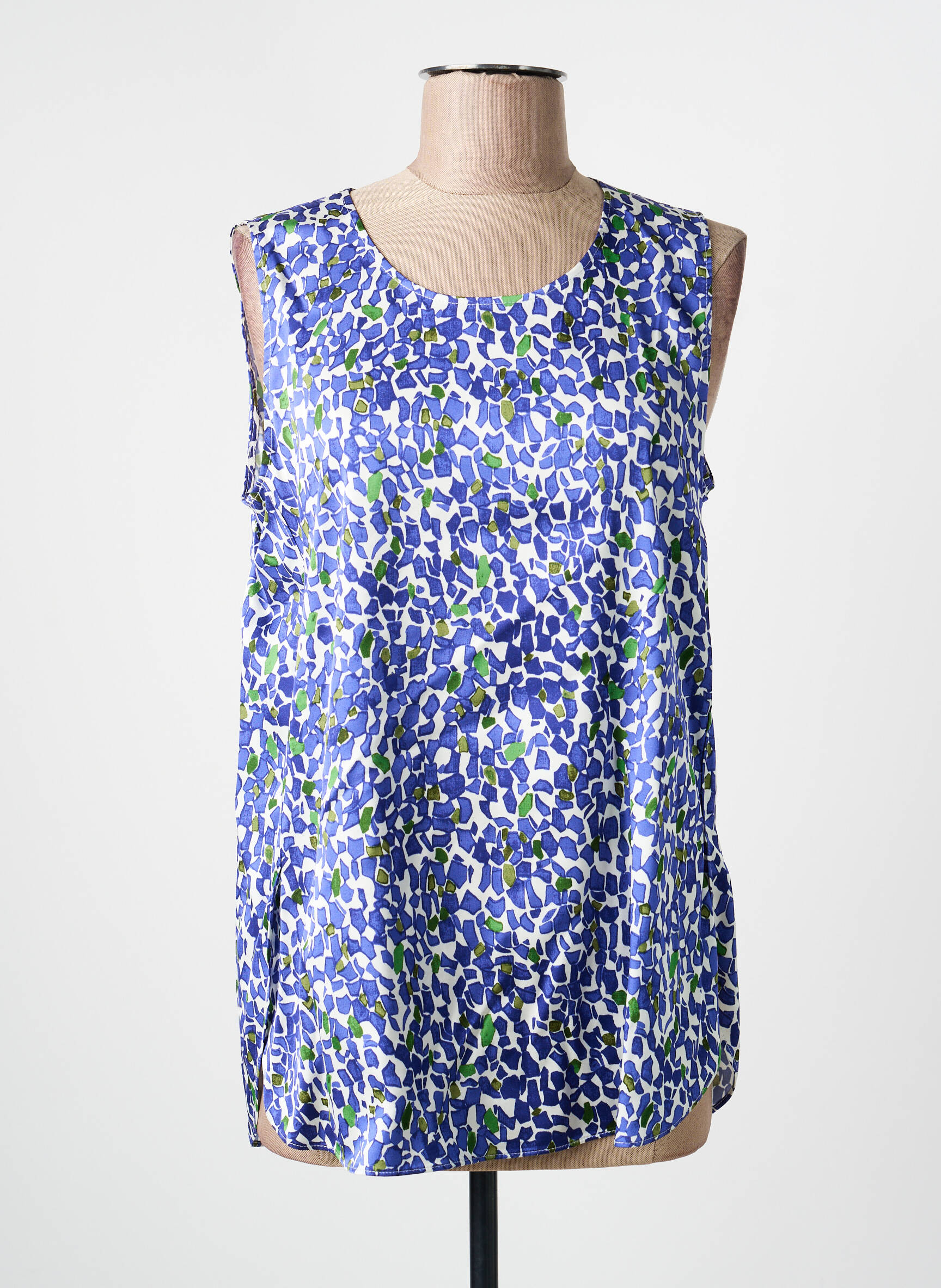 Profitez d'une belle opportunité mode avec ce top DIANA GALLESI pour femme, proposé à prix doux. Son imprimé coloré aux nuances de bleu et de vert apporte une touche de fraîcheur à vos tenues, tandis que sa coupe fluide et sans manches assure un confort parfait au quotidien. Voilà le choix idéal pour un look tendance et pétillant, sans se ruiner.
