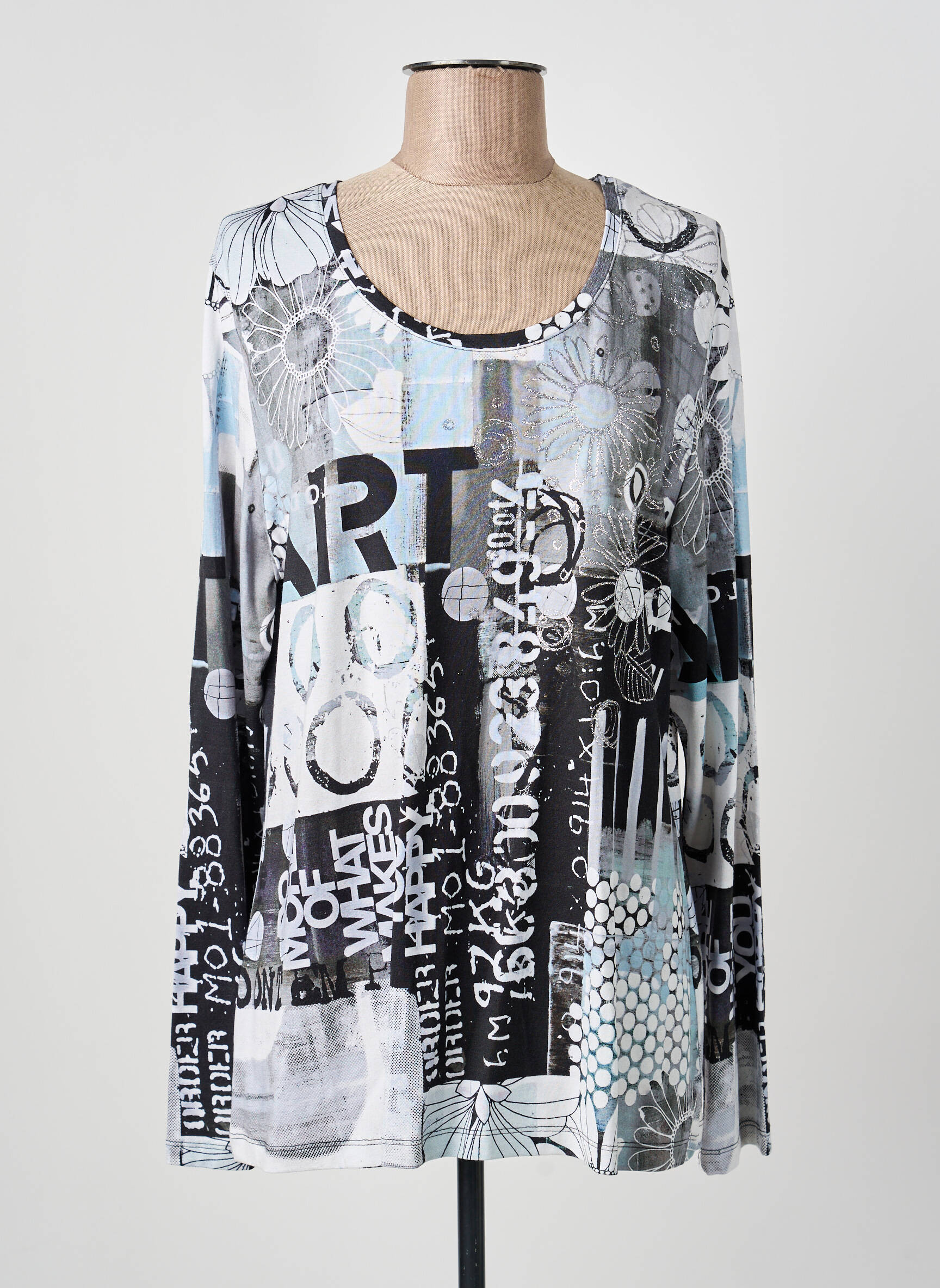 Craquez pour ce top Dolcezza pour femme, un véritable bon plan à ne pas manquer pour donner du style à votre garde-robe sans vous ruiner. Son imprimé graphique mêlant touches artistiques et nuances de bleu, de noir et de blanc apporte une touche moderne et originale à toutes vos tenues, parfait pour affirmer votre personnalité. Sa coupe fluide et son encolure ronde en font une pièce confortable et facile à porter au quotidien, idéale pour profiter d'une création tendance à petit prix.