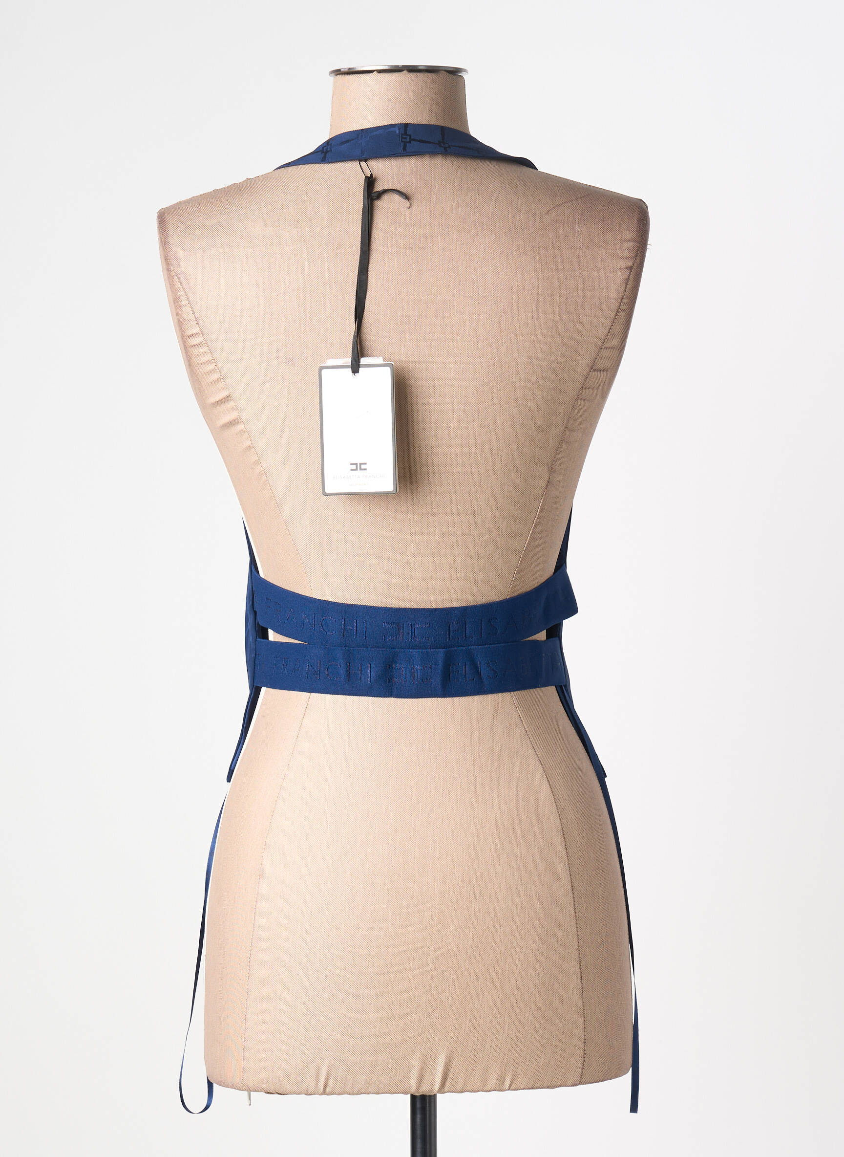 Profitez d'un prix exceptionnel sur ce top signé ELISABETTA FRANCHI, parfait pour apporter une touche sophistiquée à votre tenue sans vous ruiner. Ce modèle bleu profond séduit par son design original façon gilet, rehaussé d'un subtil motif quadrillé en ton sur ton et de finitions impeccables. Son ouverture sur le devant et ses liens à nouer sur les côtés lui donnent une note élégante et moderne qui mettra en valeur toutes vos silhouettes, un vrai bon plan mode à ne pas manquer pour booster votre dressing à petit prix.