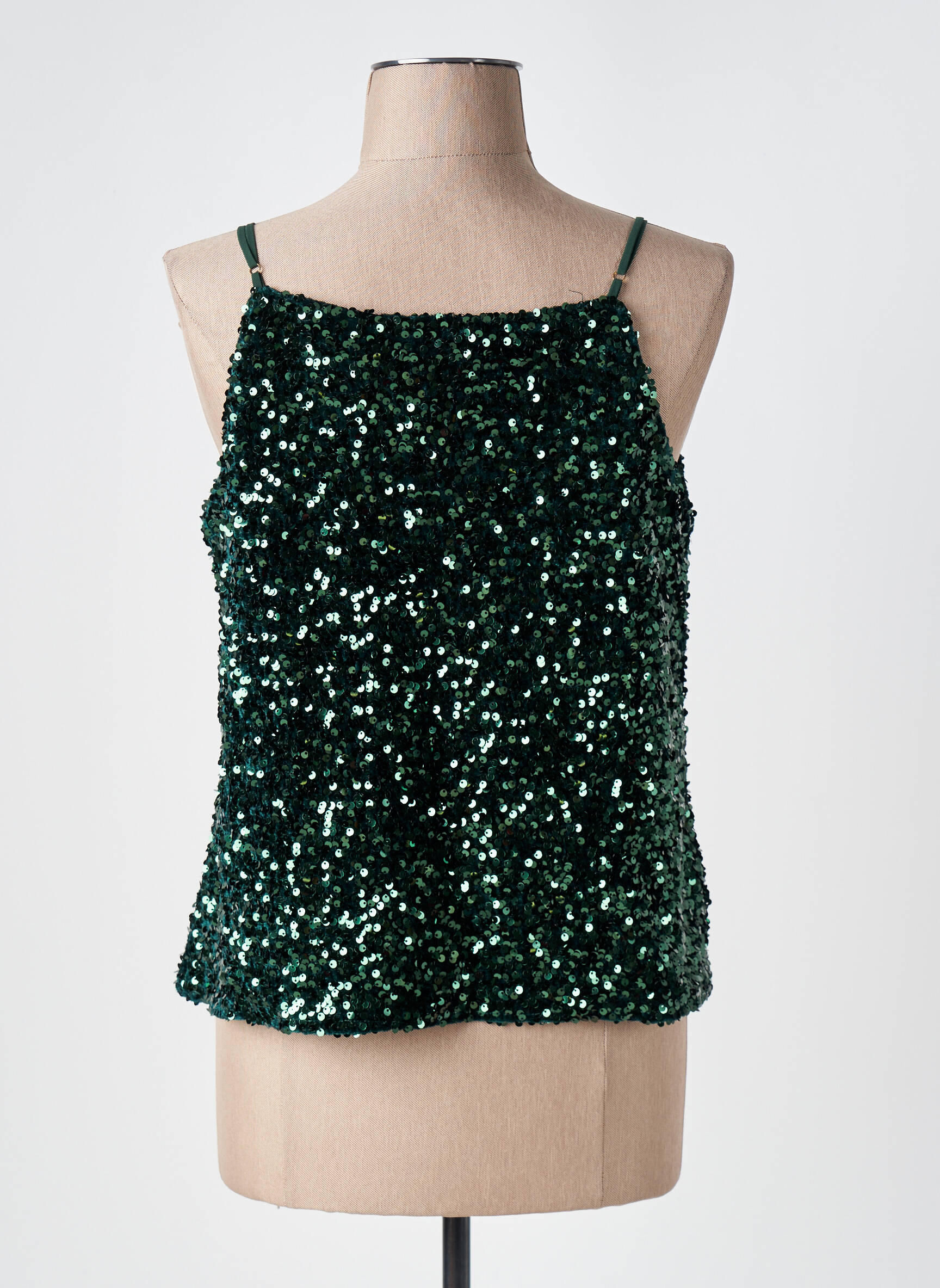 Craquez pour ce top EMMA ELLA à prix mini, une véritable pépite à petit prix pour celles qui veulent briller sans se ruiner. Ce modèle féminin se distingue par son tissu entièrement recouvert de sequins vert foncé qui captent la lumière à chaque mouvement, tandis que ses fines bretelles et son joli décolleté en V apportent une touche délicate et élégante. C’est le choix parfait pour sublimer vos looks de soirée tout en réalisant une belle économie.