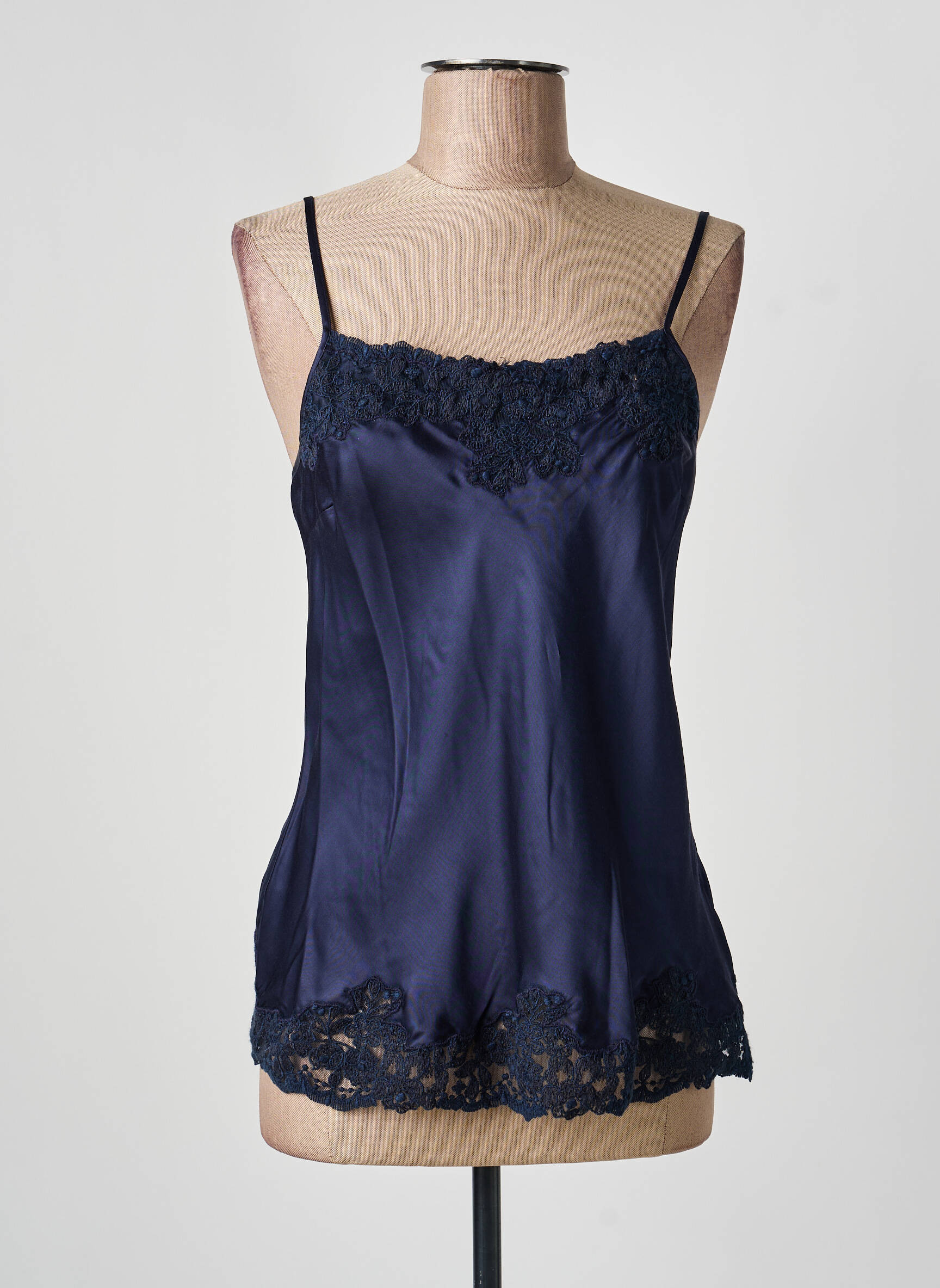 Craquez pour ce top signé ERMANNO SCERVINO à prix exceptionnel, l'occasion idéale de s'offrir une pièce de créateur sans se ruiner. Avec sa matière satinée bleu nuit qui capte élégamment la lumière, ce modèle met en valeur une délicate dentelle contrastée sur l'encolure et sur le bas du vêtement, offrant une touche féminine raffinée et sophistiquée. Ses fines bretelles et sa coupe fluide subliment la silhouette tout en garantissant un confort absolu, parfait aussi bien pour une tenue de jour chic que pour une allure glamour en soirée. Profitez vite de ce bon plan exclusif pour enrichir votre dressing d’un top raffiné à petit prix.