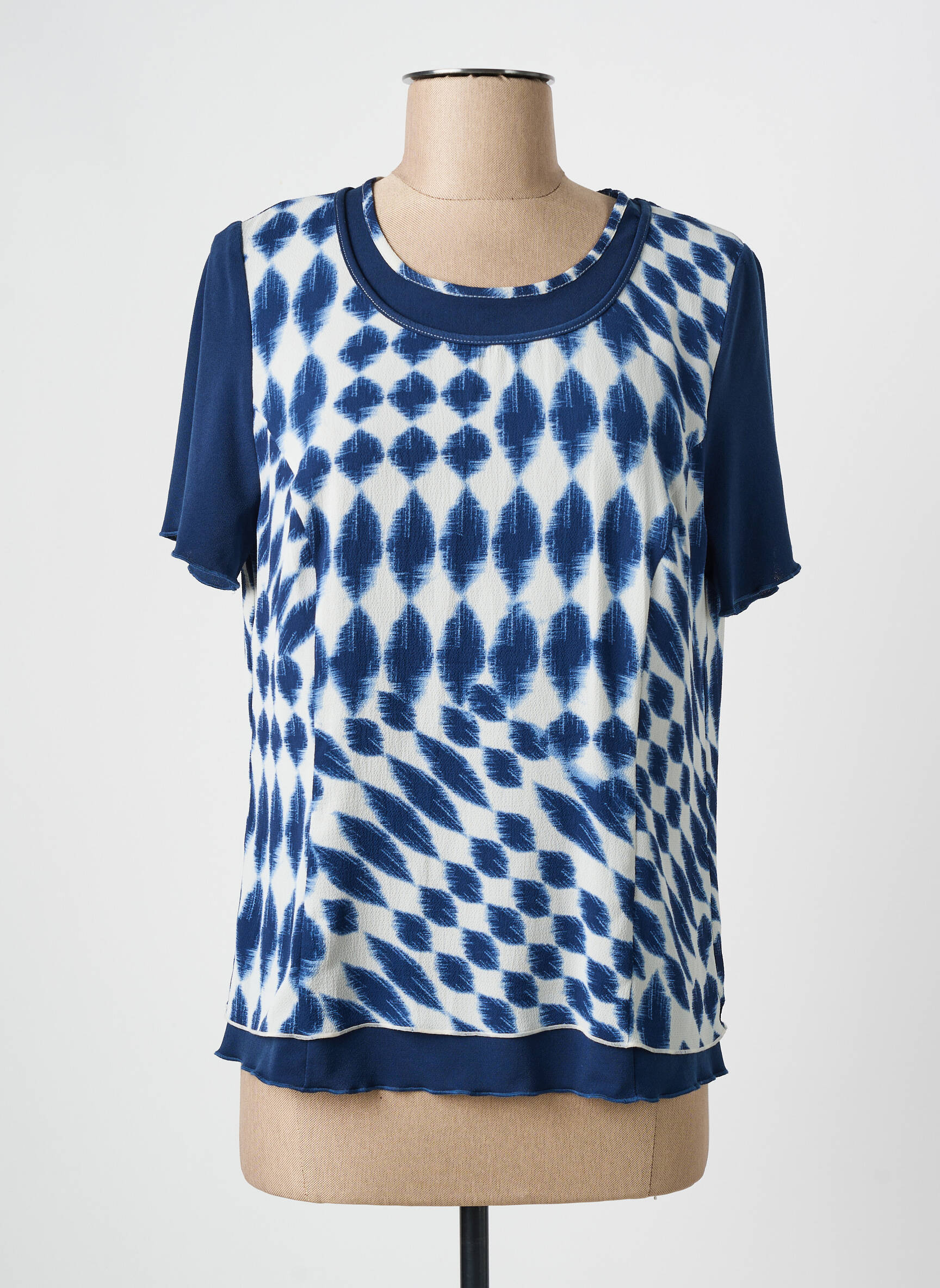 Voici une belle opportunité de vous offrir un top tendance sans vous ruiner avec ce modèle signé FRANCE RIVOIRE pour femme qui mise sur une alliance de bleu indigo et de blanc dans un effet tie and dye graphique très actuel, tandis que les manches et la base contrastée apportent une touche moderne et stylée à votre tenue quotidienne. Ce petit prix vous permet de rester dans l’air du temps tout en faisant de vraies économies.