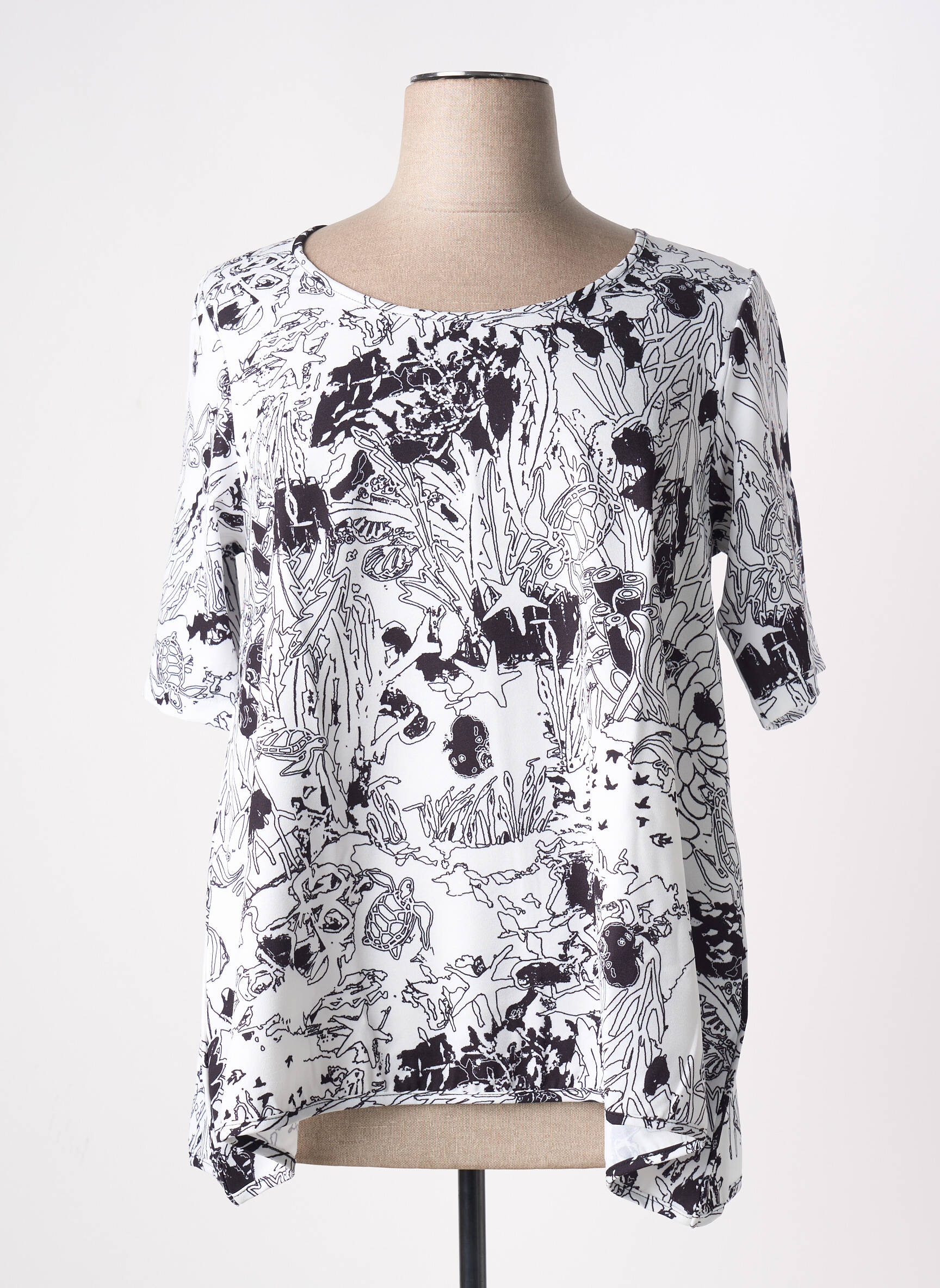 Profitez d’une affaire exceptionnelle avec ce top pour femme signé G!OZE, parfait pour apporter une touche unique et moderne à votre garde-robe sans vous ruiner. Son imprimé noir et blanc d’inspiration florale s’associe facilement à tous les styles, sa coupe fluide assure un tombé élégant et confortable, tandis que son encolure arrondie et ses manches courtes sublimeront toutes les silhouettes, le tout à prix mini pour un look tendance à petit budget.