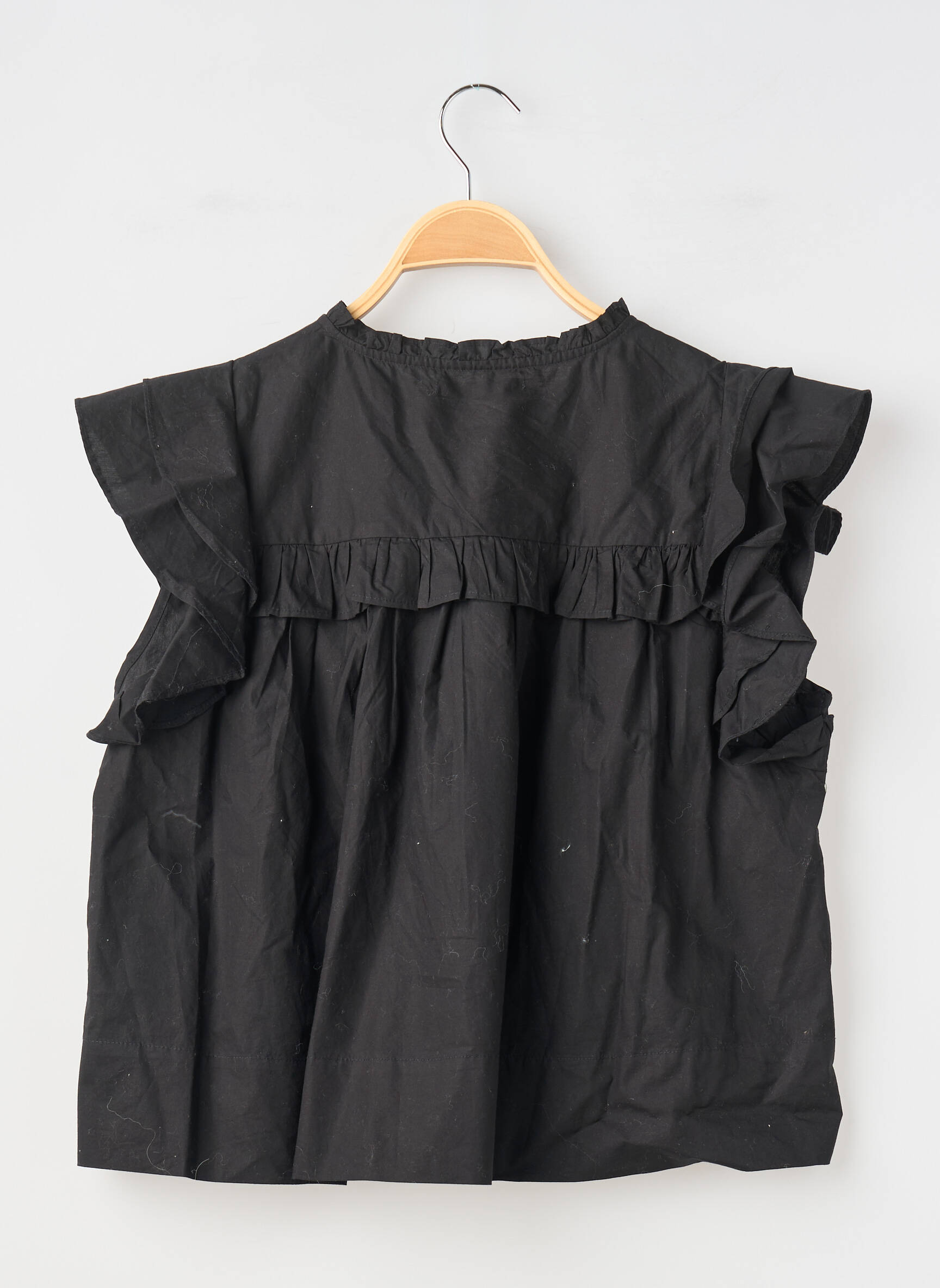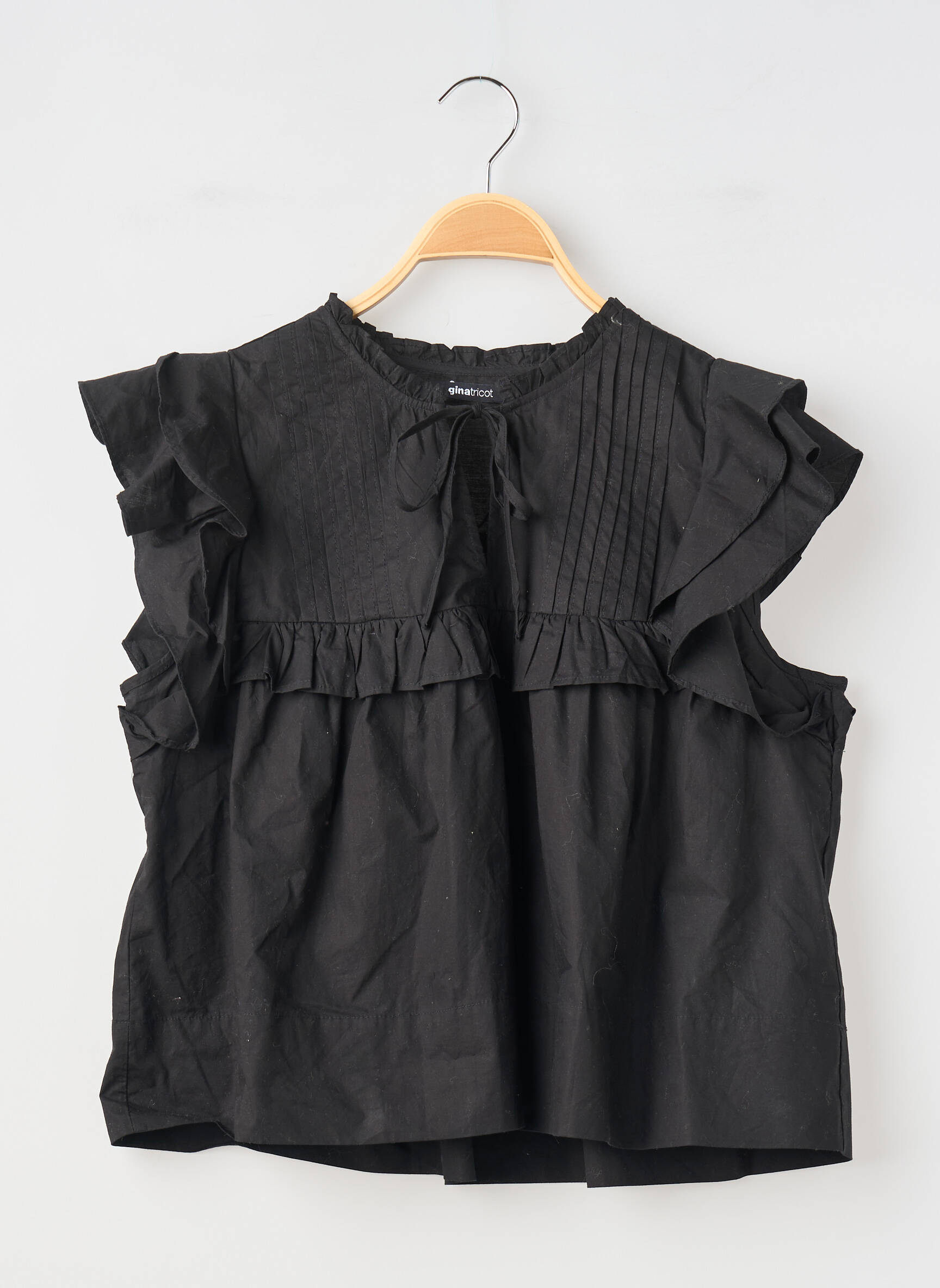 Profitez d’un super bon plan avec ce top noir GINA TRICOT pour femme, parfait pour rehausser votre style sans vous ruiner. Son design raffiné allie des volants délicats aux épaules et une coupe ample très tendance, tandis que les petits plis sur le devant ajoutent une touche d’élégance tout en simplicité. C’est le choix idéal pour donner du caractère à vos tenues du quotidien tout en réalisant de vraies économies.