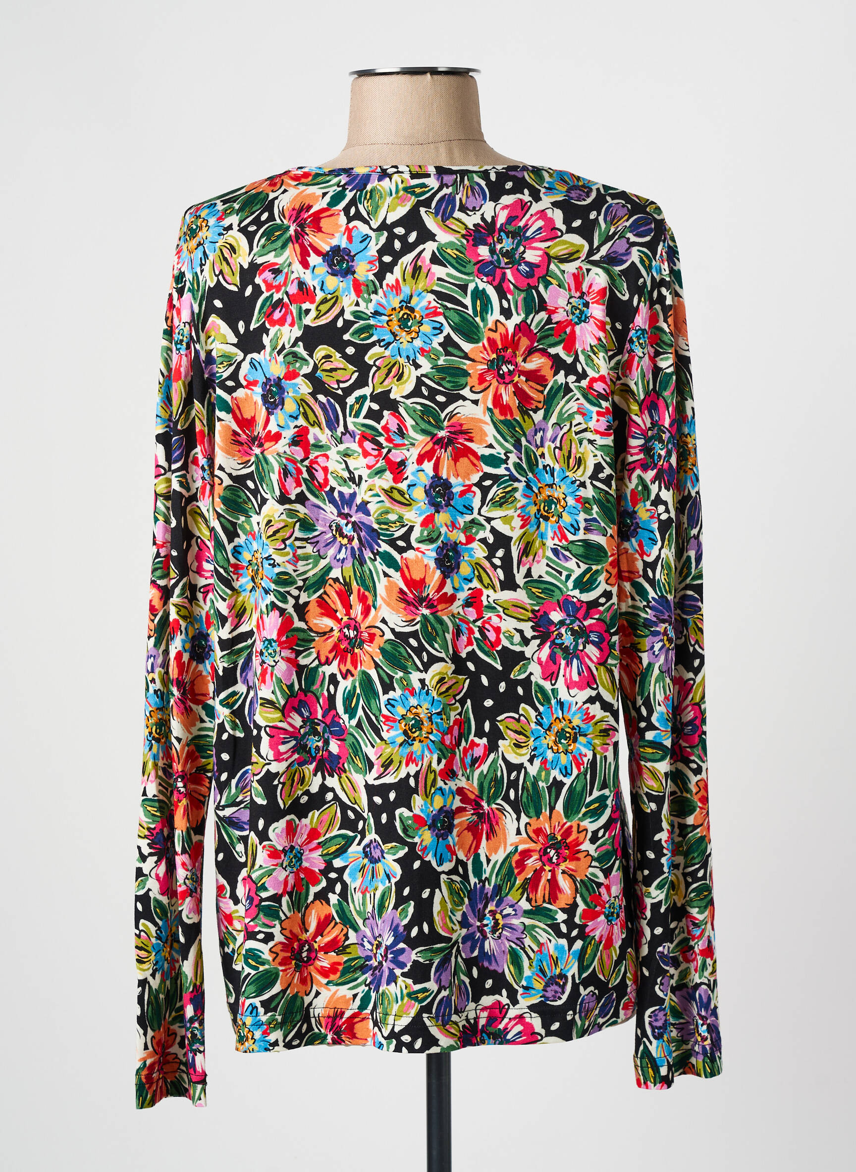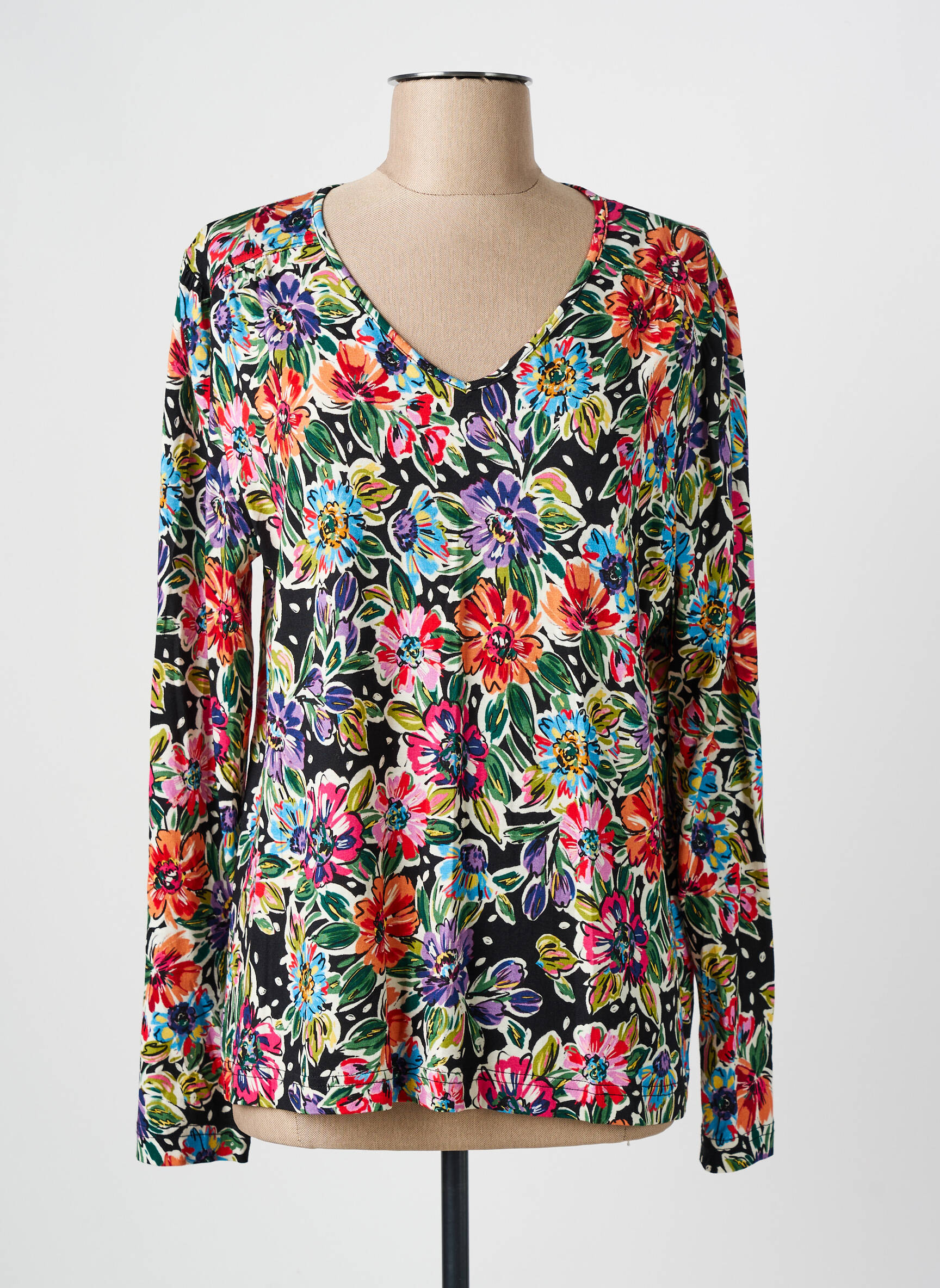 Voici le top parfait pour donner du pep’s à votre garde-robe sans vous ruiner. Ce modèle pour femme signé GRIFFON séduit par son imprimé floral multicolore éclatant sur fond noir, idéal pour apporter une touche de fraîcheur à vos tenues du quotidien. Son encolure en V flatte la silhouette, tandis que ses manches longues en font un allié parfait pour la mi-saison ou les soirées légèrement fraîches. C’est le bon plan du moment pour donner un coup de neuf à votre style à petit prix !