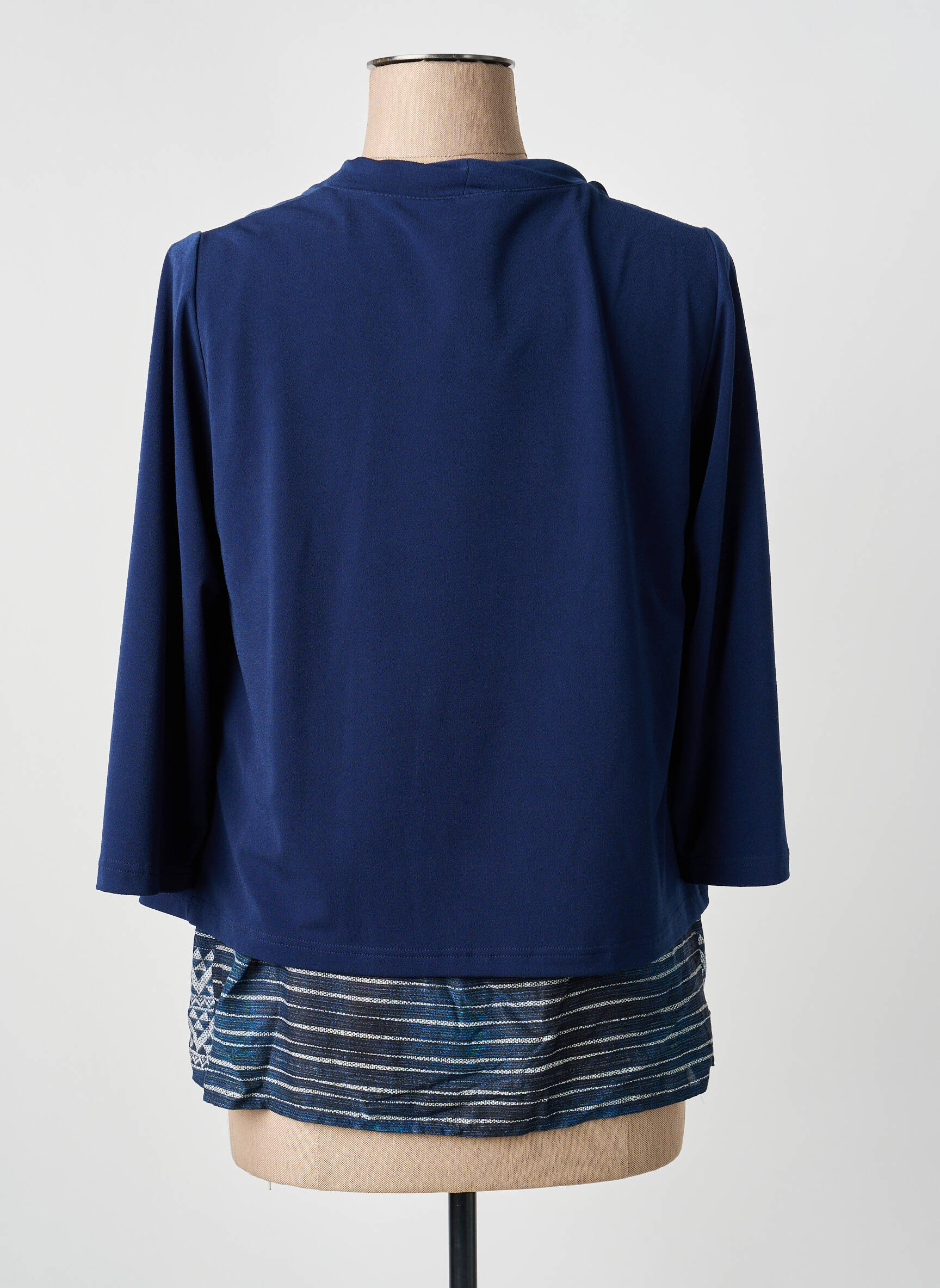 Profitez d'une offre exceptionnelle avec ce top pour femme signé GUY DUBOUIS, parfait pour celles qui aiment allier style et petits prix. Ce modèle se distingue par son effet deux-en-un très tendance : un haut à manches longues bleu profond façon veste légère, associé à un faux débardeur à rayures graphiques rehaussé d’un joli motif géométrique à la base, pour une touche moderne et originale. C'est le choix malin pour renouveler votre garde-robe sans vous ruiner et ajouter une pièce élégante à shopper en toute sérénité.