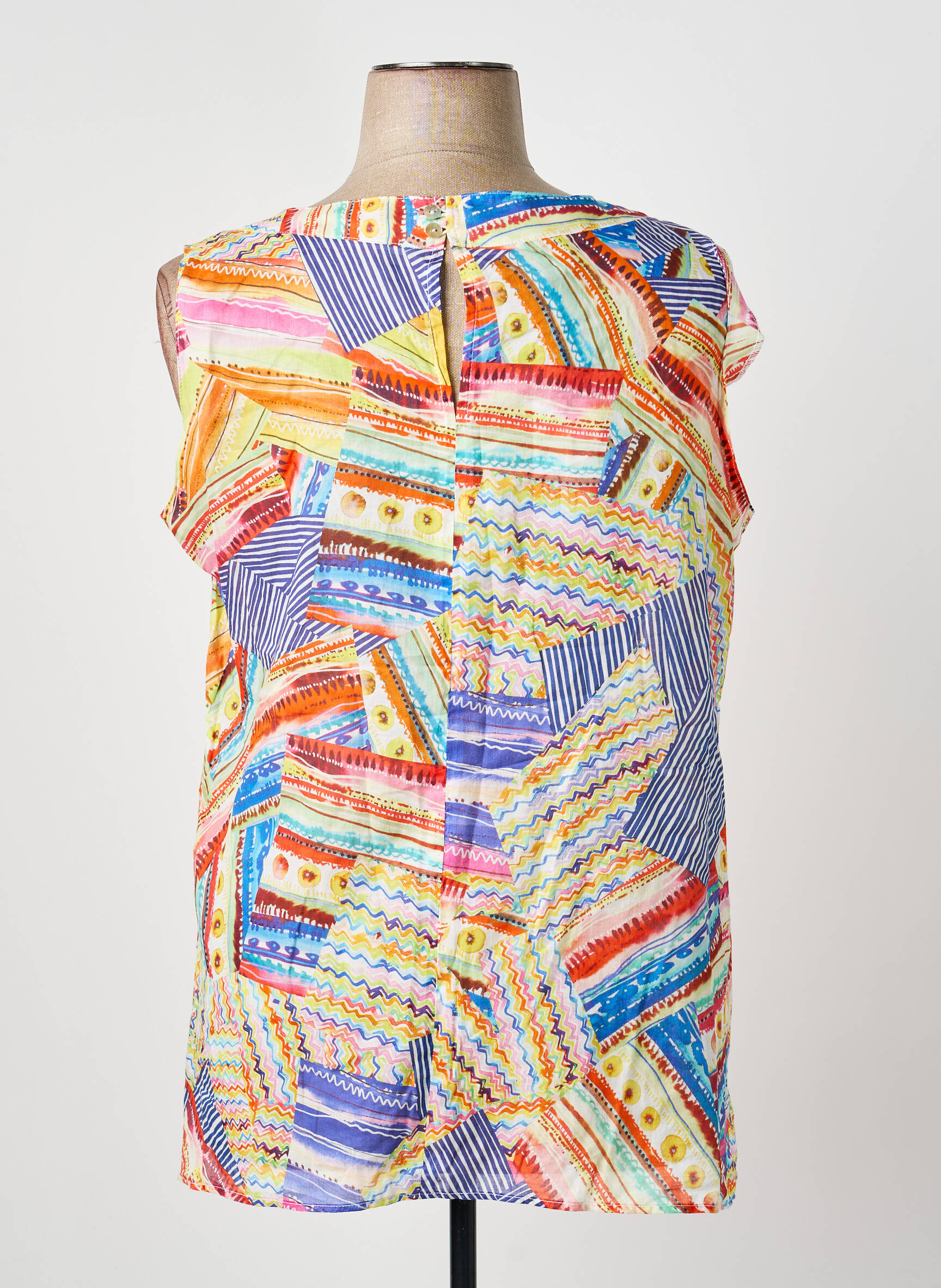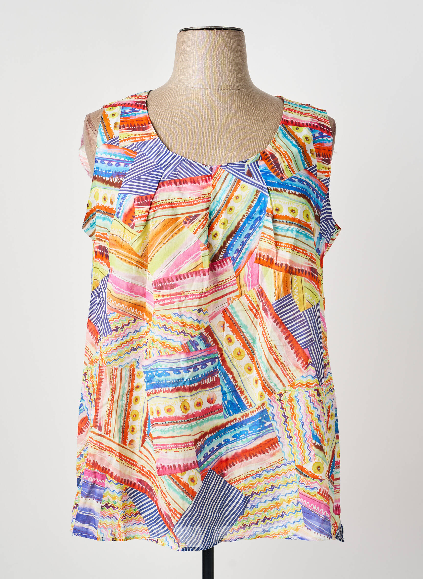 Craquez pour ce haut signé GUY DUBOUIS, à petit prix, qui allie fraîcheur et originalité avec son imprimé multicolore façon patchwork, parfait pour dynamiser votre garde-robe sans vous ruiner. Sa coupe droite et son encolure arrondie apportent un confort optimal pour toutes vos journées ensoleillées, tout en affichant un style unique et joyeux qui fera la différence à coup sûr. Profitez d’un vrai bon plan pour égayer votre look à moindre coût.