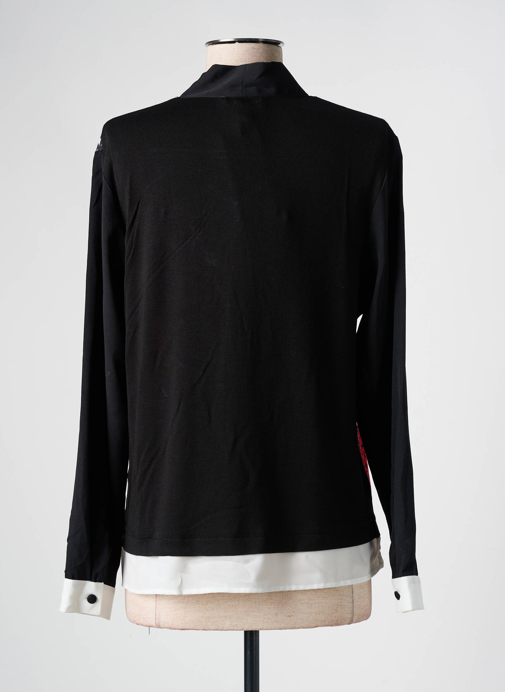 Profitez d’un vrai bon plan mode avec ce top signé GUY DUBOUIS, idéal pour celles qui veulent une pièce originale sans se ruiner. Son imprimé graphique joue avec les contrastes noir, blanc et rouge pour un effet visuel saisissant, tandis que le col noué apporte une touche d’élégance moderne. Ce modèle à manches longues se distingue aussi par ses finitions claires au bas et aux poignets, qui soulignent son raffinement à prix mini.