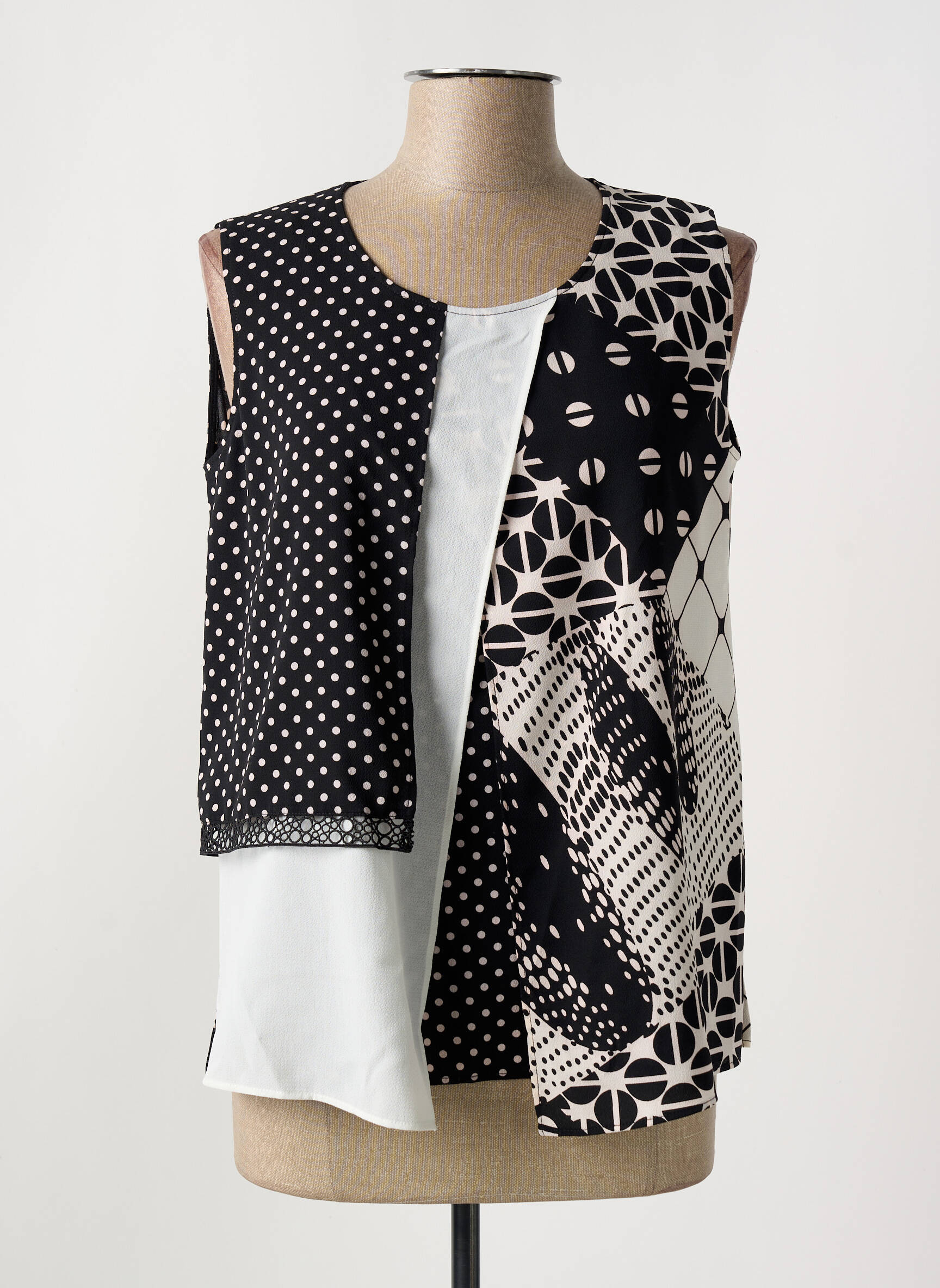 Profitez d'une opportunité à prix mini avec ce top GUY DUBOUIS pour femme au style graphique très tendance, qui joue sur l’originalité de motifs en noir et blanc contrastés. Avec sa coupe sans manches et son mix de pois, rayures et motifs géométriques, ce haut apporte une touche moderne à toutes vos tenues tout en restant facile à assortir au quotidien. Succombez à son allure unique sans vous ruiner grâce à cette véritable affaire de déstockage.
