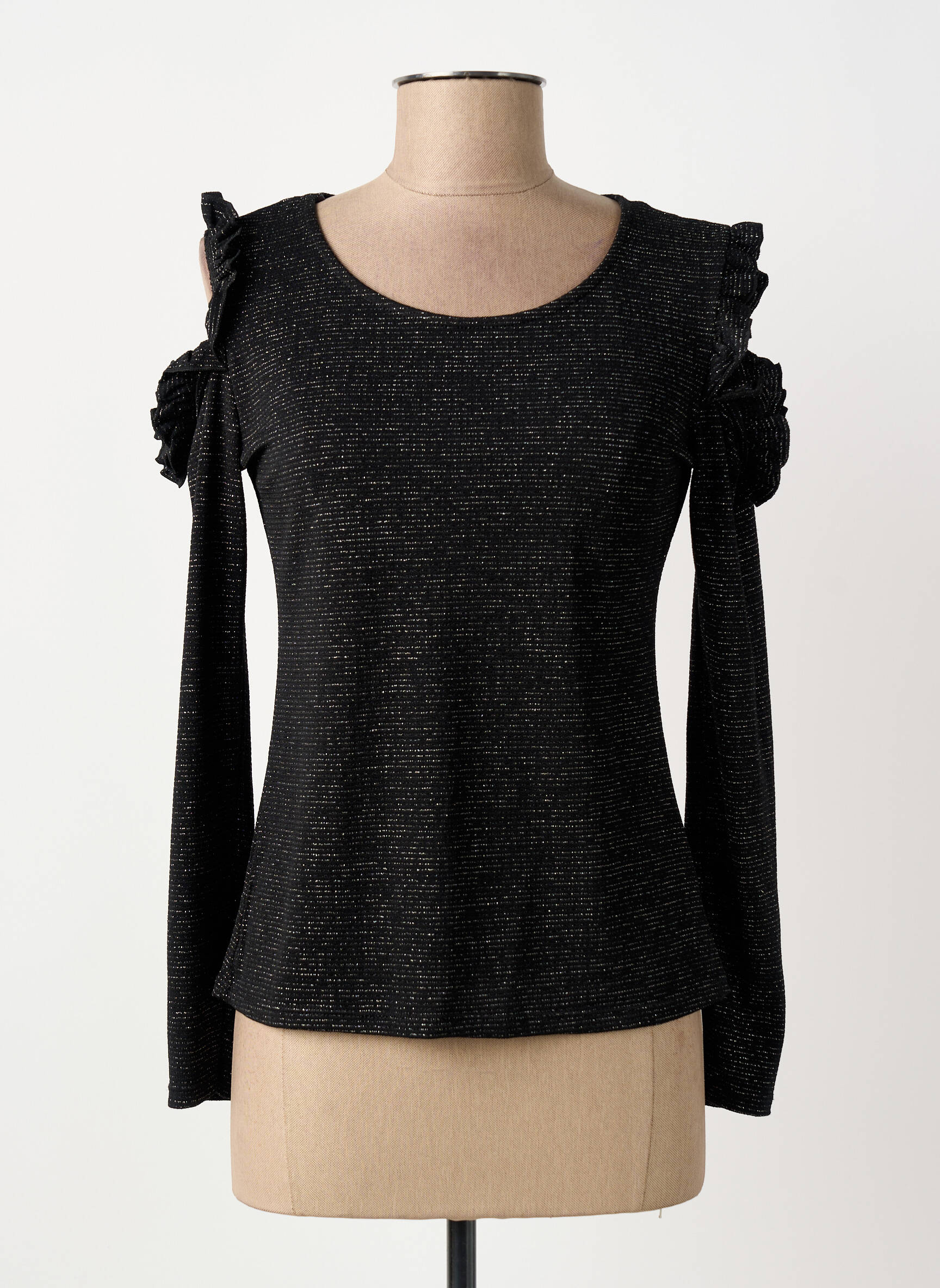 Craquez pour ce top GUY DUBOUIS pour femme, une pièce tendance à petit prix qui sublime vos tenues sans compromis sur le style. Sa coupe élégante dévoile subtilement les épaules grâce à des découpes originales, apportant une touche de féminité moderne. Les volants discrets sur les épaules ajoutent un détail raffiné qui fait toute la différence. Ce top noir, à la texture légèrement chinée, se porte aussi bien en journée qu’en soirée et promet un look chic à prix tout doux. Profitez d’une occasion exceptionnelle pour renouveler votre dressing avec ce modèle au rapport qualité-prix imbattable.