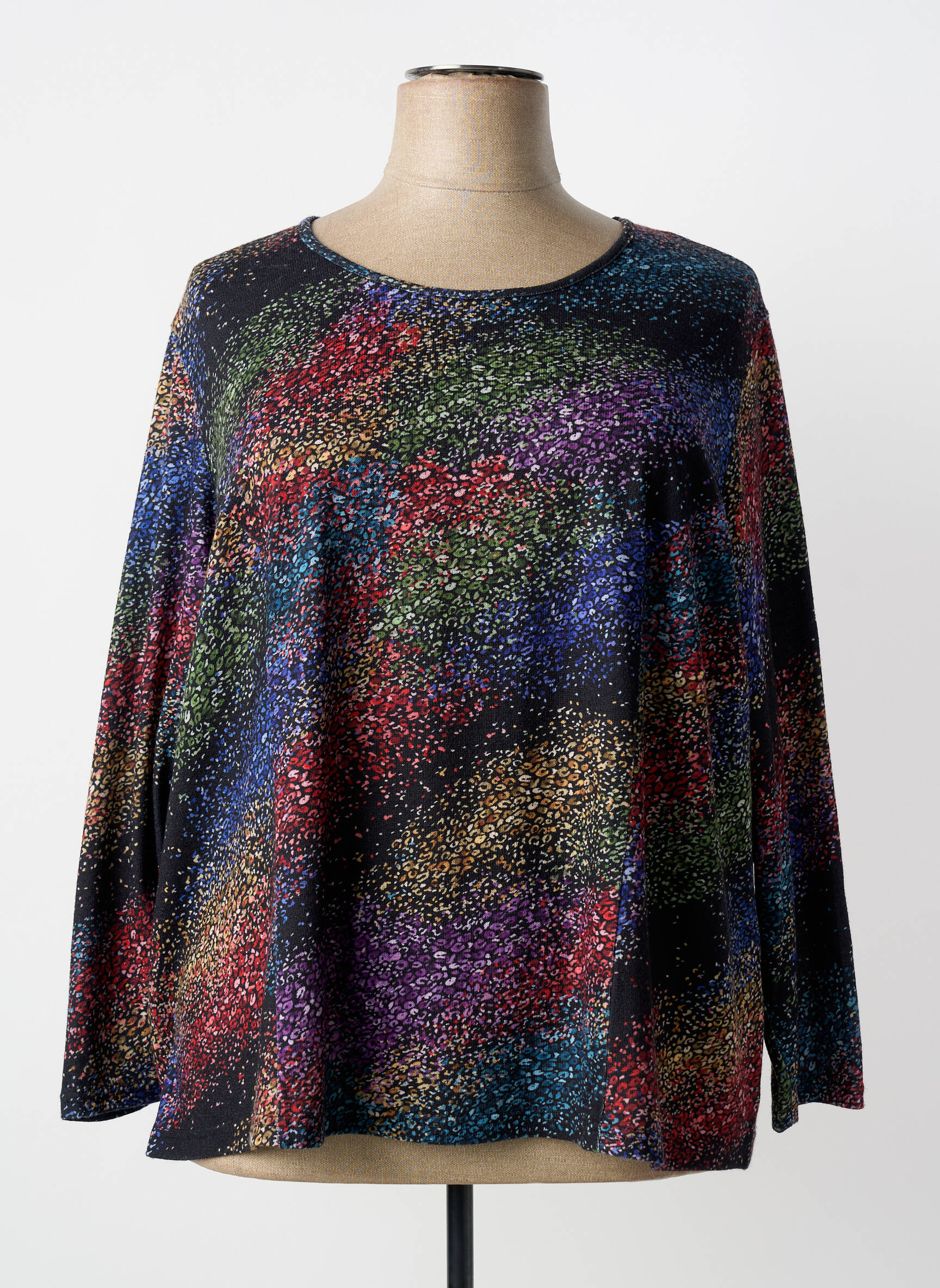 Ce haut coloré apporte une touche vivante à vos looks et se marie très bien avec un pantalon uni ou une jupe sobre pour équilibrer l’ensemble. Il est aussi idéal avec un jean pour un effet casual ou sous une veste élégante pour casser les codes et afficher un style affirmé. Quelques accessoires discrets suffisent à mettre en avant ses motifs, tout en gardant une silhouette raffinée.