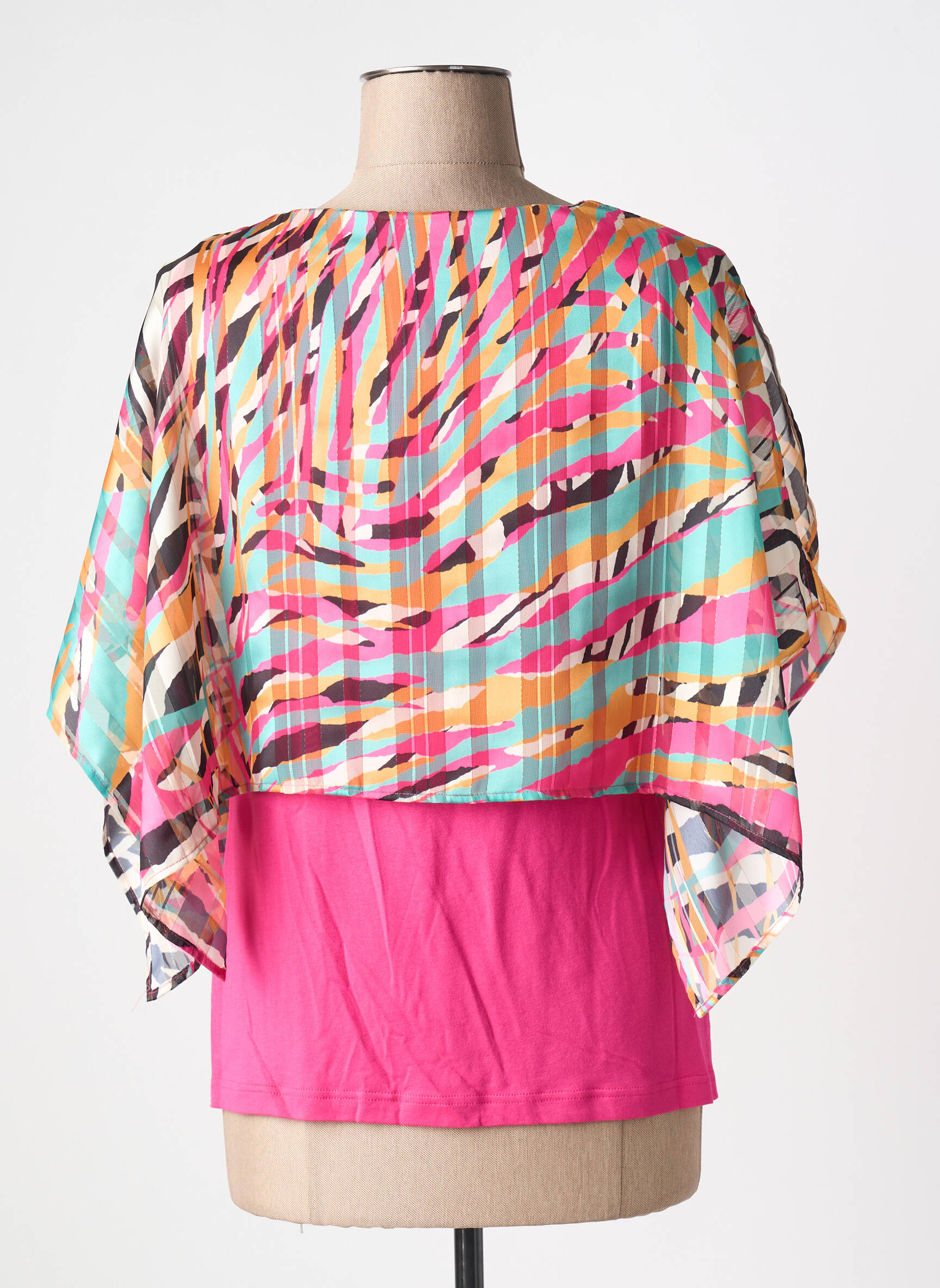 Profitez d’un véritable bon plan mode avec ce top pour femme signé GUY DUBOUIS, qui associe une base rose éclatante à une superposition fluide ornée d’un imprimé coloré et graphique dans des tons vifs. Sa coupe légèrement ample met en valeur la silhouette tout en apportant une touche de fraîcheur et d’originalité à vos tenues, une opportunité à saisir pour renouveler votre dressing à prix mini.