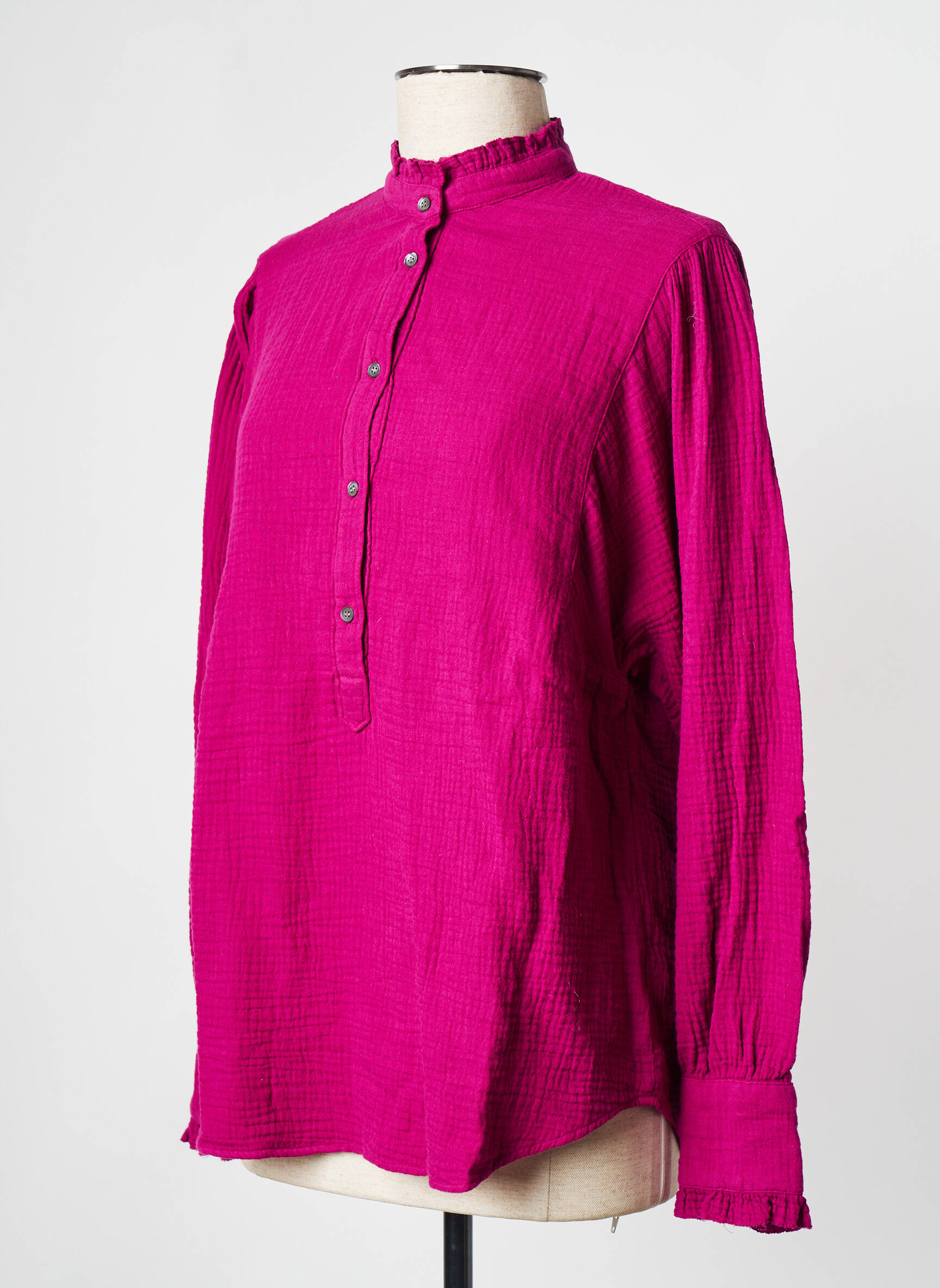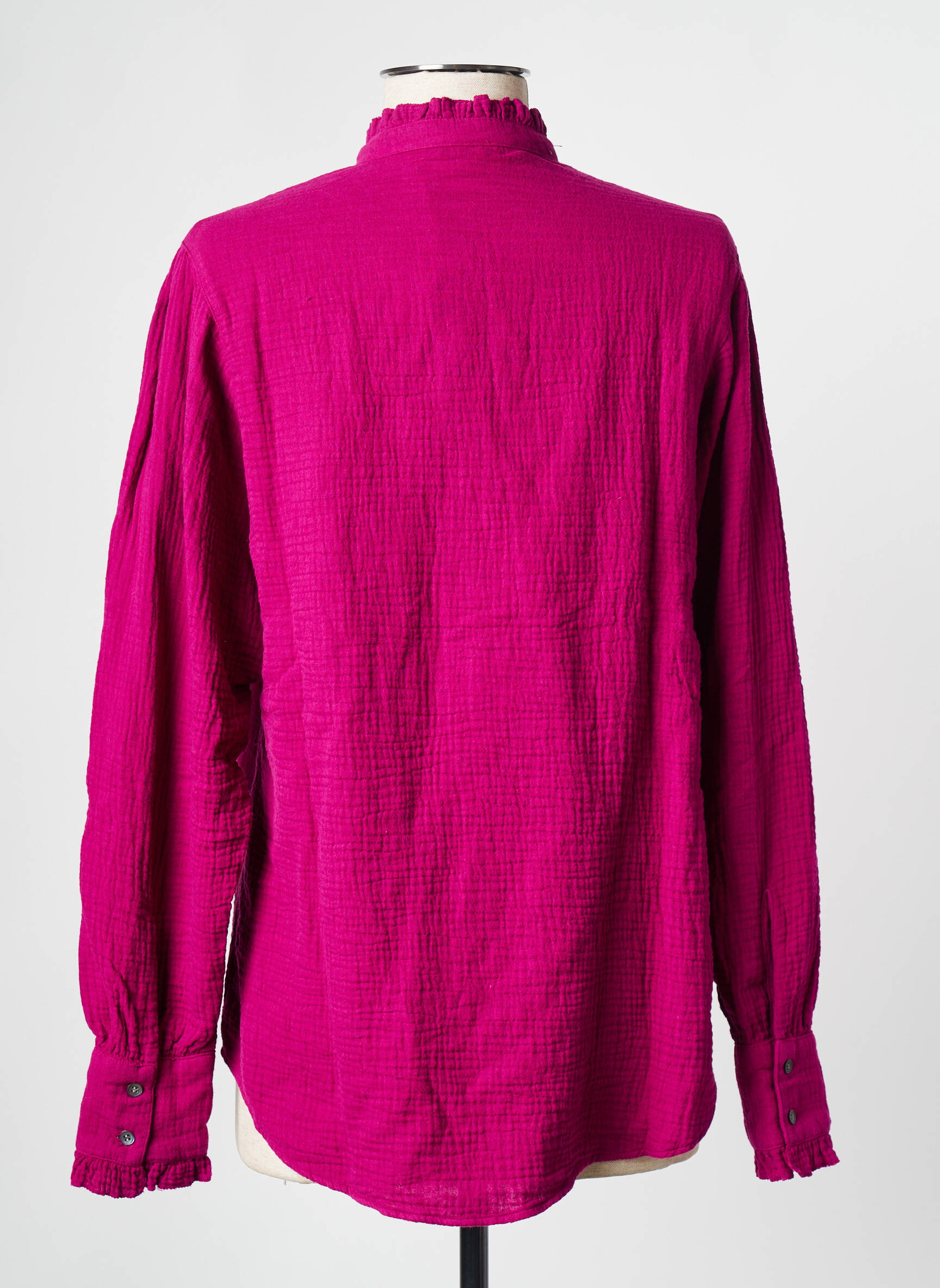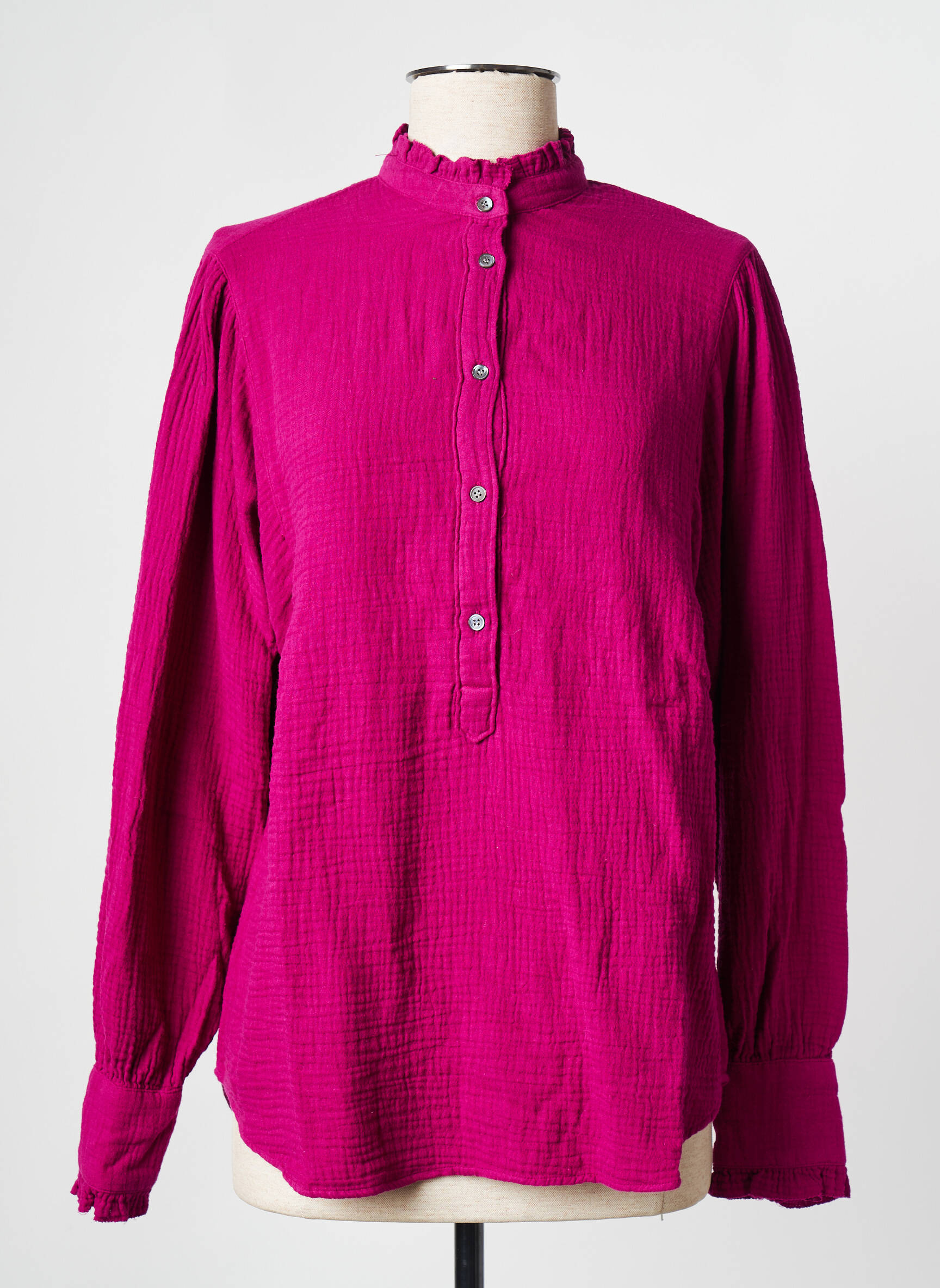 Imaginez un souffle de fraîcheur qui colore votre garde-robe d'un fuchsia vibrant, ce top Hartford pour femme capte l'attention par sa délicatesse et son originalité. Sa matière légère et légèrement froissée laisse deviner une élégance décontractée, sublimée par un col montant volanté et des poignets délicatement froncés qui apportent une touche romantique à l'ensemble, tandis que sa patte de boutonnage discrète et ses boutons nacrés ajoutent une finition raffinée et subtile à ce vêtement versatile.