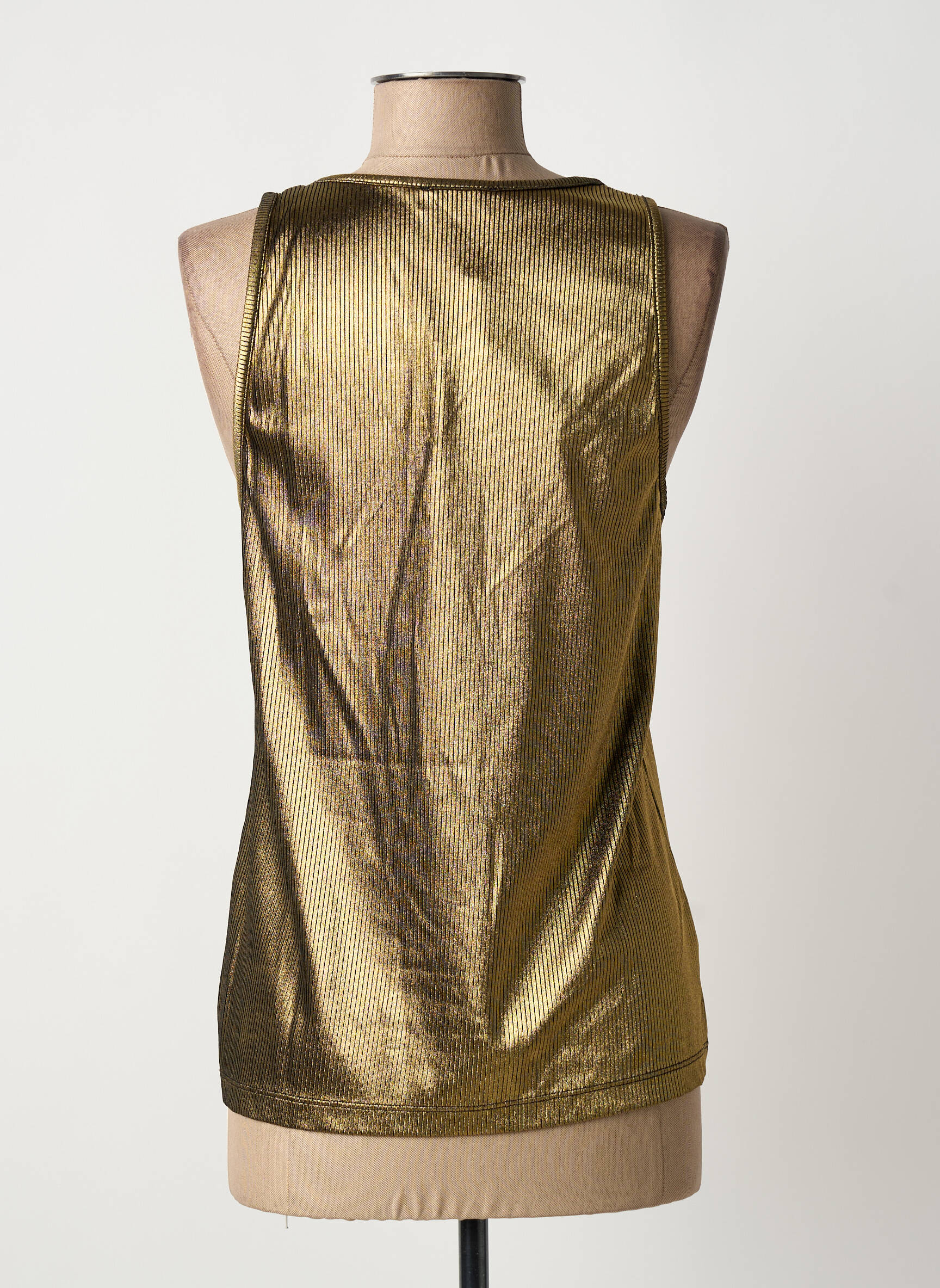 Ce débardeur s’accorde facilement avec un jean taille haute pour un look casual chic ou avec une jupe noire pour une sortie le soir. Tu peux aussi l’adopter sous une veste légère pour jouer les superpositions ou le porter sur un pantalon fluide pour une allure décontractée. Pour compléter la tenue, privilégie des accessoires sobres qui mettront en valeur son effet lumineux sans en faire trop.