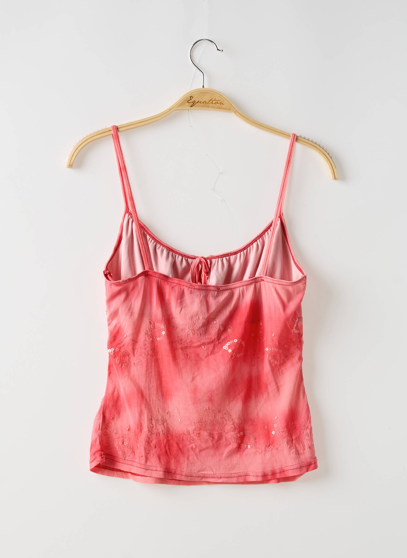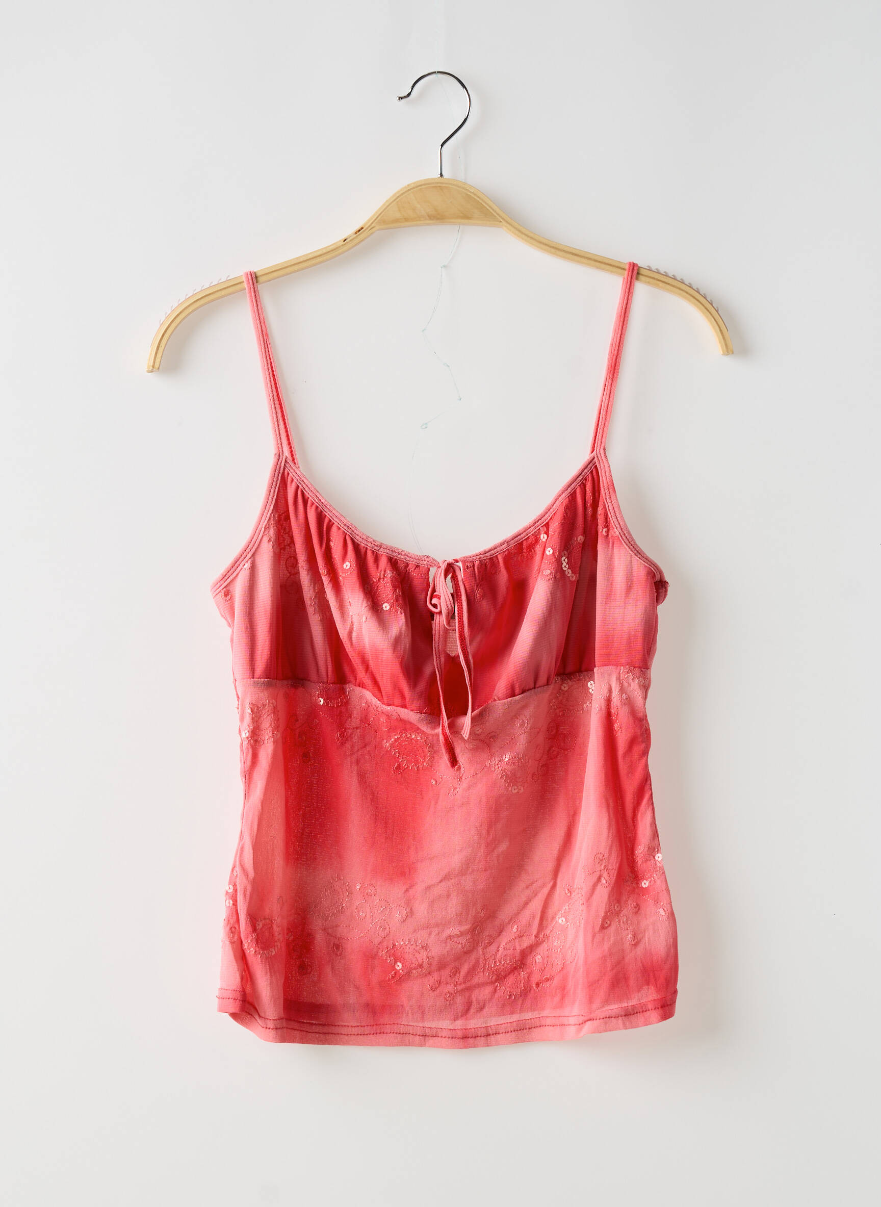 Plongez dans un océan de douceur et de fraîcheur avec ce top captivant de la marque ICI ET MAINTENANT. Sa teinte rose dégradé évoque les nuances d'un coucher de soleil, tandis que le décolleté arrondi, agrémenté d'un cordon délicat à nouer, ajoute une touche d'élégance et de féminité. Les fines bretelles offrent un maintien léger tout en mettant en valeur les épaules, faisant de cette pièce un choix parfait pour les jours ensoleillés ou les soirées décontractées. Les embellissements subtils sur le tissu apportent une note artistique qui saura séduire les amantes de la mode. Ce top est l’incarnation de la légèreté et du style moderne, parfait pour exprimer votre personnalité unique.