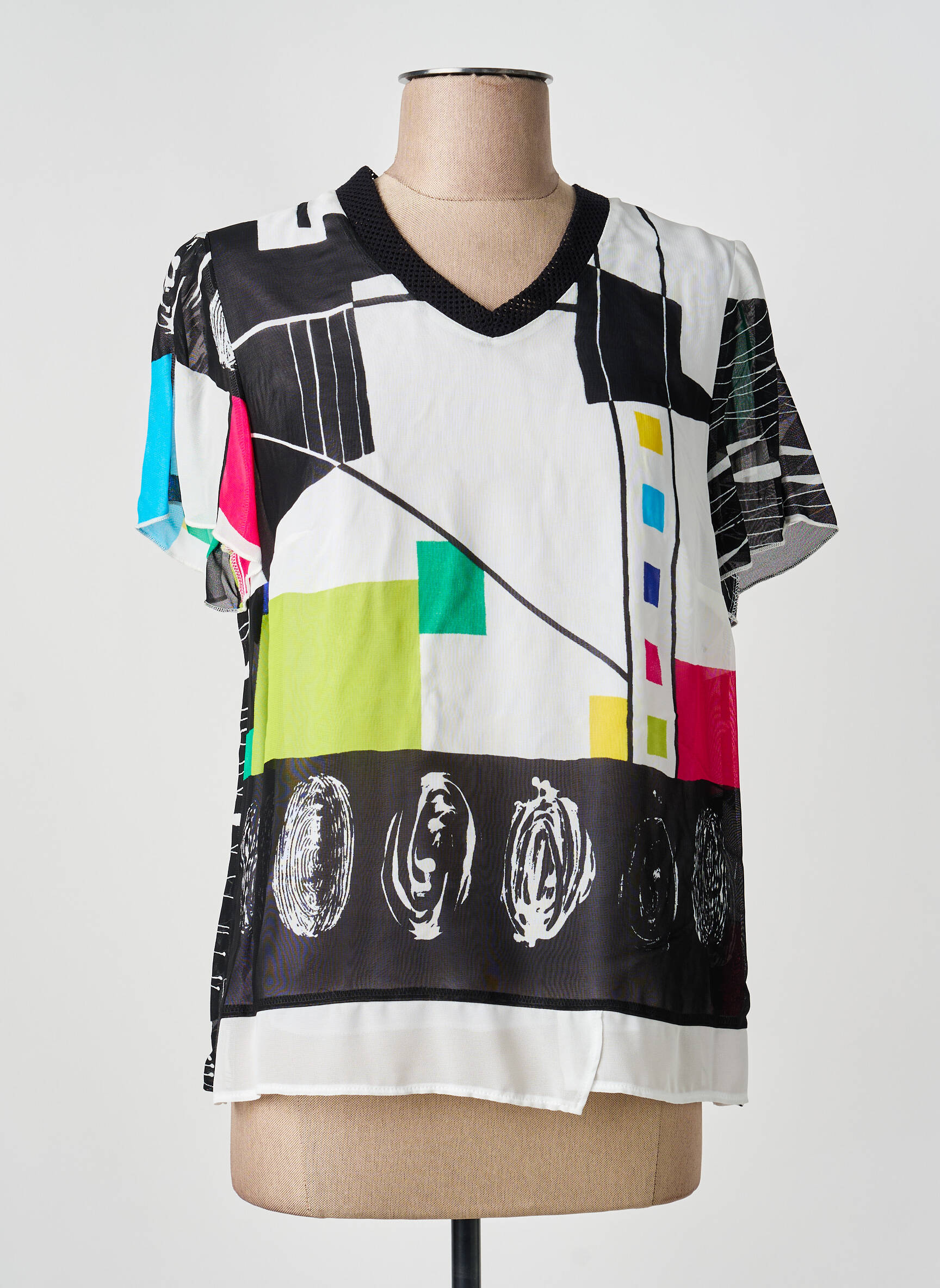 Craquez pour ce top original de la marque IMPULSION, parfait pour celles qui aiment se distinguer sans se ruiner. Son imprimé graphique dynamique et coloré apporte une touche moderne à votre tenue tout en restant facile à porter au quotidien. Profitez de ce bon plan pour donner du style à votre dressing à petit prix, tout en affirmant votre personnalité avec une pièce unique et tendance.