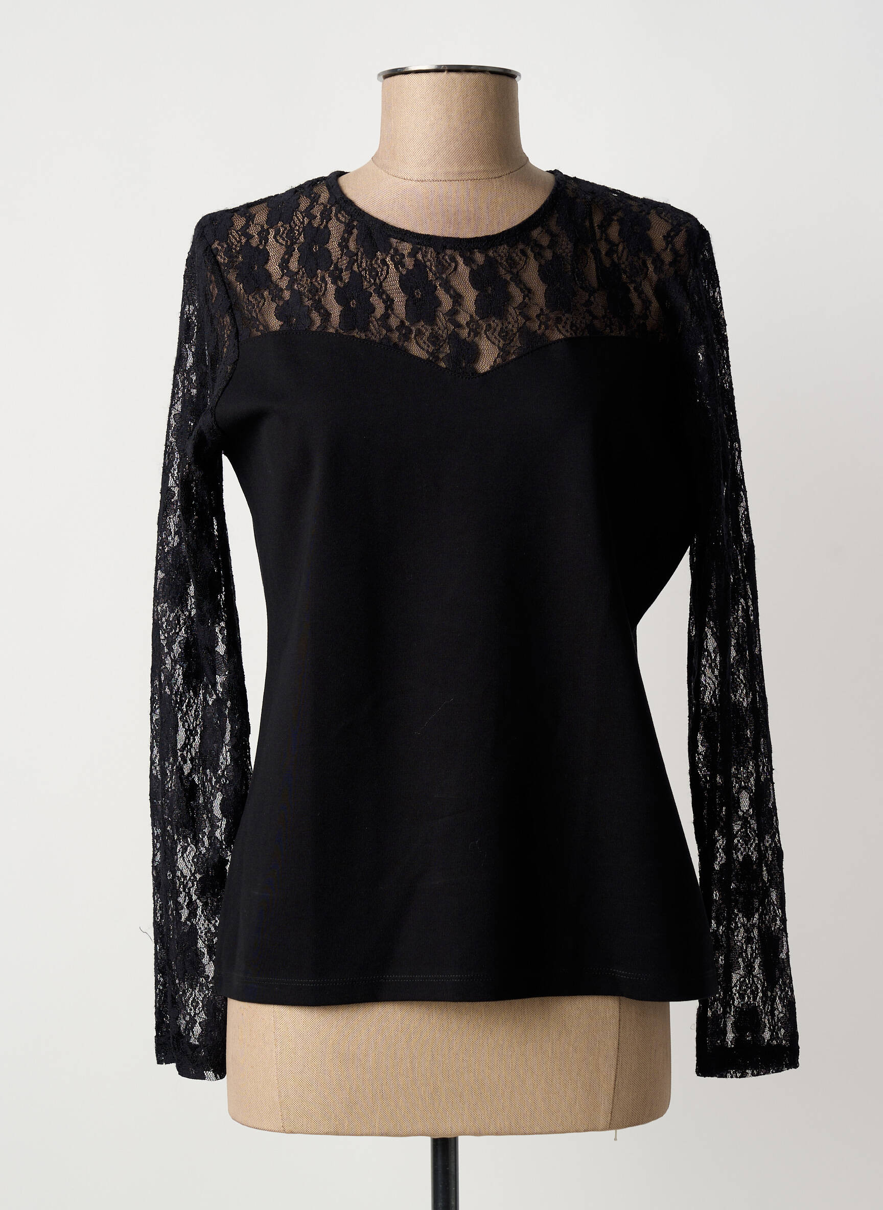 Craquez pour ce top signé JULIE GUERLANDE, un choix malin pour ajouter une touche d’élégance à petit prix à votre garde-robe. Son jeu de transparence avec la dentelle délicate sur les manches et au niveau du décolleté contraste parfaitement avec le tissu noir uni, pour une allure féminine et tendance. Profitez de cette pièce chic à prix irrésistible pour sublimer tous vos looks sans vous ruiner.