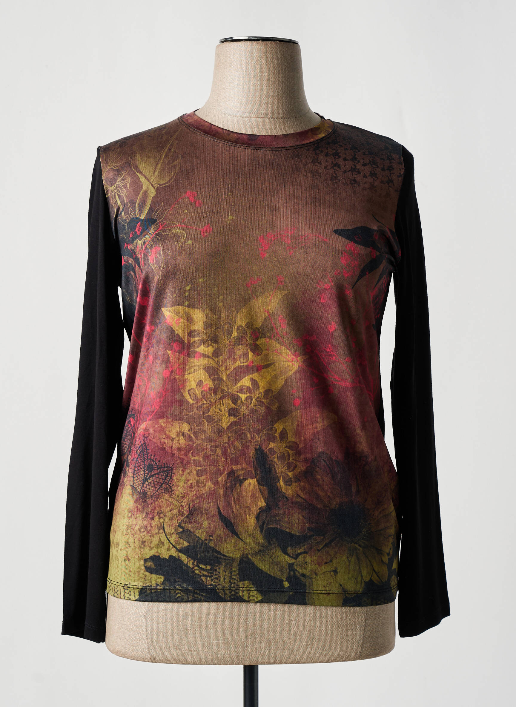 Craquez pour ce top KARTING pour femme à prix mini, une véritable aubaine pour apporter une touche de fantaisie à votre garde-robe sans vous ruiner. Son imprimé floral aux teintes chaudes et profondes, mêlant nuances de bordeaux, jaune et noir, offre une allure artistique et raffinée, tandis que ses manches longues unies apportent une belle touche de contraste. Ce haut pas cher est parfait pour celles qui aiment se démarquer avec style, sans compromettre leur budget.