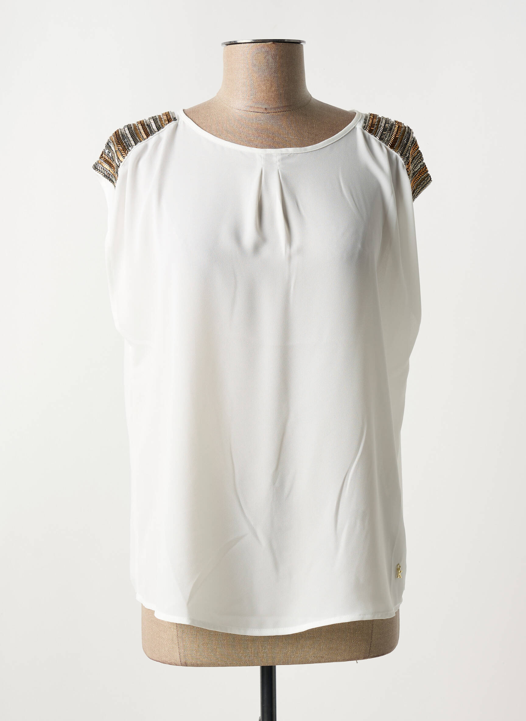 Craquez pour ce top KOCCA pour femme à prix mini, parfait pour ajouter une touche chic à votre garde-robe sans vous ruiner. Fluide et élégant, il se distingue par sa coupe droite et son coloris crème facile à associer, tandis que des détails dorés et dorés aux épaules apportent une subtile note sophistiquée pour un look raffiné à petit prix.