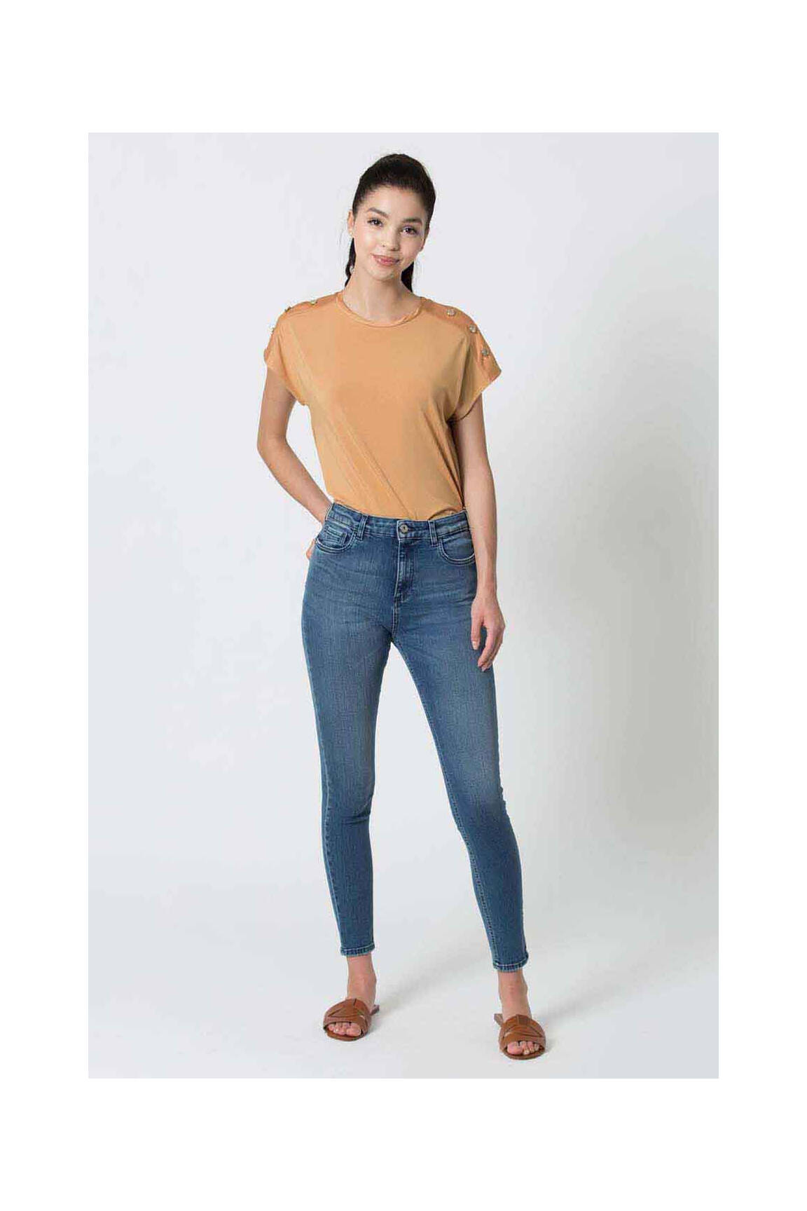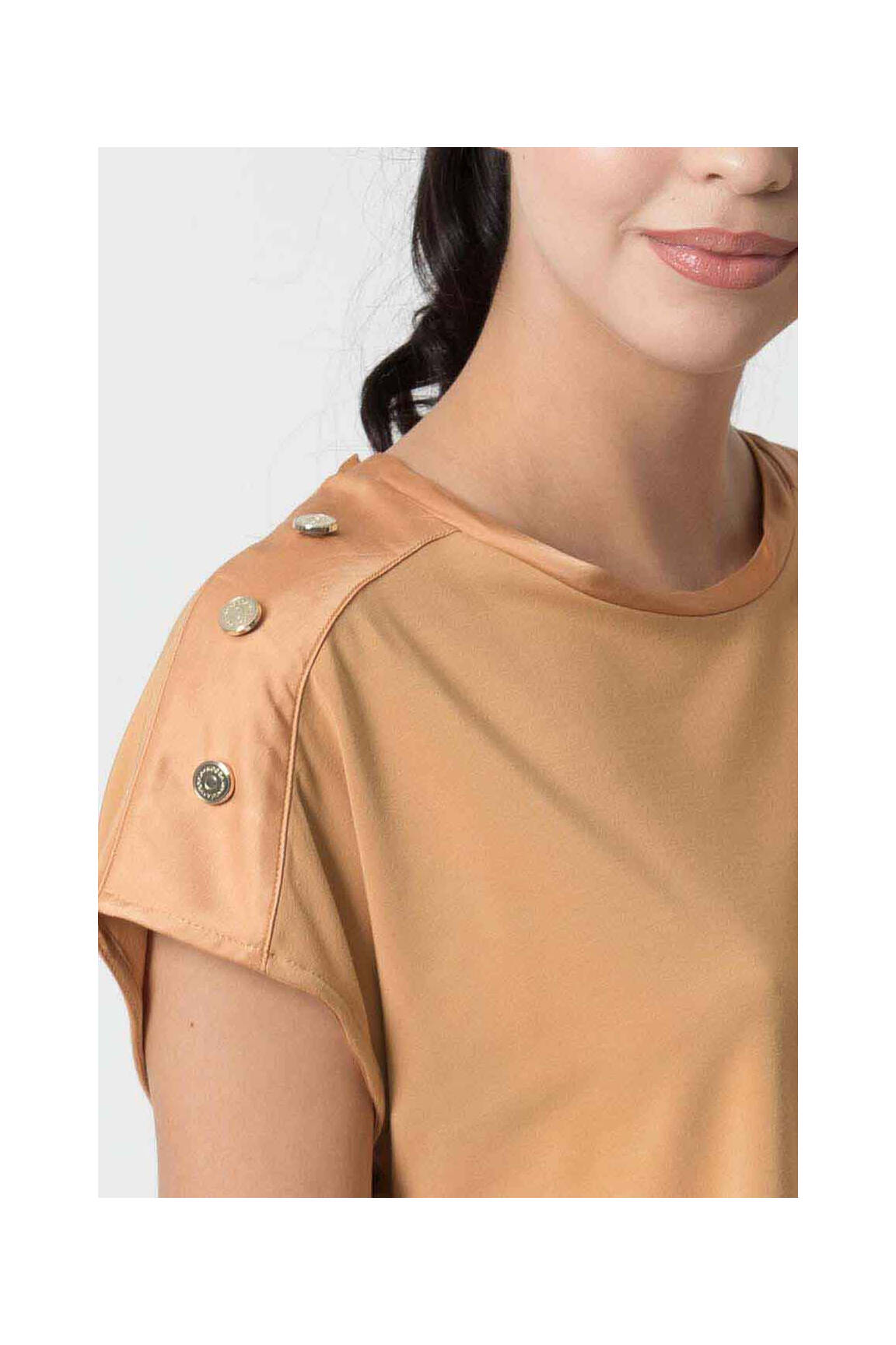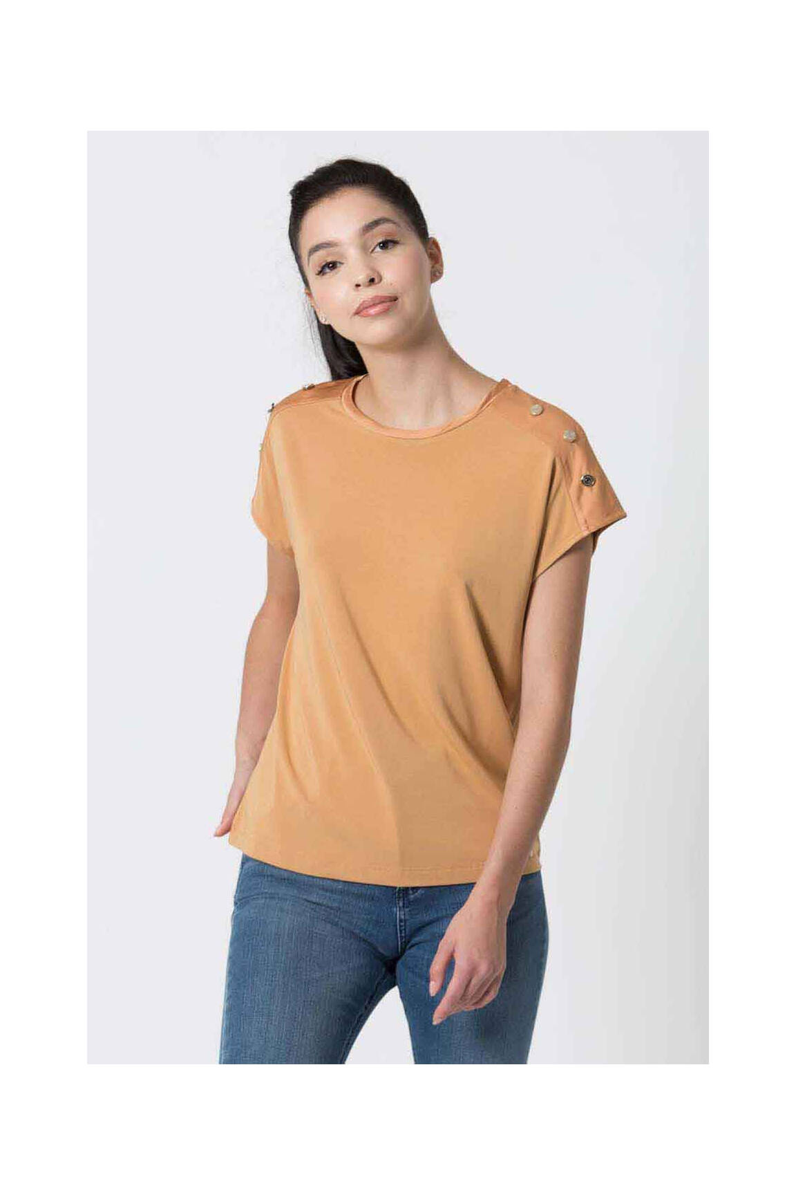 Osez la simplicité qui fait toute la différence avec ce top KOCCA pour femme, sublimé par une teinte corail douce et une coupe épurée qui épouse délicatement la silhouette. Les petites touches originales se révèlent aux épaules où des boutons disposés de manière asymétrique apportent un clin d’œil subtil à ce modèle au col arrondi et aux manches courtes légèrement retroussées. Élégant autant que confortable, ce top se prête aussi bien à un look casual qu'à une tenue plus travaillée, offrant une polyvalence idéale pour toutes les occasions.