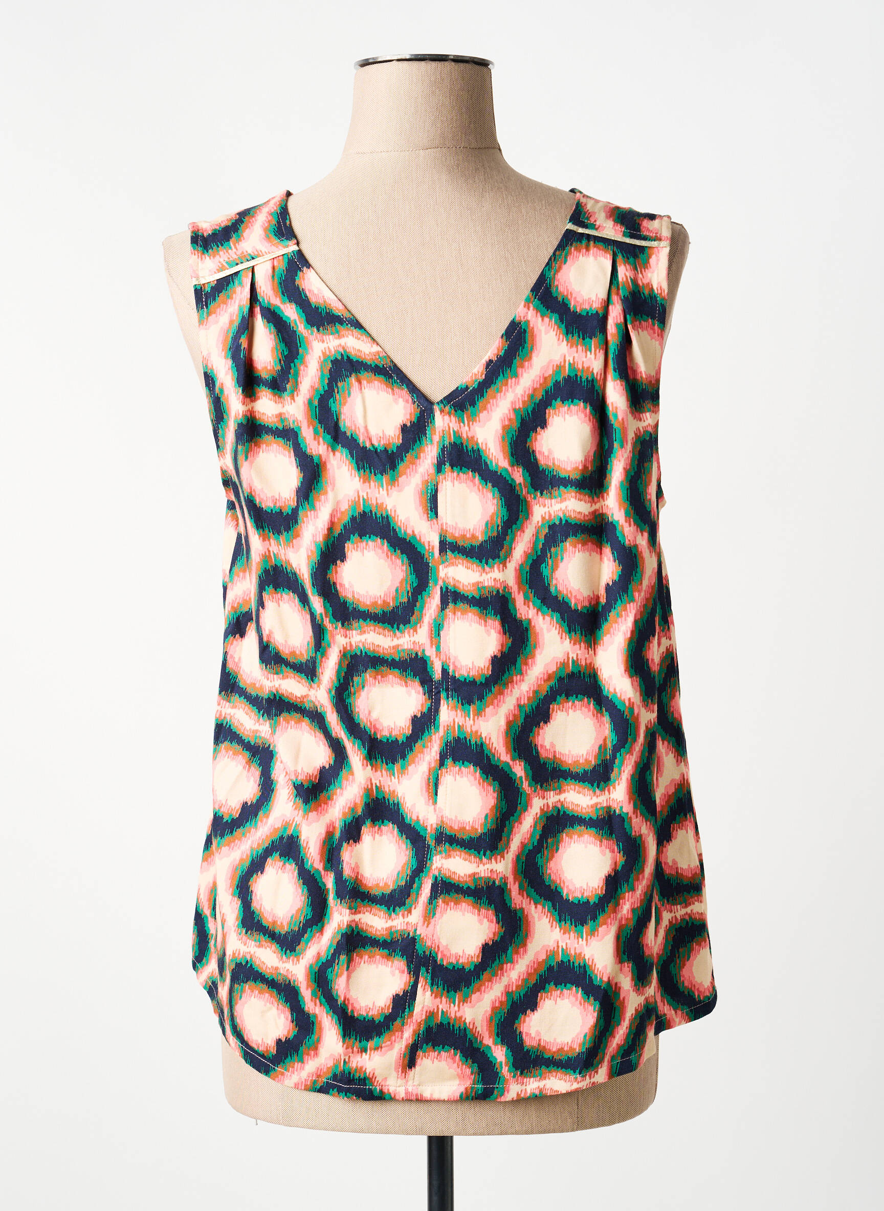 Profitez d’une vraie affaire sur ce top LOLA ESPELETA pour femme, idéal pour apporter une touche originale à votre dressing sans vous ruiner. Sa coupe fluide et son imprimé graphique multicolore apportent dynamisme et fraîcheur à toutes vos tenues, parfait pour un look estival tendance à prix mini.