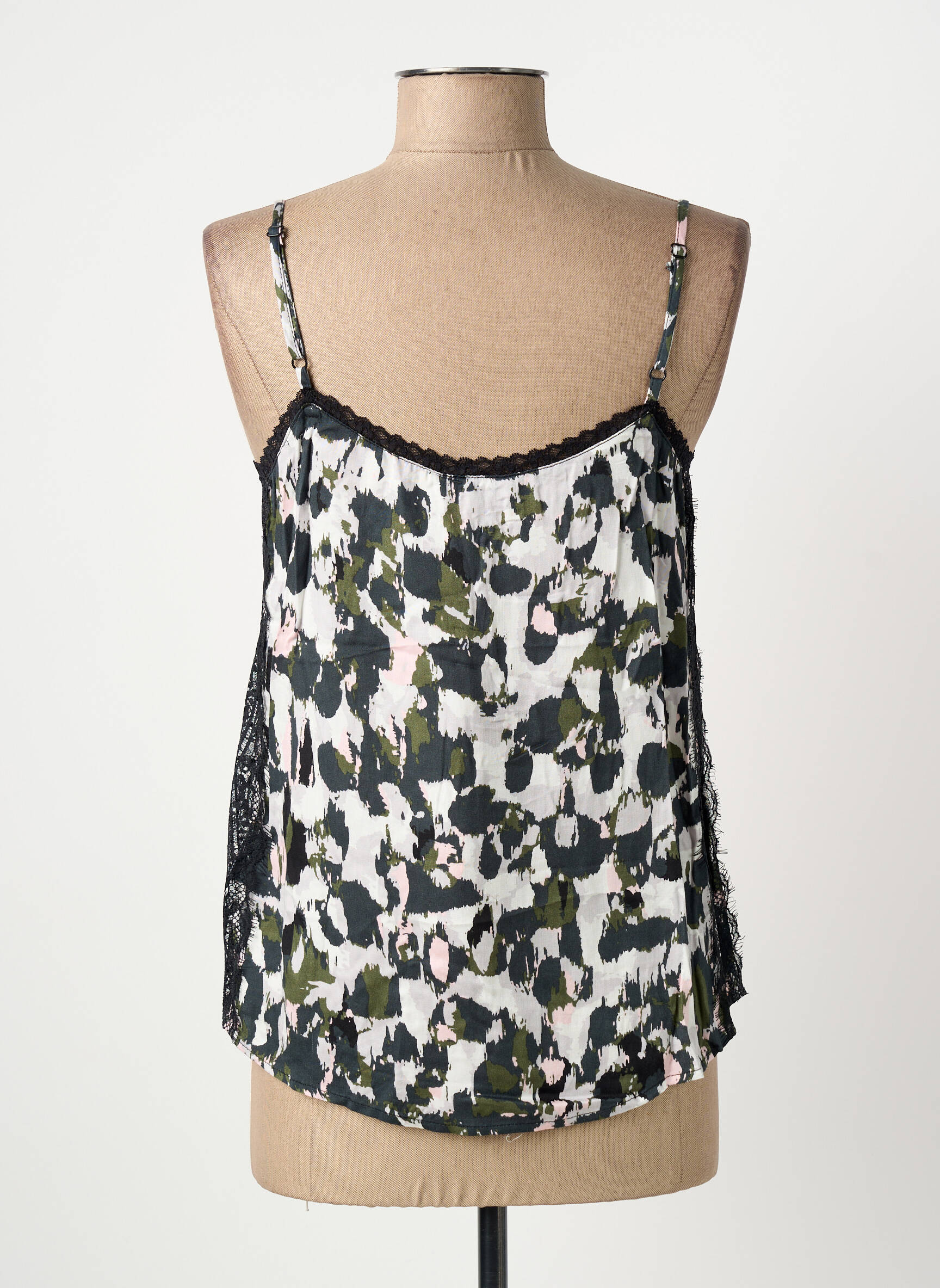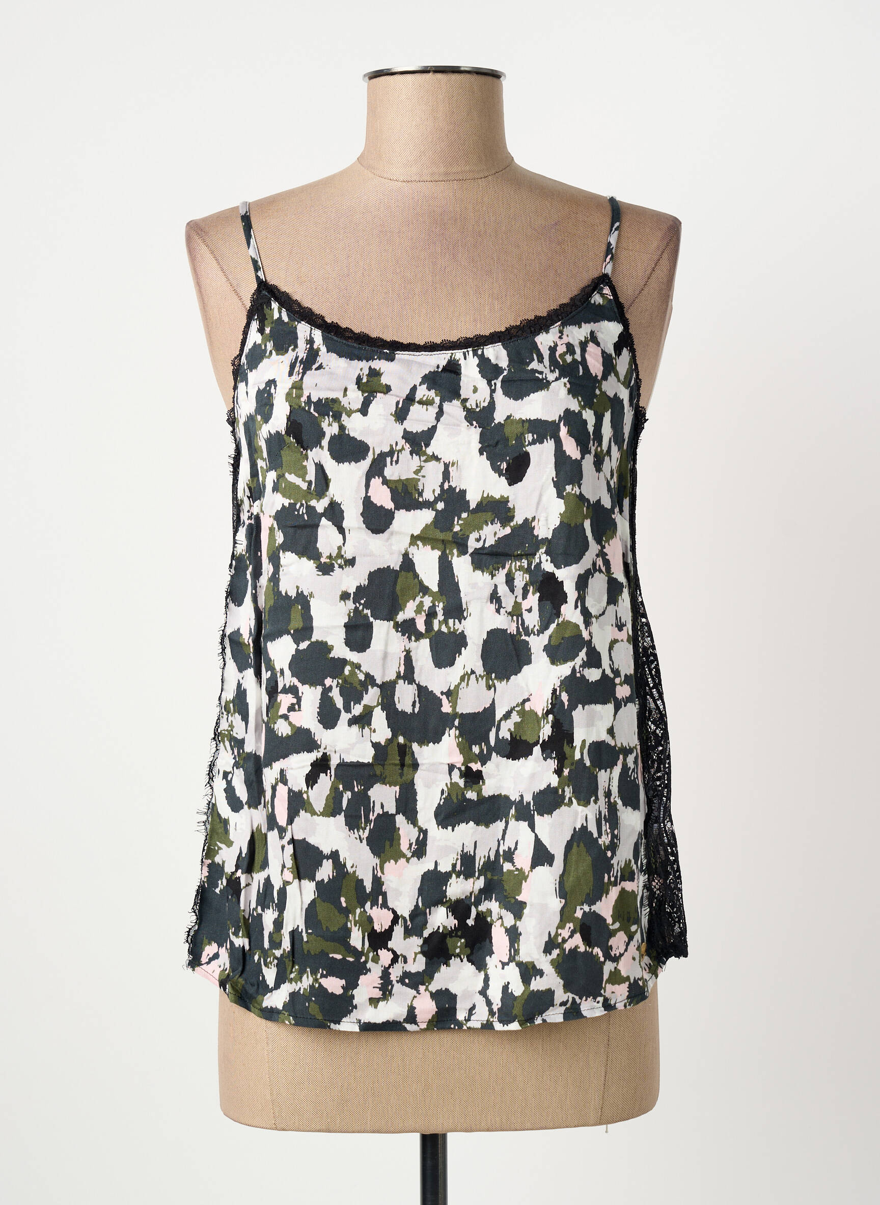 Craquez pour ce top LOLA ESPELETA pour femme, un vrai bon plan à prix tout doux qui apportera une touche graphique chic à votre dressing. Avec ses fines bretelles et son imprimé tacheté aux nuances de vert, noir et blanc légèrement rosé, il offre un look moderne et féminin, rehaussé de discrètes touches de dentelle noire sur les côtés pour davantage d’élégance. Sa coupe fluide vous permet de le porter avec aisance de jour comme de nuit, que ce soit avec un jean ou une jupe, et à ce tarif, difficile de ne pas se laisser tenter par ce top stylé et économique.
