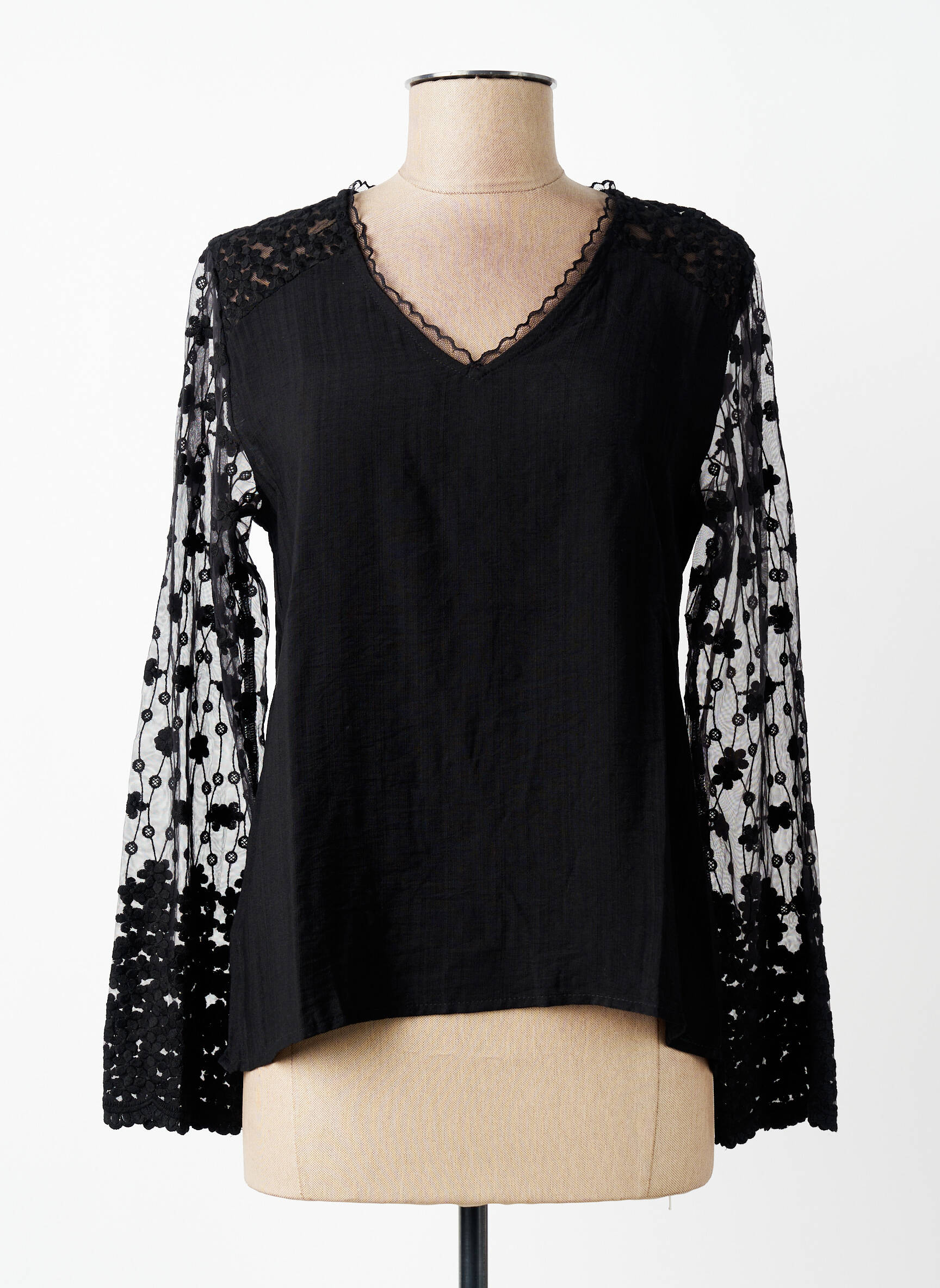 Top Maelle Noir Manches Longues