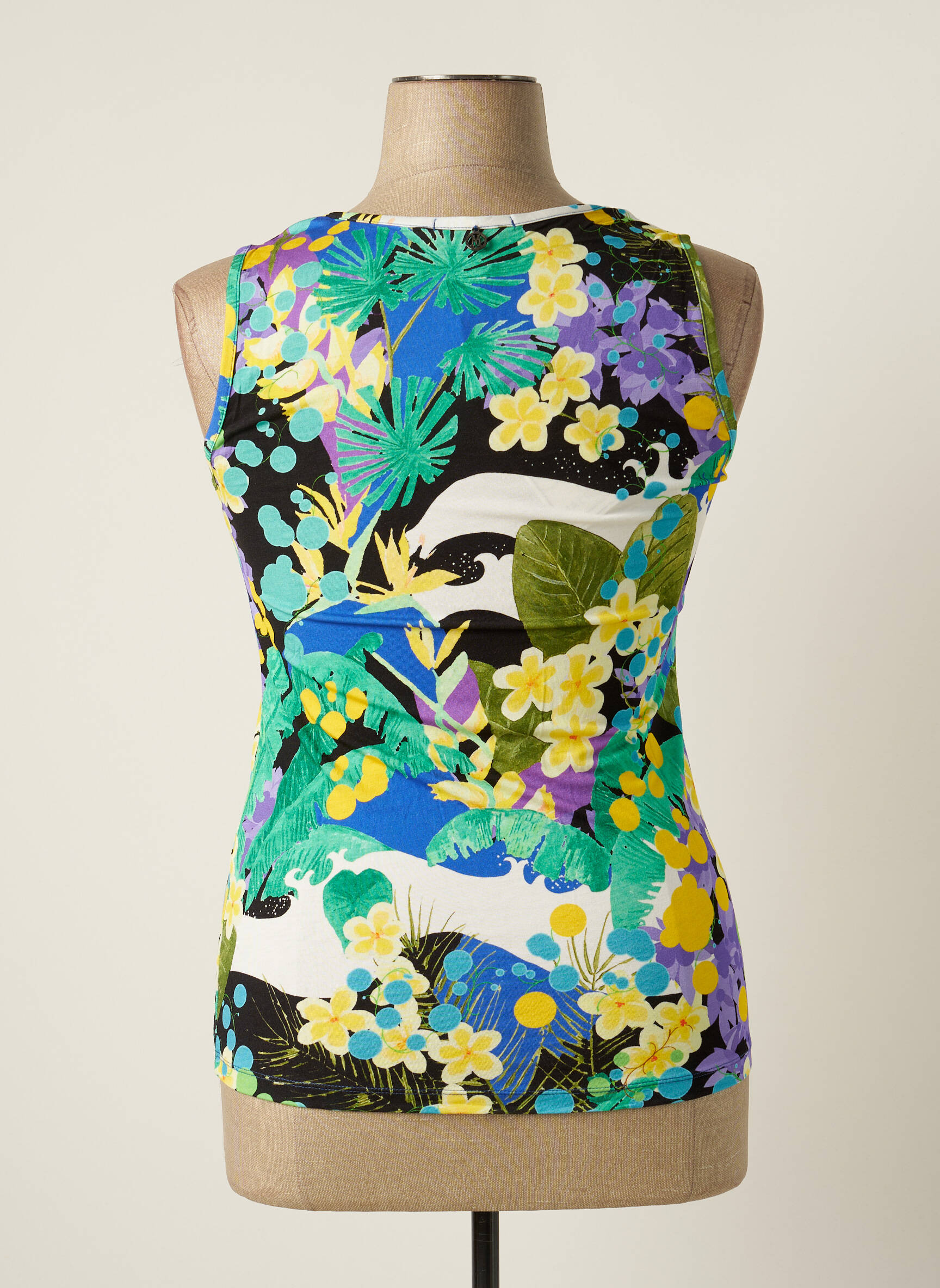 Craquez pour ce top femme de la marque Maloka à prix mini, une véritable opportunité pour dynamiser votre garde-robe sans vous ruiner. Sa coupe sans manches épouse joliment la silhouette, tandis que son imprimé vif aux accents tropicaux mêle harmonieusement des touches de bleu, de vert, de jaune et de violet pour un look frais et pep’s. Idéal pour apporter une note de couleur à vos tenues estivales, ce haut est aussi agréable à porter qu’à associer, parfait pour celles qui aiment la mode à petit prix.