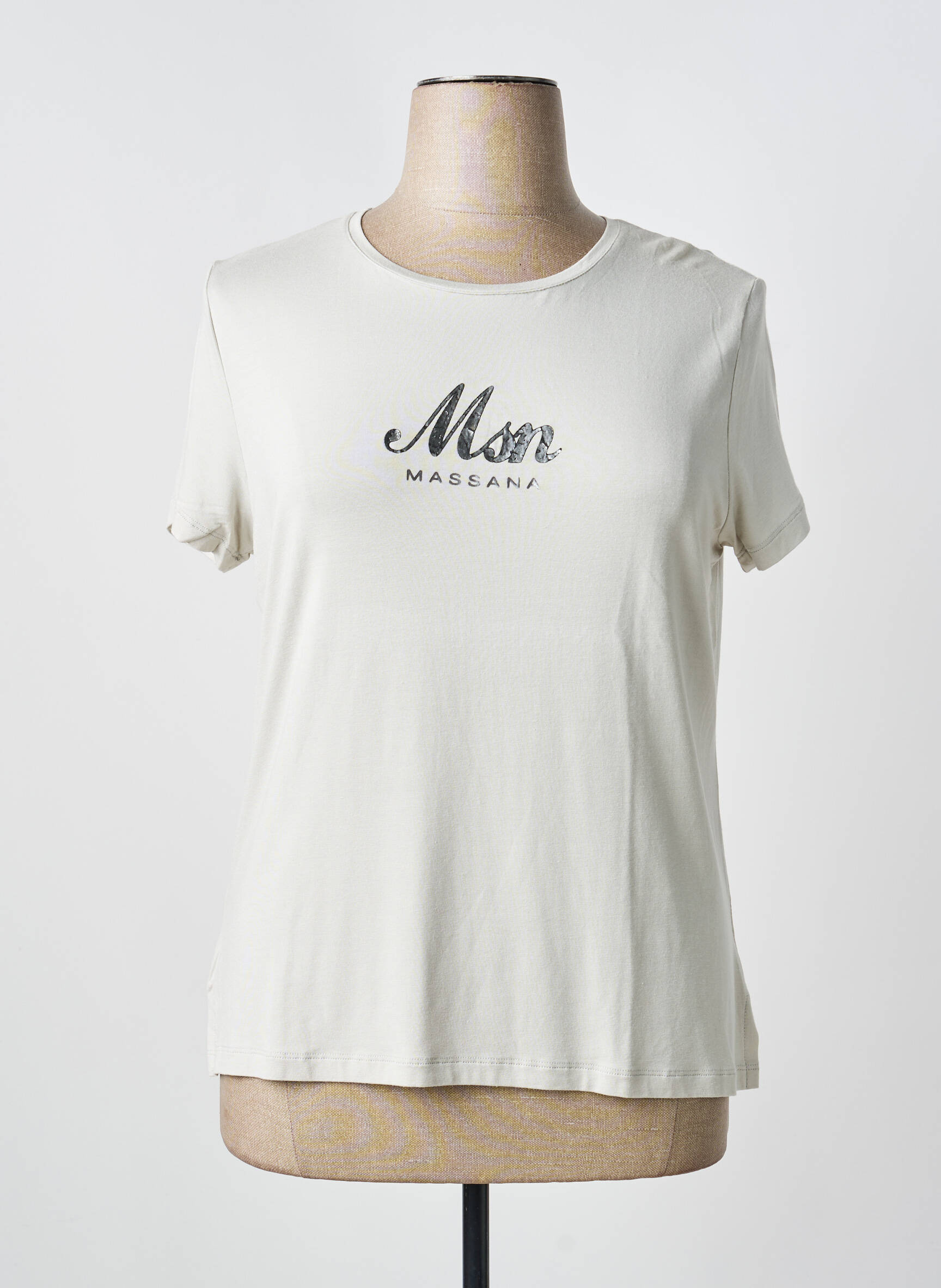 Profitez d’un joli bon plan avec ce top Massana pour femme, un choix parfait pour allier style et économies. Ce t-shirt à manches courtes séduit par sa coupe classique et son coloris crème très doux, le tout rehaussé par un logo stylisé au centre pour une touche tendance et discrète. Simple mais élégant, il est idéal pour composer des tenues décontractées à prix mini sans renoncer à la qualité de marque.