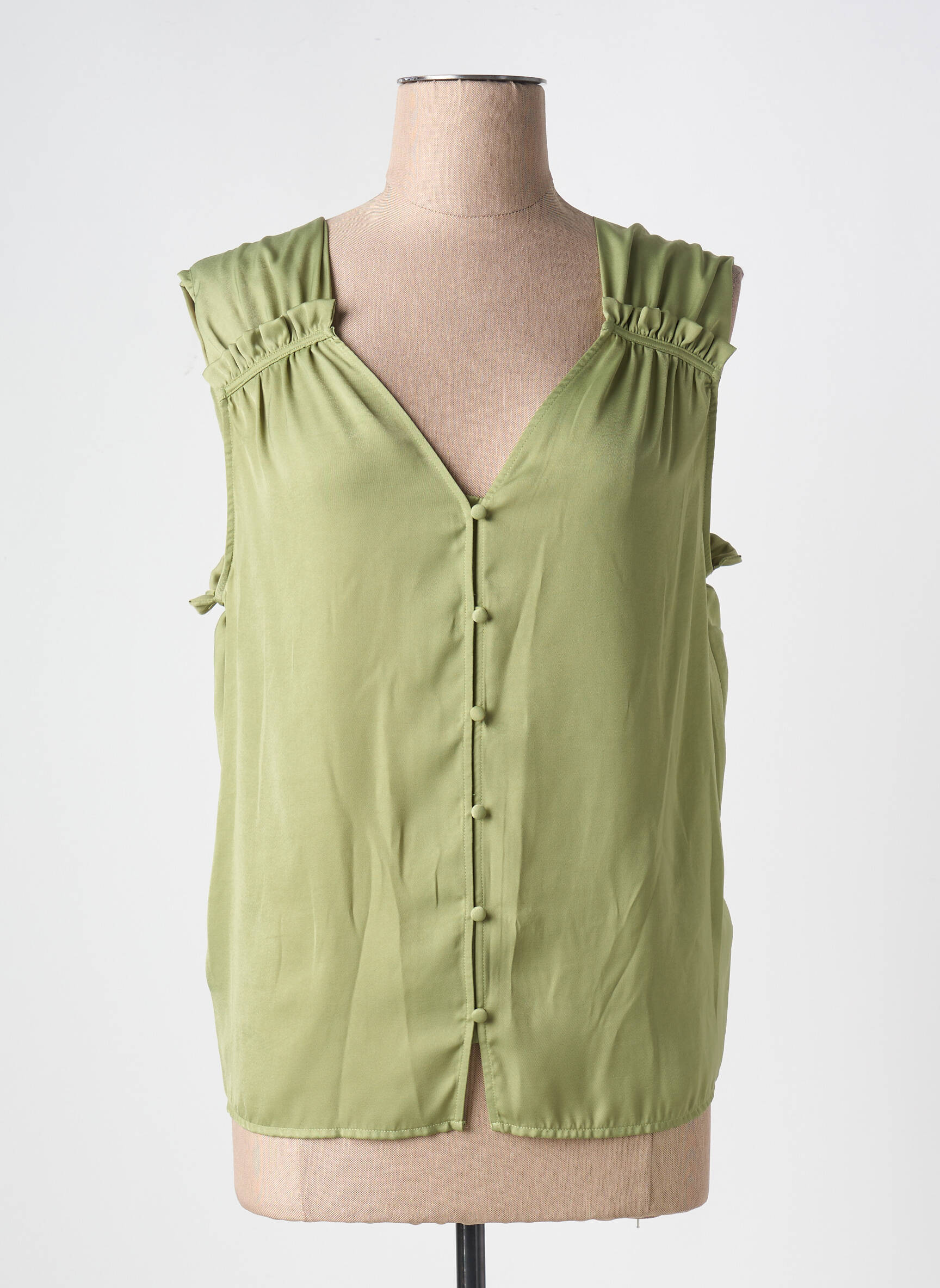 Craquez pour ce top MD'M pour femme à prix mini, idéal pour rehausser votre garde-robe sans vous ruiner. Son joli coloris vert tendre apporte une touche de fraîcheur et de modernité, tandis que ses détails froncés sur les épaules et sa coupe sans manches offrent une allure féminine et légère parfaite pour la saison. Les boutons recouverts apportent une vraie note d’élégance à ce modèle pensé pour s’associer facilement à vos tenues de tous les jours comme à vos looks plus habillés.