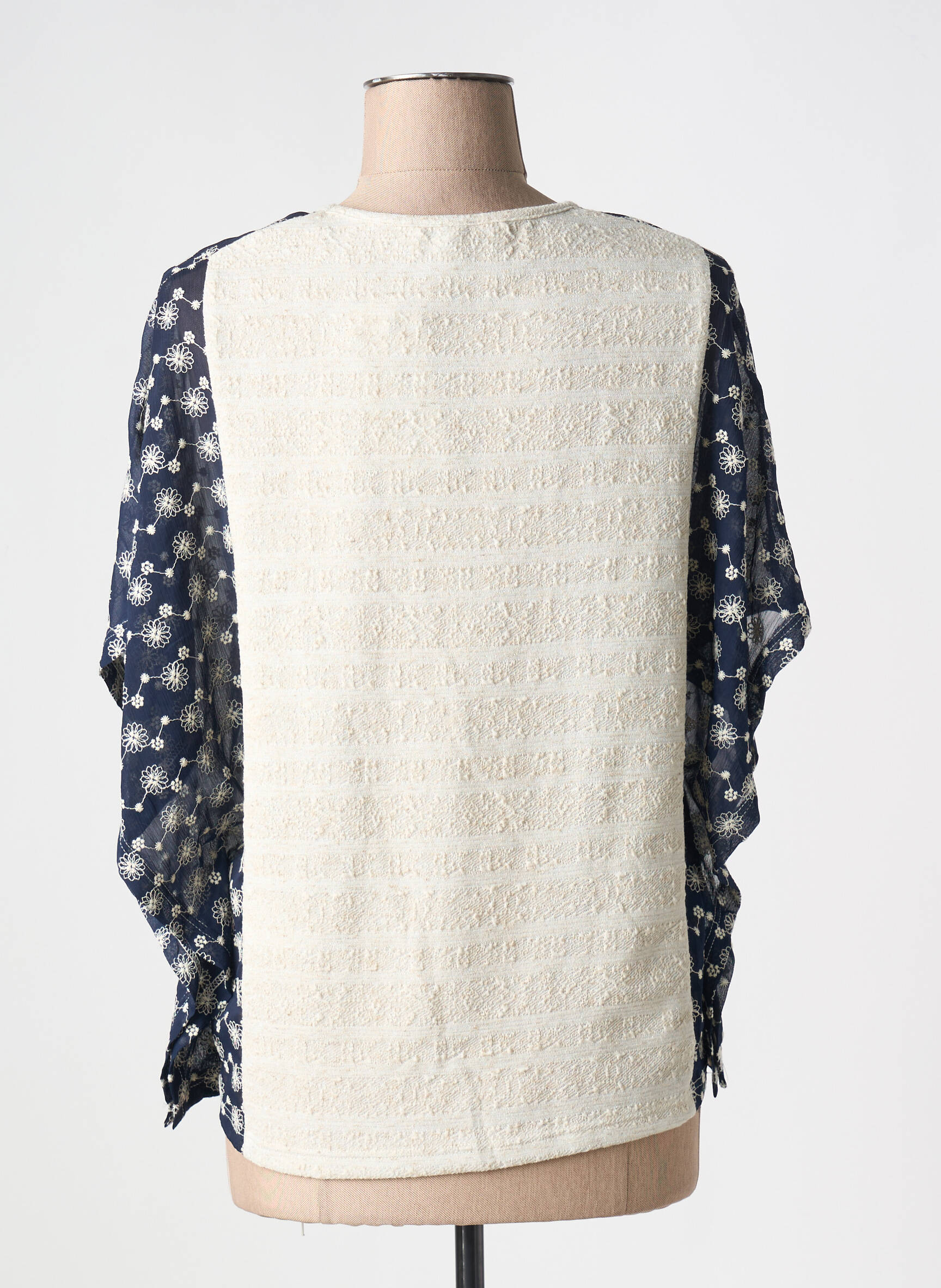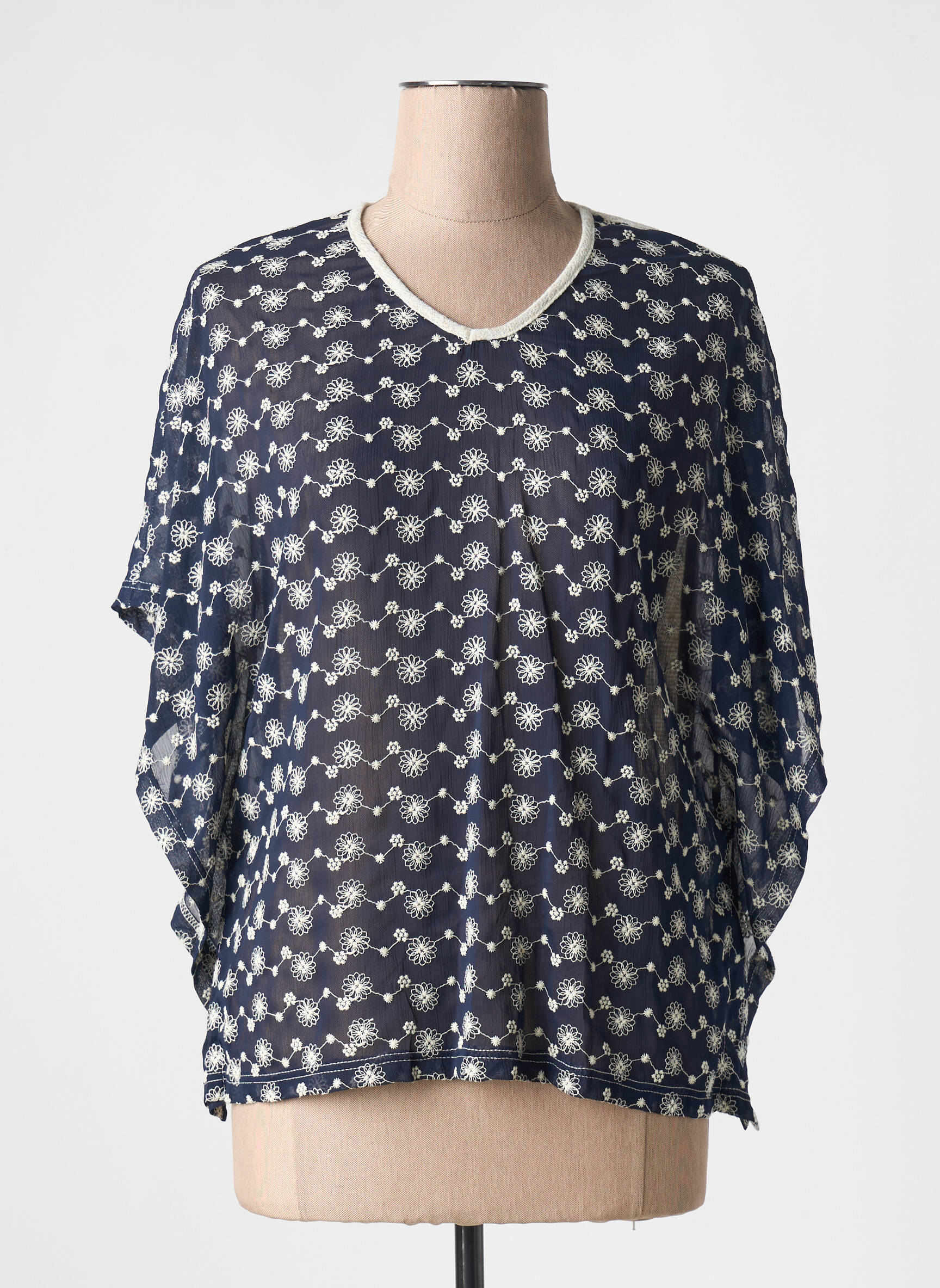 Profitez d’un véritable bon plan avec ce top MERI & ESCA pour femme, dont la légèreté et la transparence en font une pièce idéale pour la saison. Son imprimé graphique joue sur les contrastes d’un bleu profond rehaussé de motifs clairs, tandis que sa coupe ample et son encolure délicatement bordée apportent une note décontractée et élégante à votre tenue du quotidien. Un coup de cœur tendance à petit prix, parfait pour renouveler votre garde-robe sans se ruiner.