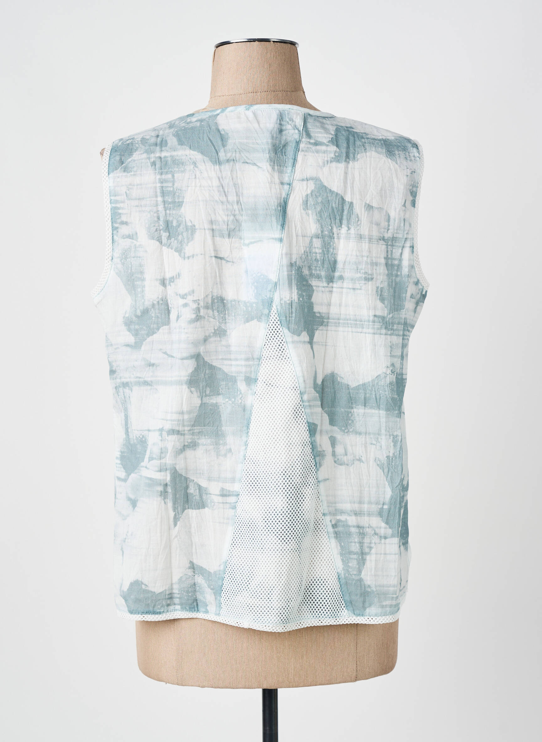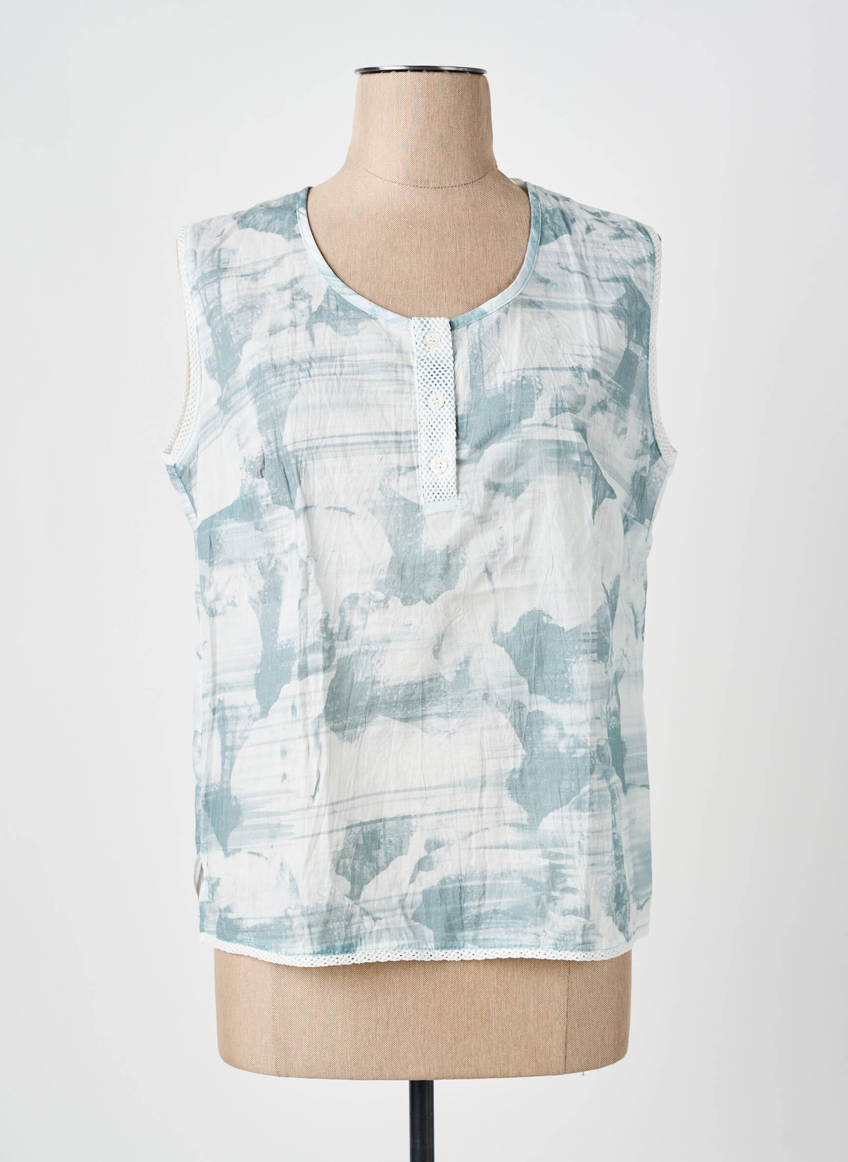 Profitez d’un vrai bon plan avec ce top sans manches de la marque MERI & ESCA, une pièce légère au style décontracté, parfaite pour les beaux jours. Son imprimé bleu pâle façon aquarelle sur fond clair apporte une touche d’originalité tout en restant facile à associer, et l’encolure ronde ouverte par une petite patte boutonnée donne un esprit casual et raffiné à petit prix, idéal pour renouveler votre dressing sans vous ruiner.