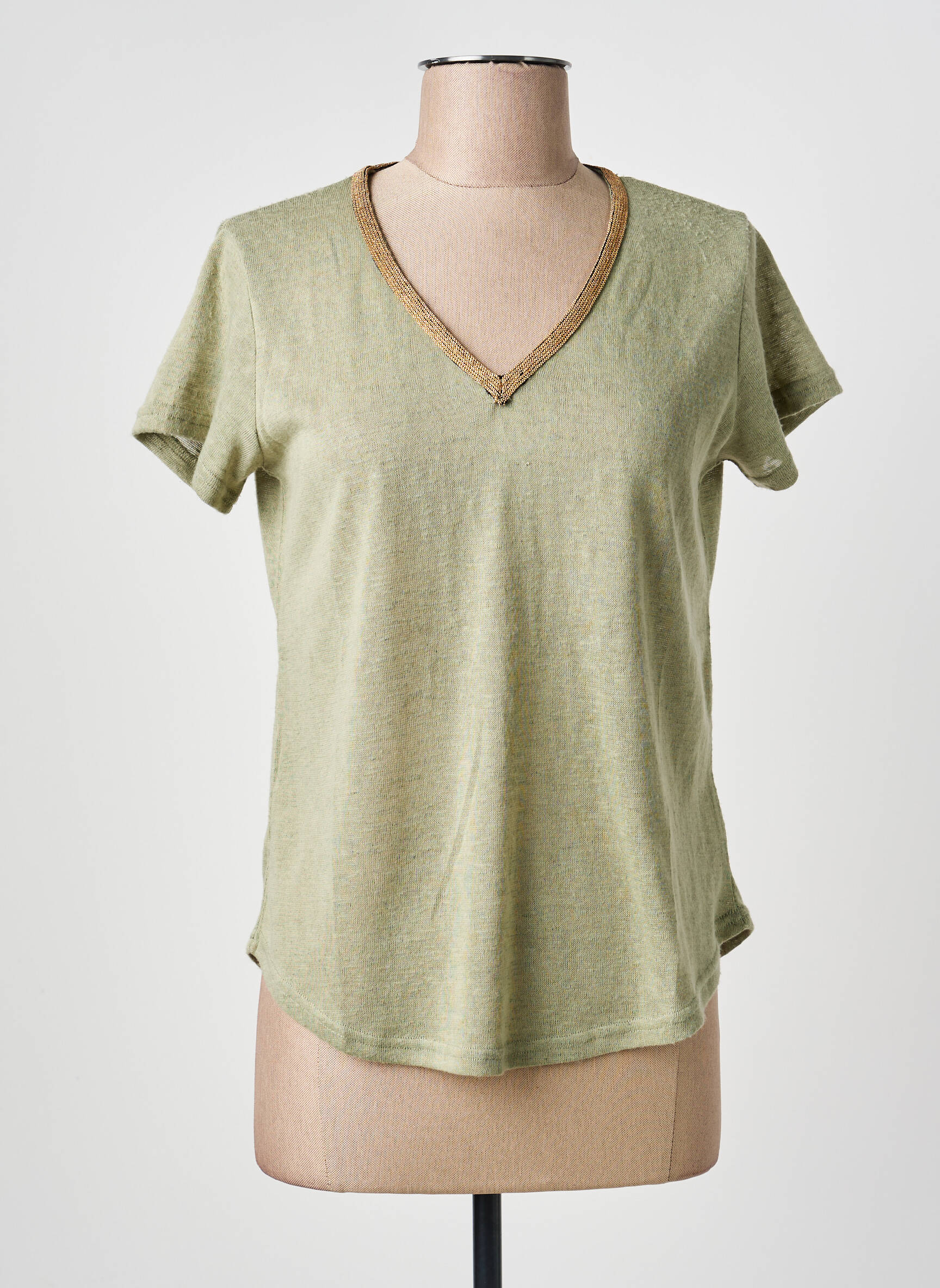 Laissez-vous séduire par ce top MOLLY BRACKEN pour femme, une pièce incontournable à prix tout doux qui allie simplicité et modernité avec son joli col V bordé d’un liseré contrastant. Parfait pour composer un look décontracté avec une touche d’élégance, ce t-shirt légèrement irisé dans une nuance de vert doux est une affaire à ne pas manquer pour renouveler sa garde-robe sans se ruiner.