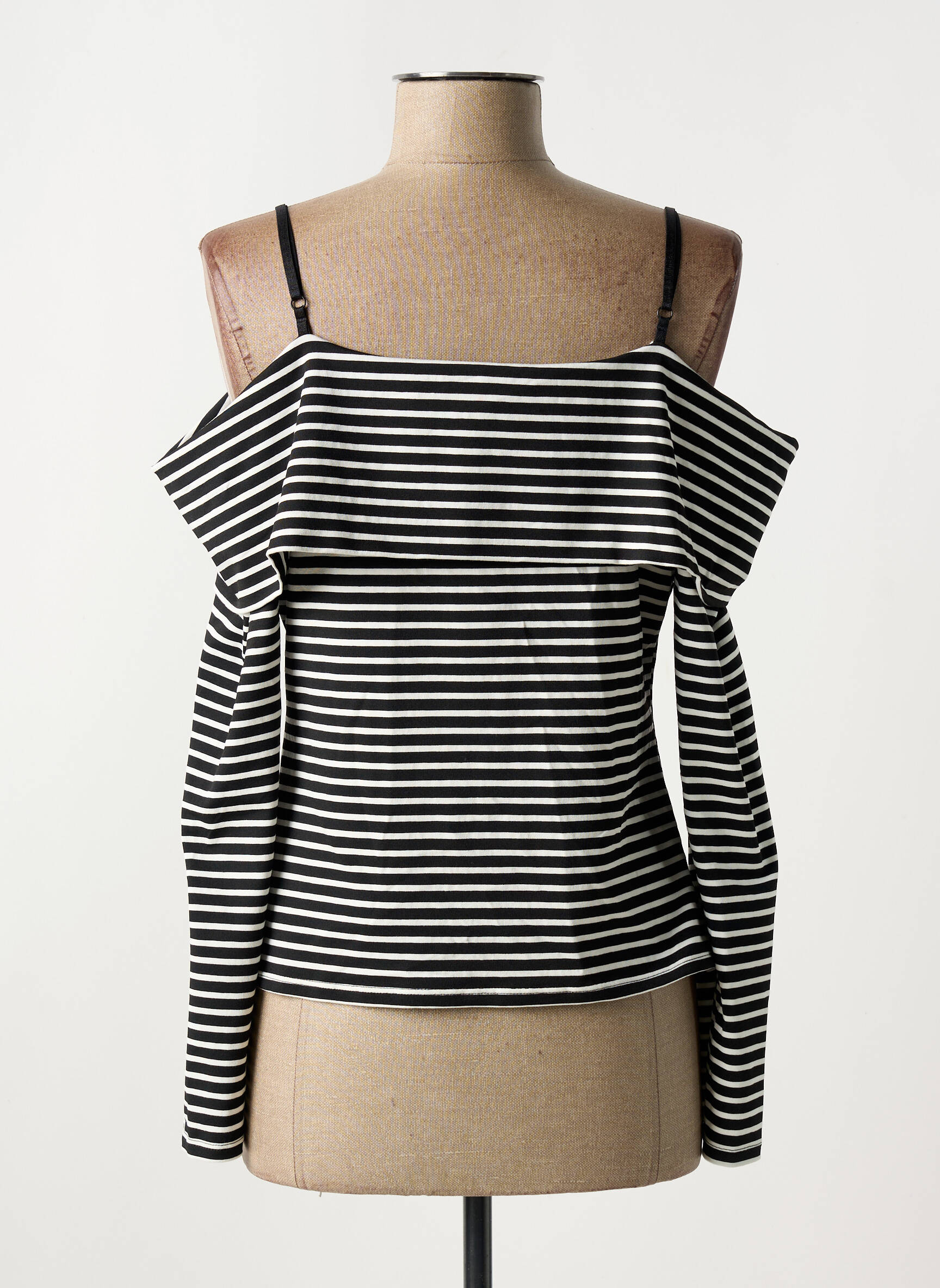 Craquez pour ce top femme MORGAN à prix mini, parfait pour ajouter une touche tendance à votre dressing sans vous ruiner. Son motif rayé noir et blanc, sublimé par un large nœud sur le buste et une rangée de boutons dorés, offre à la fois élégance et originalité. Les fines bretelles et l’effet épaules dénudées apportent une note féminine et moderne, idéale aussi bien pour les looks casual que les sorties plus habillées. Saisissez cette belle opportunité pour profiter d’un indispensable stylé à petit prix !