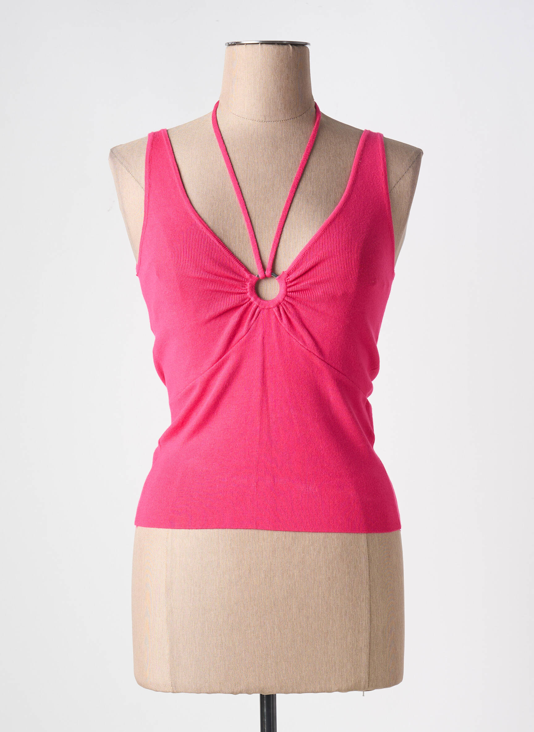 Craquez pour ce top femme signé Morgan, l’allié parfait pour profiter d’un look tendance à petit prix. Sa coupe près du corps est sublimée par une encolure profonde rehaussée d’un anneau central et de fines bretelles qui s’entrecroisent élégamment derrière la nuque, pour une touche de féminité irrésistible. Son coloris rose éclatant dynamise toutes vos tenues et mettra en valeur votre silhouette avec modernité, tout en vous permettant de faire de vraies économies sur un basique chic de la saison.