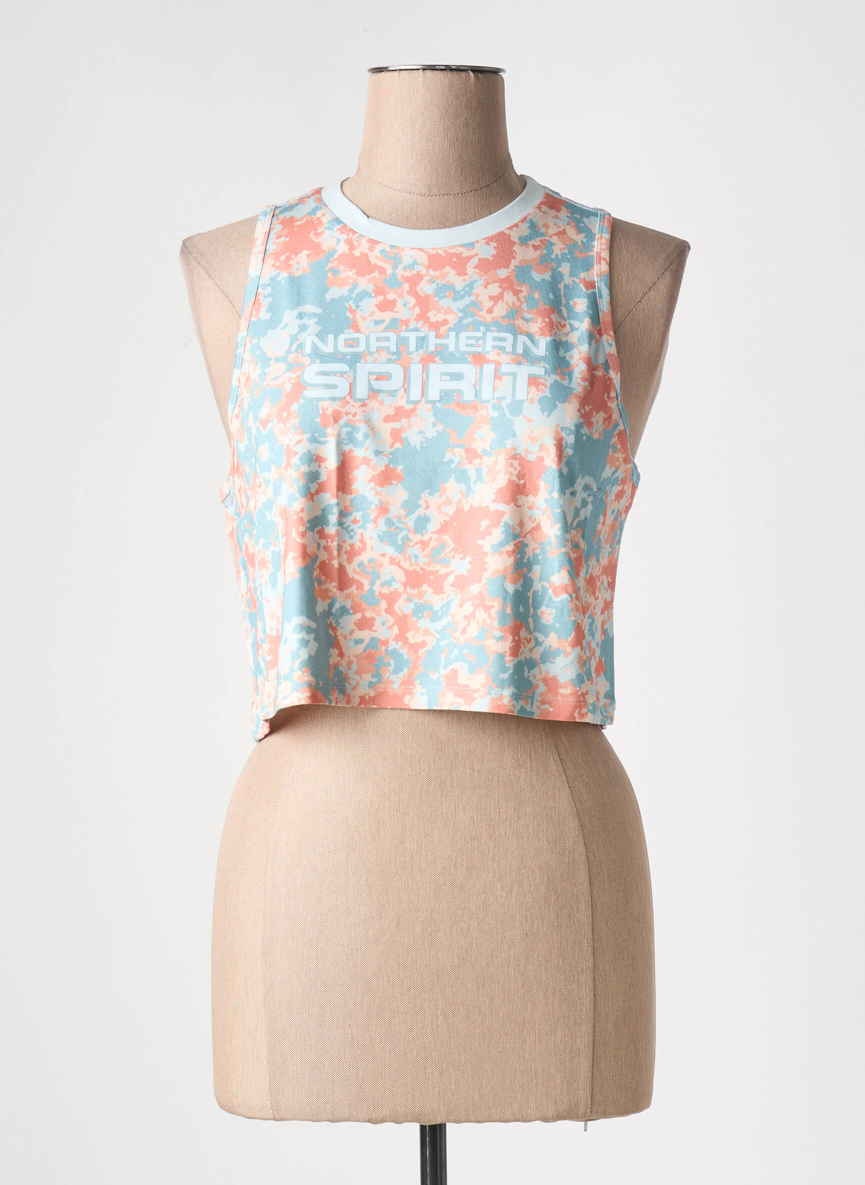 Voici l’occasion parfaite d’ajouter une touche tendance à votre dressing sans vous ruiner grâce à ce top Northern Spirit pour femme. Avec sa coupe courte et confortable, son imprimé multicolore dans les tons pastel et son logo mis en avant sur le devant, il apporte un look dynamique et moderne à petit prix. Ce modèle est l’allié idéal pour sublimer vos tenues estivales ou vos sessions sportives tout en faisant de vraies économies.