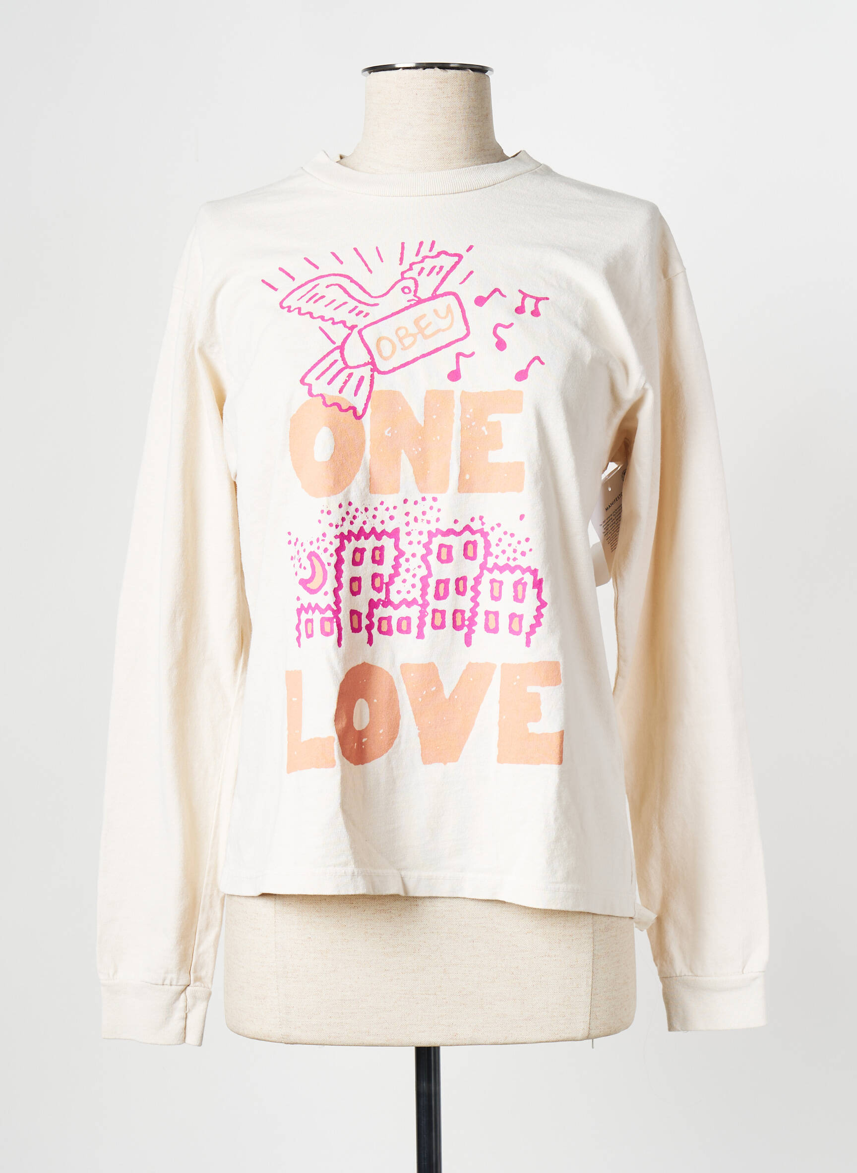 Craquez pour ce top OBEY pour femme à petit prix qui combine style urbain et message positif avec son imprimé graphique « ONE LOVE » rehaussé de touches colorées, idéal pour apporter une touche d’originalité à votre tenue tout en faisant des économies sur une pièce tendance et intemporelle.