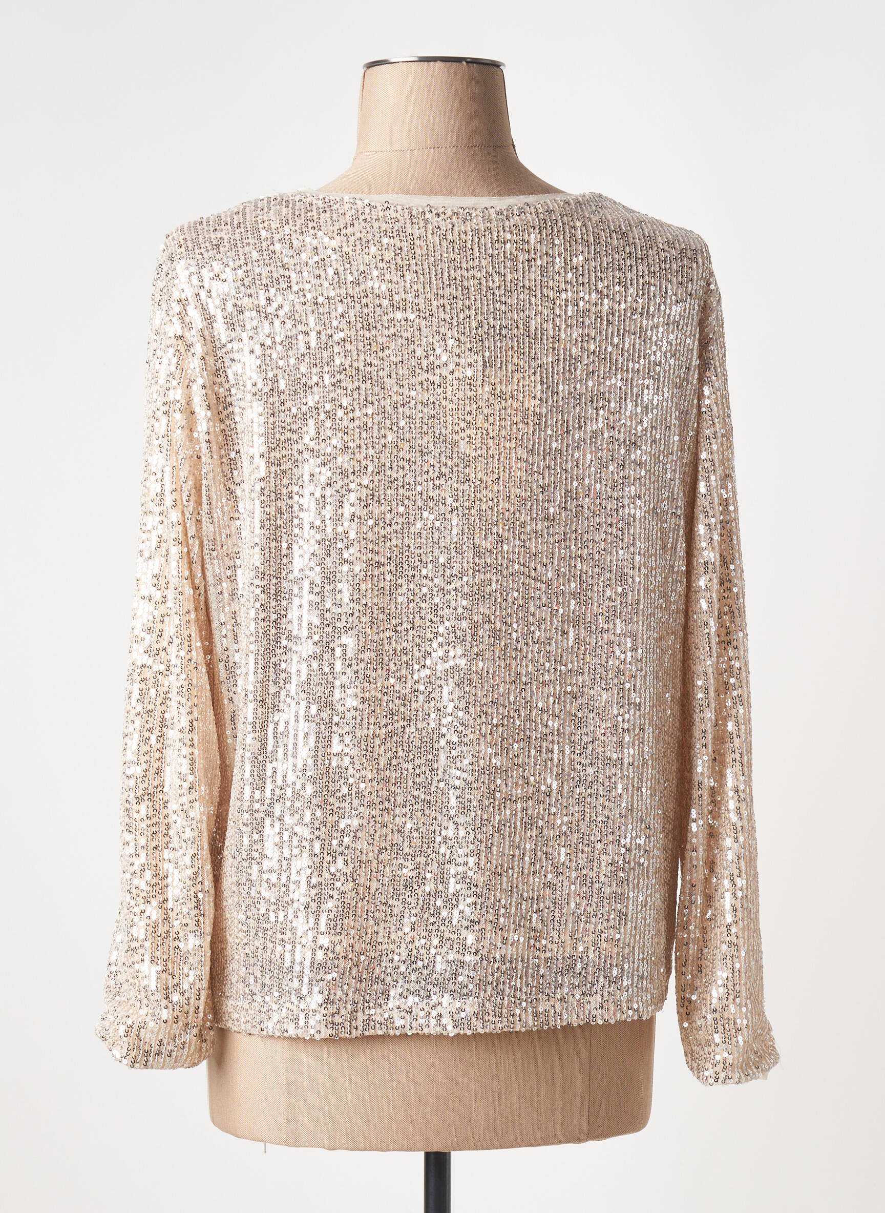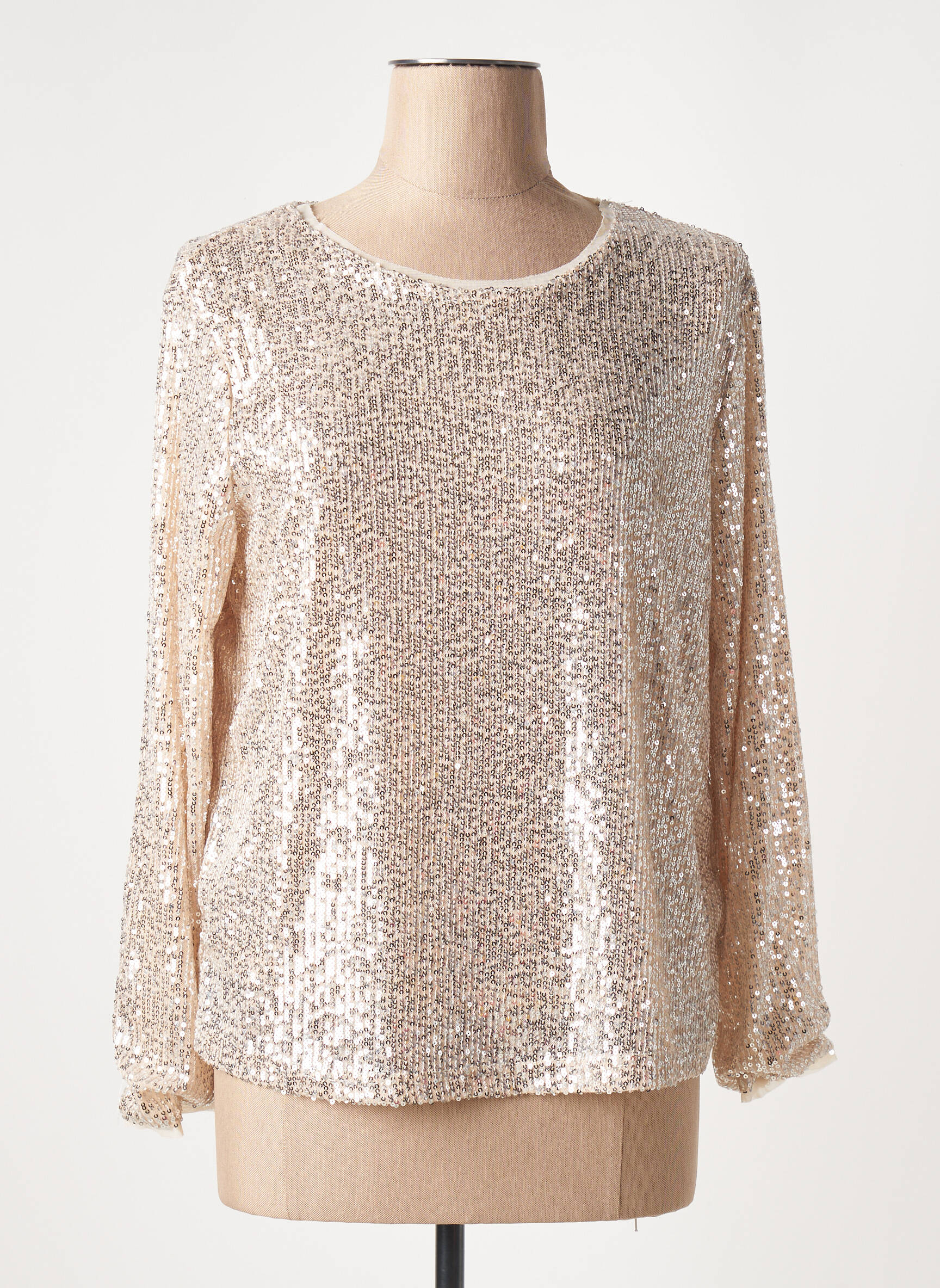 Pour un look tendance et facile à adopter, ce top se marie parfaitement avec un pantalon noir ajusté ou une jupe crayon pour mettre en valeur son côté lumineux. Ajoutez une paire d’escarpins ou des bottines pour allonger la silhouette, puis complétez votre tenue avec une pochette sobre et quelques bijoux discrets afin de laisser toute la place à l’éclat du haut. Pour une allure plus décontractée mais toujours sophistiquée, il se glisse sans effort sur un jean brut et des baskets blanches.
