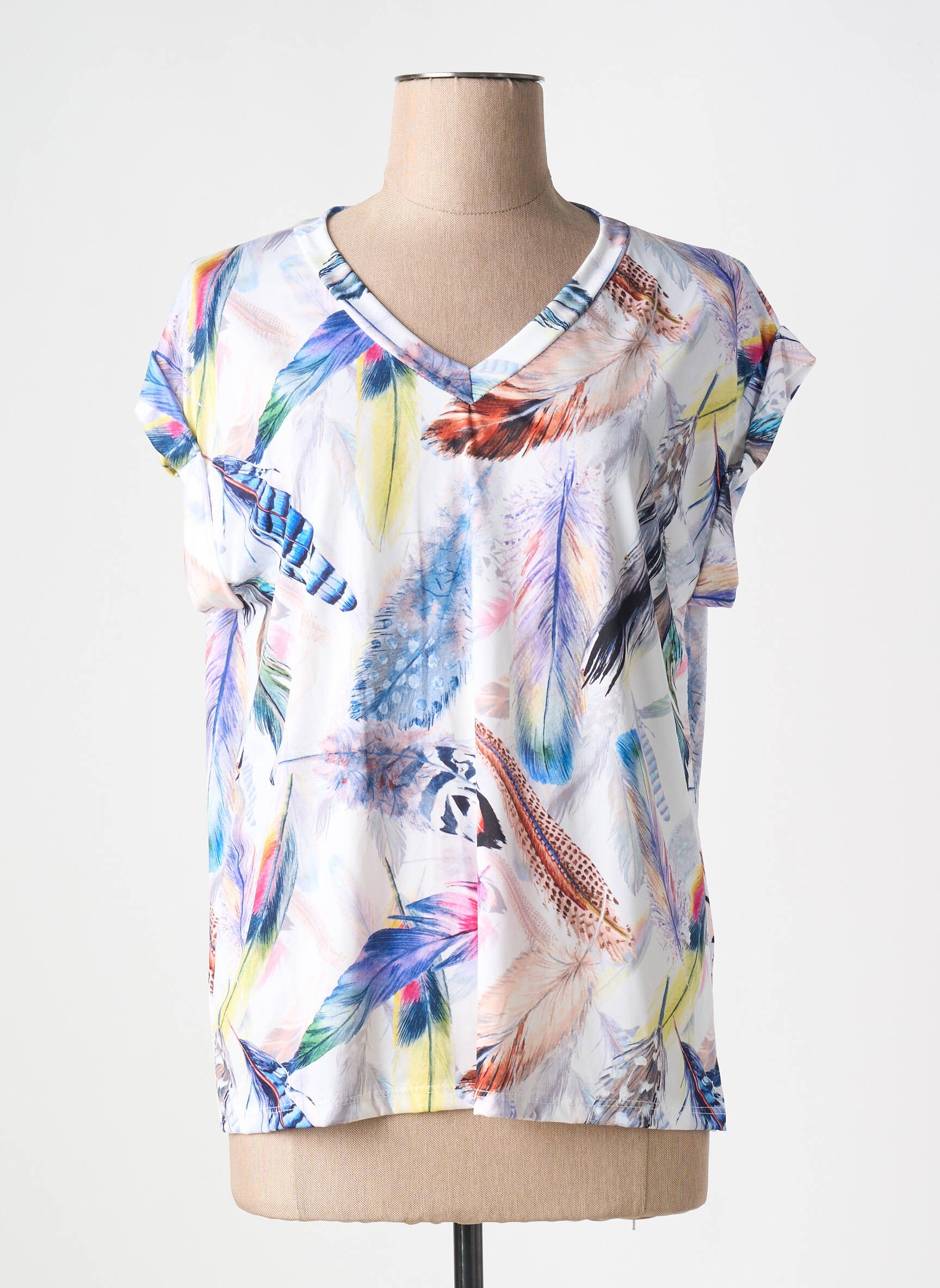 Saisissez l’opportunité de faire des économies avec ce top PALA D'ORO, une pièce colorée et tendance qui apporte une vraie touche de fraîcheur à votre garde-robe grâce à ses motifs plume multicolores et sa coupe fluide très agréable à porter au quotidien. Profitez d’un bon plan incontournable pour un look stylé sans vous ruiner.