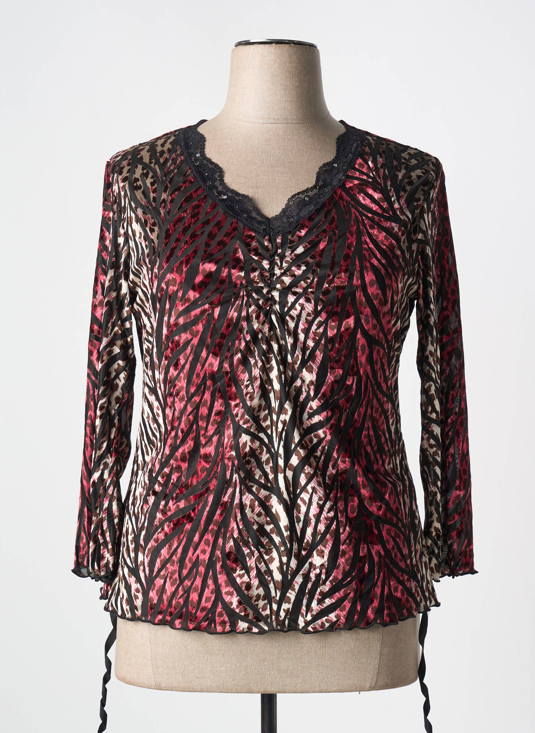 Profitez d’un bon plan mode avec ce top femme de la marque PARISIENNES, une pièce unique à petit prix qui associe élégance et originalité. Sa matière fluide et légère met en valeur un motif graphique dans les tons rouges, noirs et beiges, tandis que l’encolure en V soulignée de délicates finitions festonnées apporte une touche féminine et raffinée. Ce top à manches longues séduit par son allure sophistiquée, idéale pour dynamiser vos tenues du quotidien sans vous ruiner.