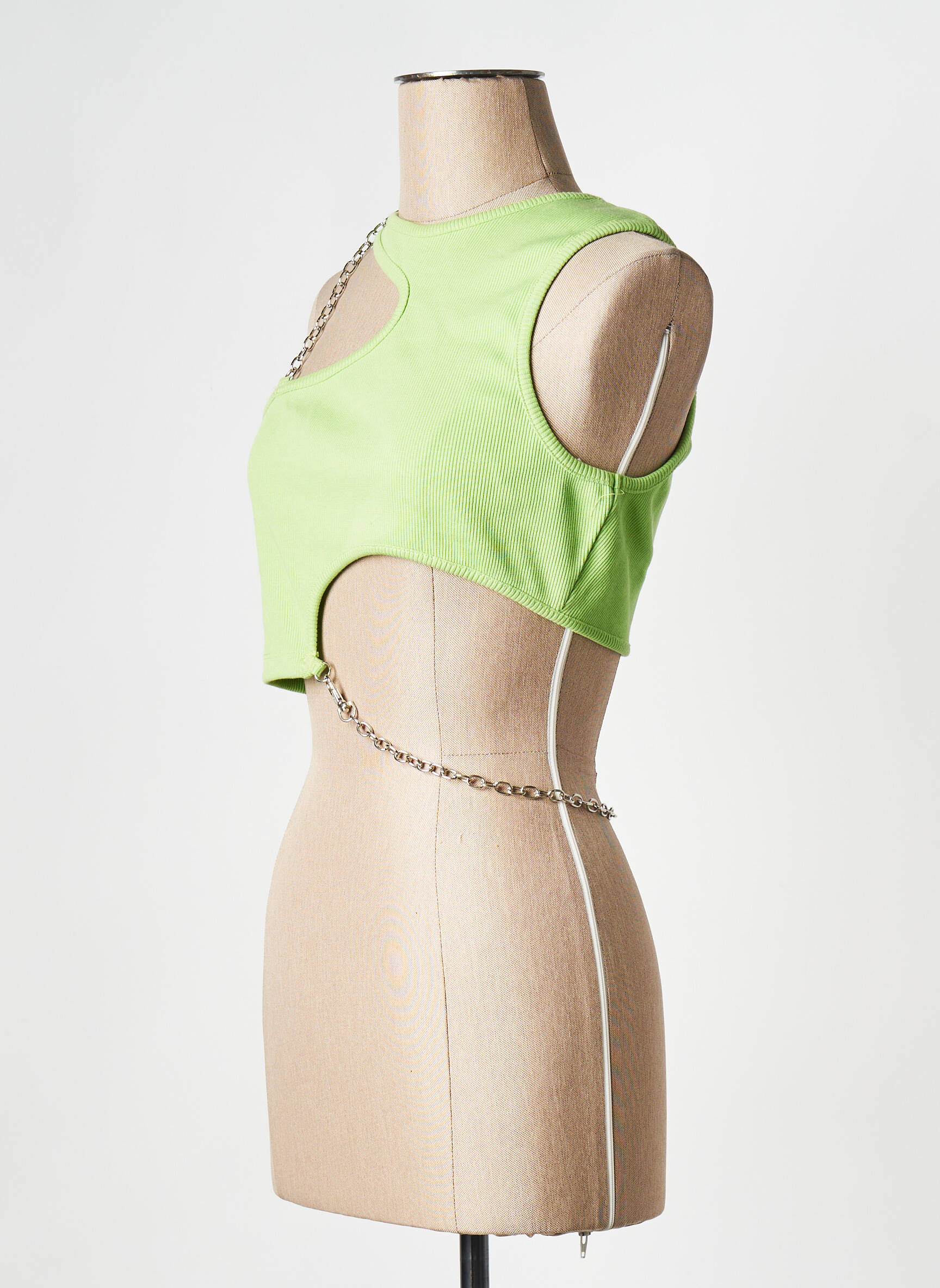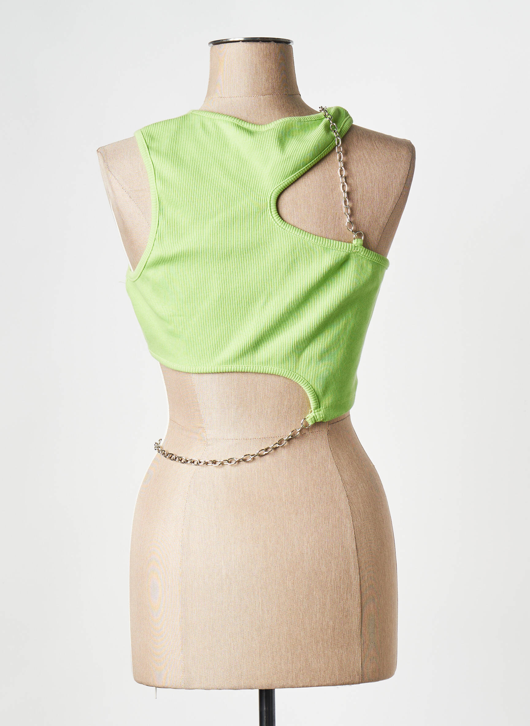 Craquez pour ce top Ragged Priest à prix mini, idéal pour rehausser votre look sans vous ruiner. Avec sa coupe asymétrique ultra tendance, ses découpes originales et ses chaînes métalliques qui apportent une touche audacieuse, ce top vert anis vous démarquera à coup sûr tout en profitant d’une super affaire fashion.