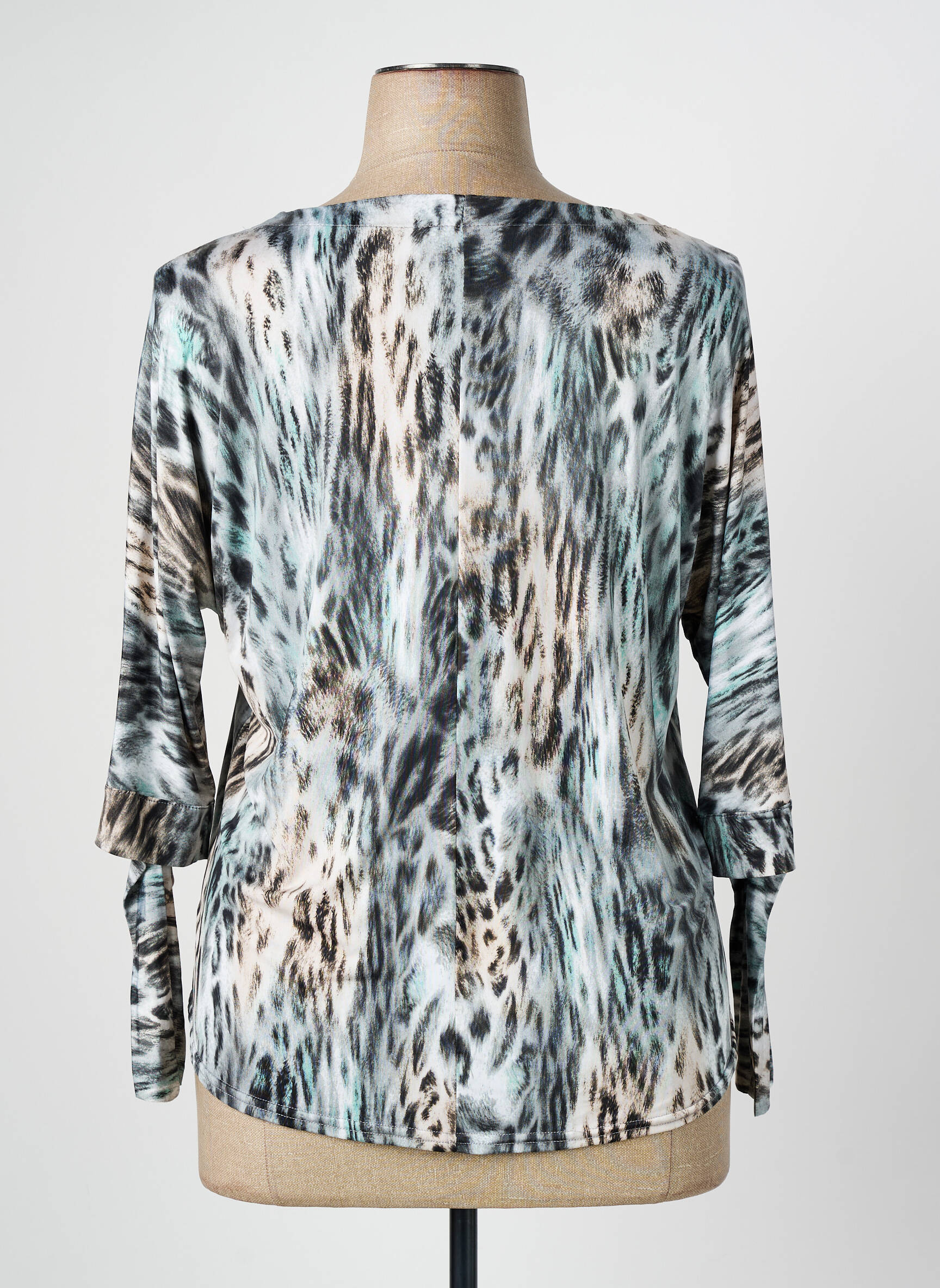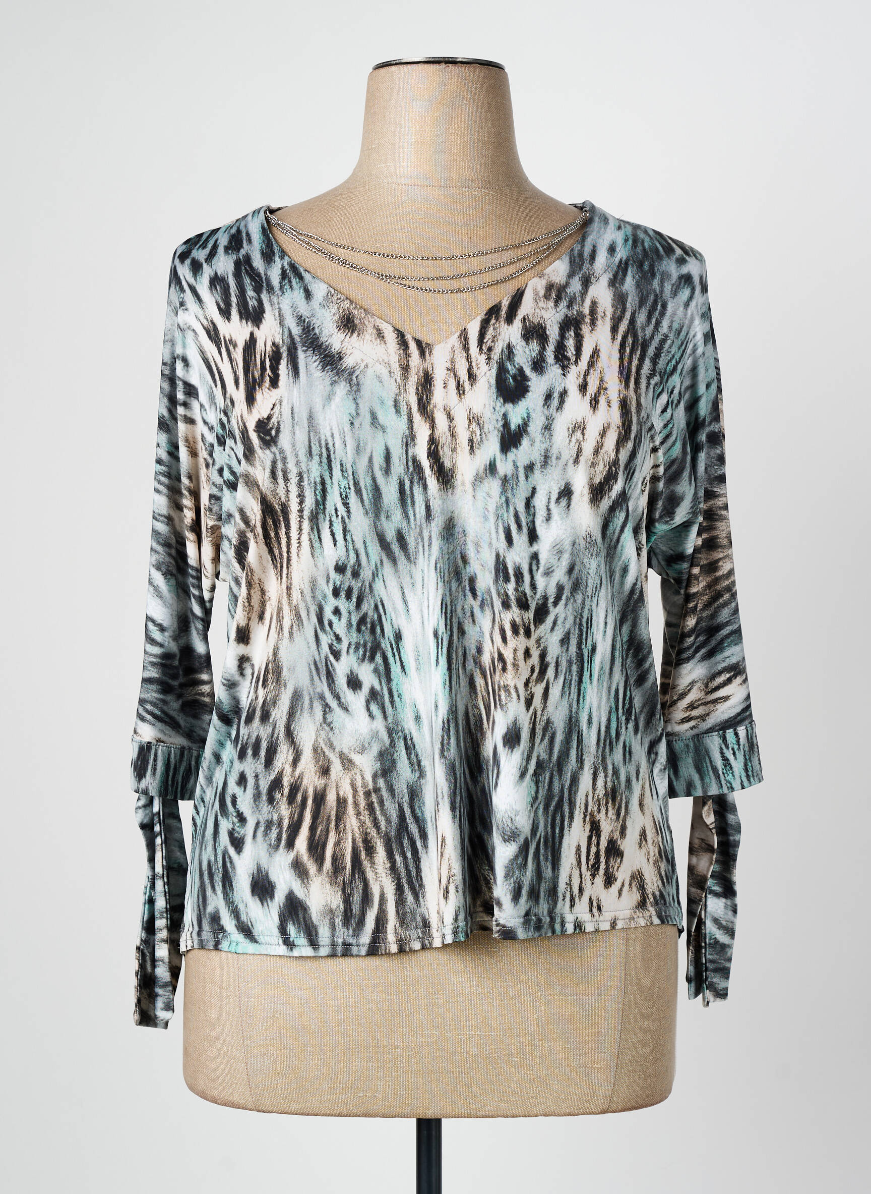 Profitez d’une offre exceptionnelle avec ce top ROMEO POUR JULIETTE pour femme, parfait pour donner du style à petit prix. Son imprimé animalier mêlant nuances de beige, noir et touches de bleu apporte une belle touche d’originalité tout en restant facile à associer, tandis que la coupe fluide et le col en V mettent en valeur la silhouette sans effort. Les manches longues légèrement fendues ajoutent une note sophistiquée à ce modèle idéal pour vos looks casual-chic, sans vous ruiner.