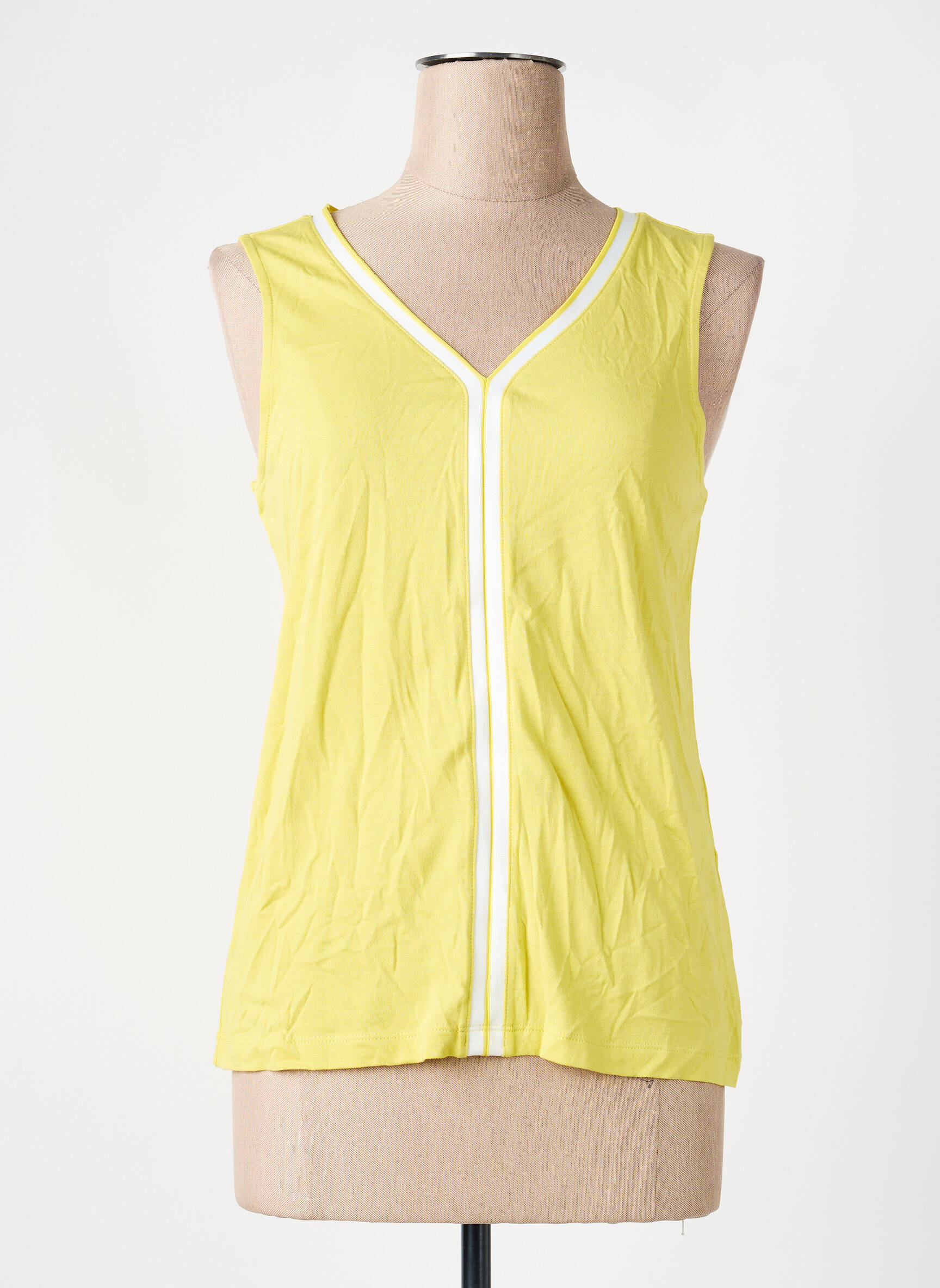 Profitez d’un bon plan avec ce top féminin S.OLIVER qui allie style et petit prix. Sa coupe sans manches met en valeur la silhouette tout en offrant un confort optimal, tandis que sa teinte jaune lumineuse apporte une touche de fraîcheur à toutes vos tenues estivales. Le détail du col en V et la bande blanche contrastante sur le devant ajoutent une note de modernité, parfait pour sublimer votre look sans vous ruiner.