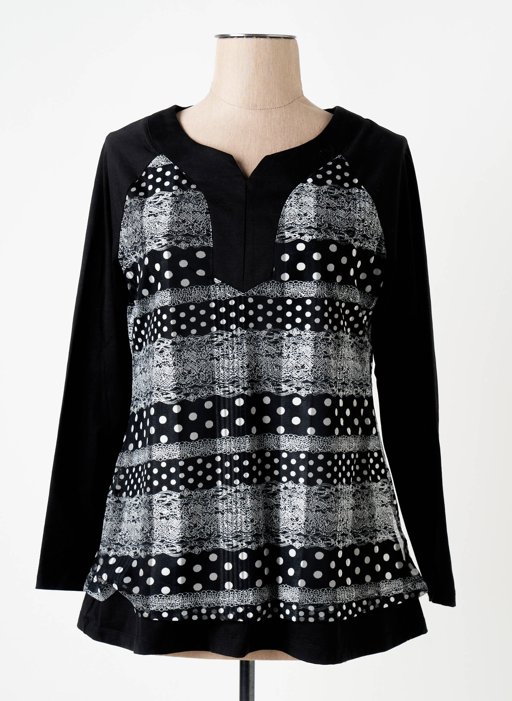 Profitez d’une véritable affaire avec cette tunique manches longues S.QUISE pour femme, idéale pour un style tendance à petit prix. Son design mêle délicatement des motifs graphiques et des pois sur fond noir, pour une allure moderne et originale tout en restant facile à porter au quotidien. Ce modèle vous assure confort et élégance sans vous ruiner, parfait pour renouveler votre garde-robe avec goût et sans compromis sur votre budget.