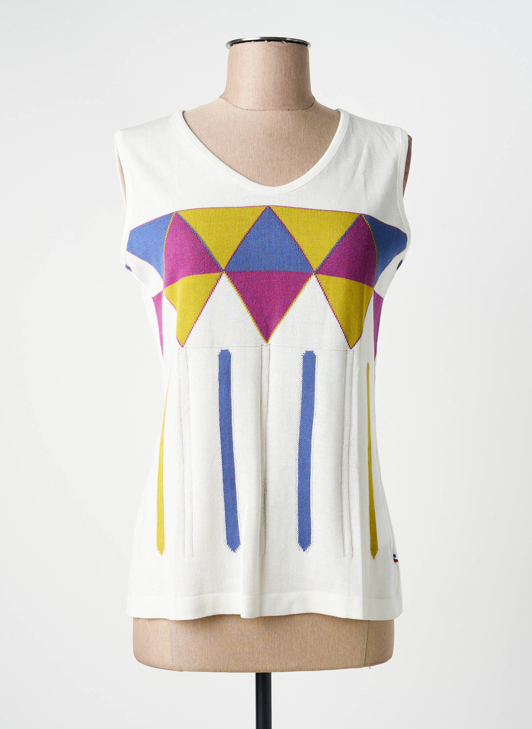 Craquez pour ce top sans manches SAINT CHARLES pour femme, une pièce unique à prix mini qui allie originalité et petit budget. Son motif géométrique coloré, mêlant bleu, jaune et rose sur fond crème, apporte une touche graphique ultra moderne idéale pour dynamiser vos tenues du quotidien sans vous ruiner. Profitez de cette belle opportunité pour ajouter un haut tendance et plein de peps à votre dressing sans compromettre votre porte-monnaie.