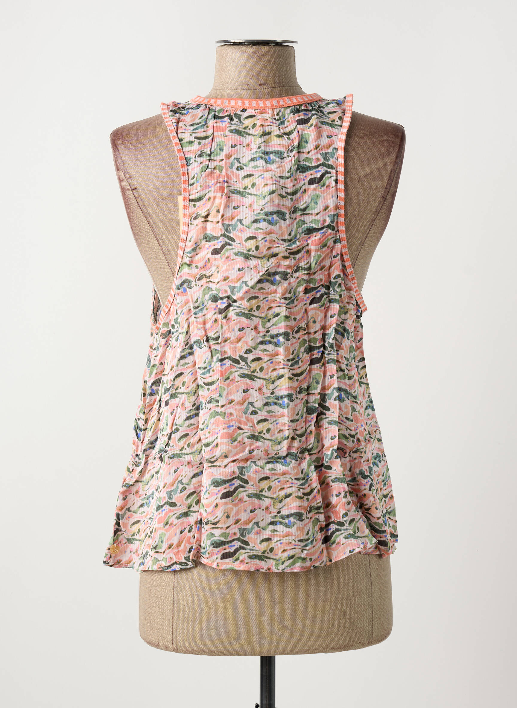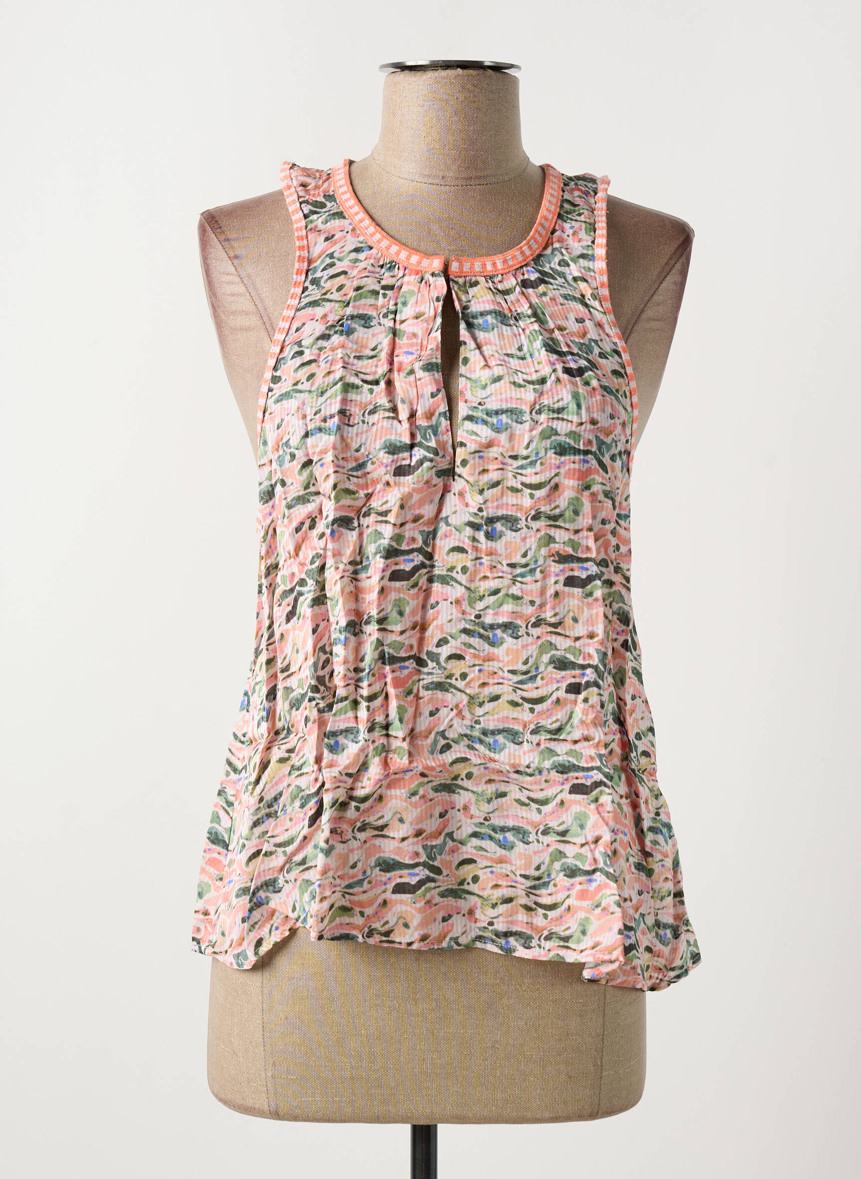 Craquez pour ce top femme de la marque Scotch & Soda, une véritable occasion à saisir pour ajouter une touche tendance à petit prix à votre dressing. Sa coupe fluide et légère s’associe à un imprimé graphique multicolore original, tandis que le décolleté rond orné de détails délicats et la petite fente à l’avant apportent une note féminine et estivale. Ce haut est l’allié parfait pour composer une tenue stylée sans se ruiner, tout en profitant de la qualité d’une grande marque à prix mini.