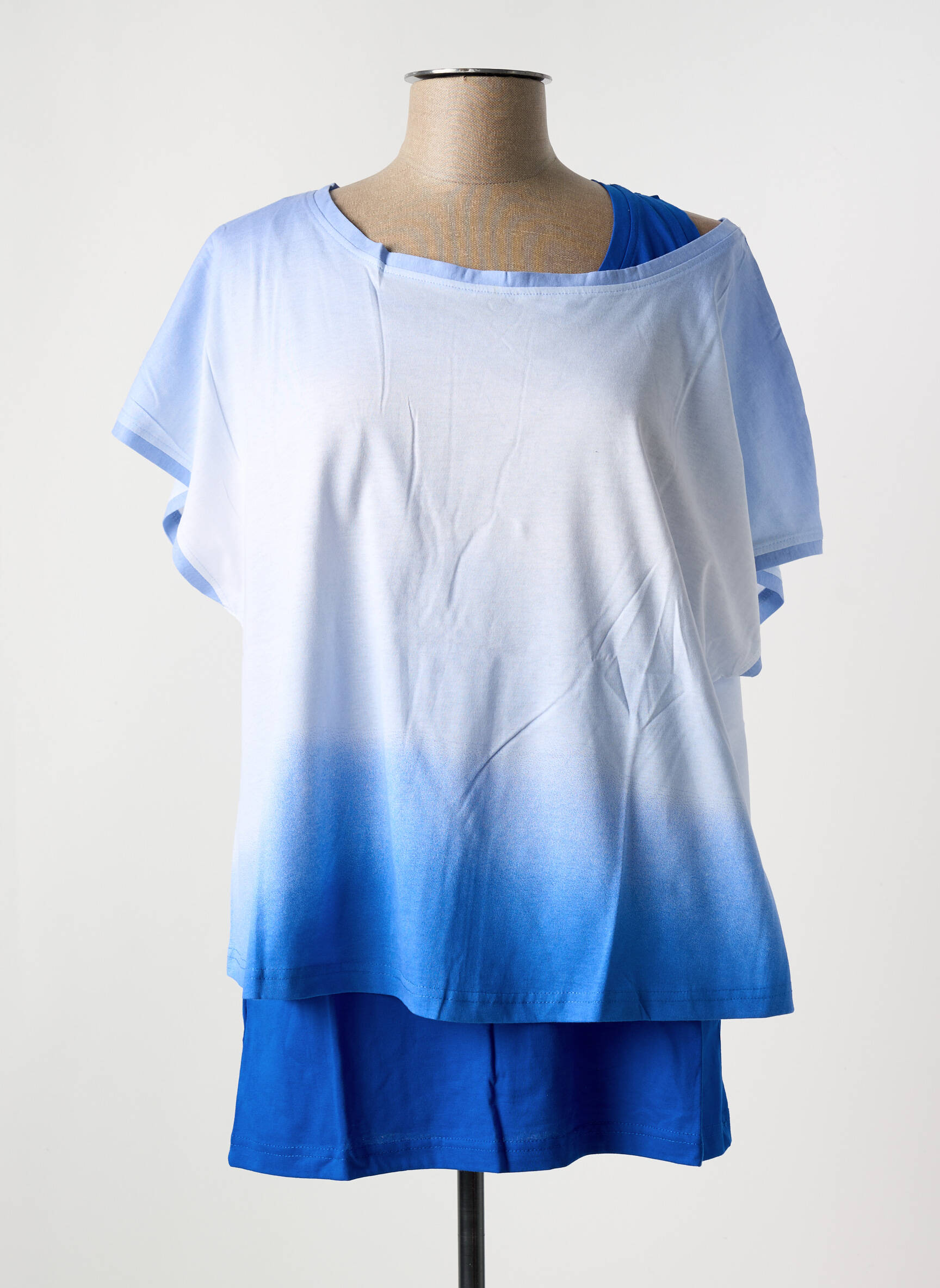 Succombez à ce top SHEEGO pour femme, un vrai bon plan mode à prix mini grâce à son effet dégradé bleu et blanc ultra tendance et sa coupe fluide qui promet confort et allure décontractée, une pièce idéale pour apporter une touche de fraîcheur à votre garde-robe sans vous ruiner.